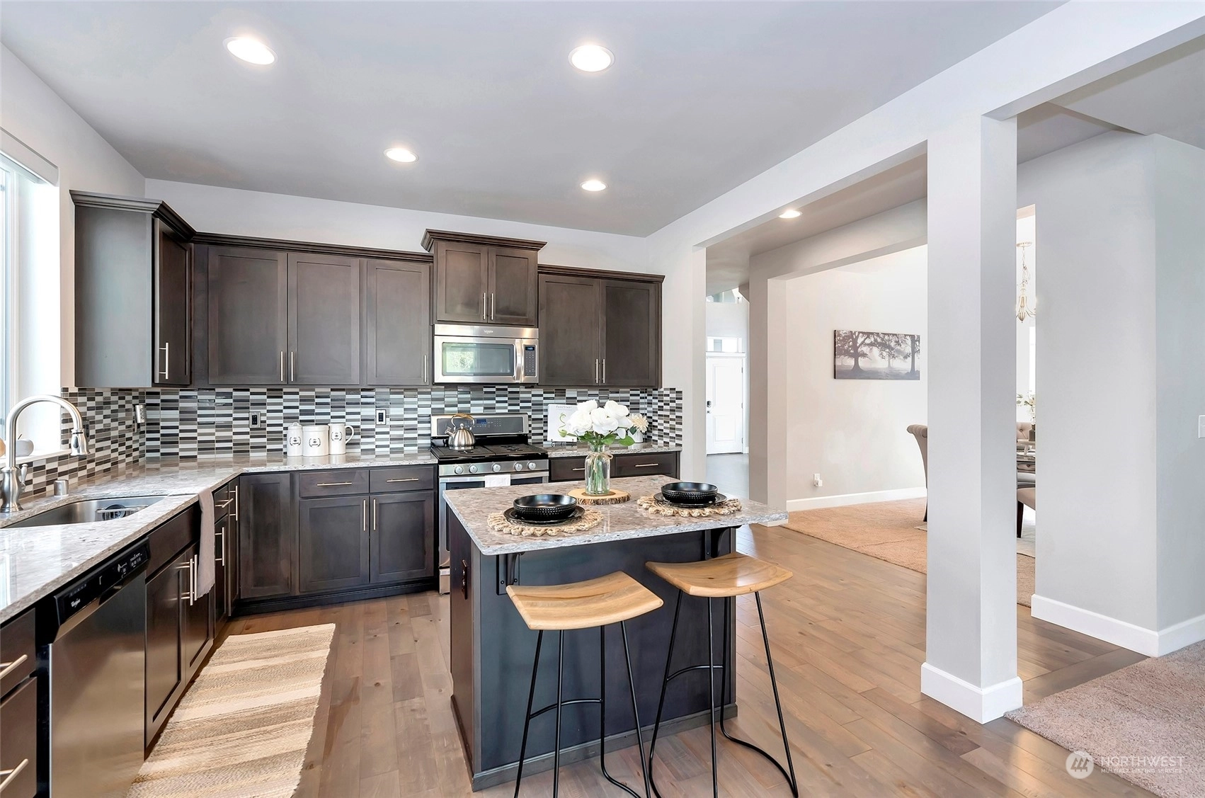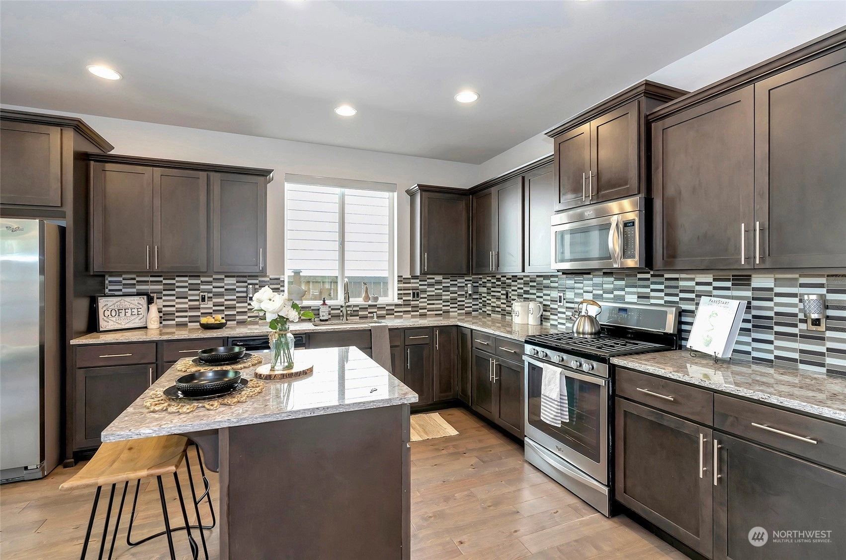 Exceptional quality in this dream home! Beautiful neighborhood with style. Main floor invites you to the private office/den w/French doors - kitchen w/slab granite counters, shaker style cabinets & top of the line SS appliances – living space w/beautiful gas fireplace is open to the kitchen. Plenty of room in the dining space for that special dinner. Upper floor graces the master bedroom w/vaulted ceilings & master ensuite featuring tiled counters & floors. 3 more guest bedrooms, full guest bath & loft to make your special place. Tankless water heater, painted millwork, AC for summer nights. Fully fenced backyard for relaxing time. Can’t beat this location with all the amenities close and easy access to Hwys & SeaTac International Airport.