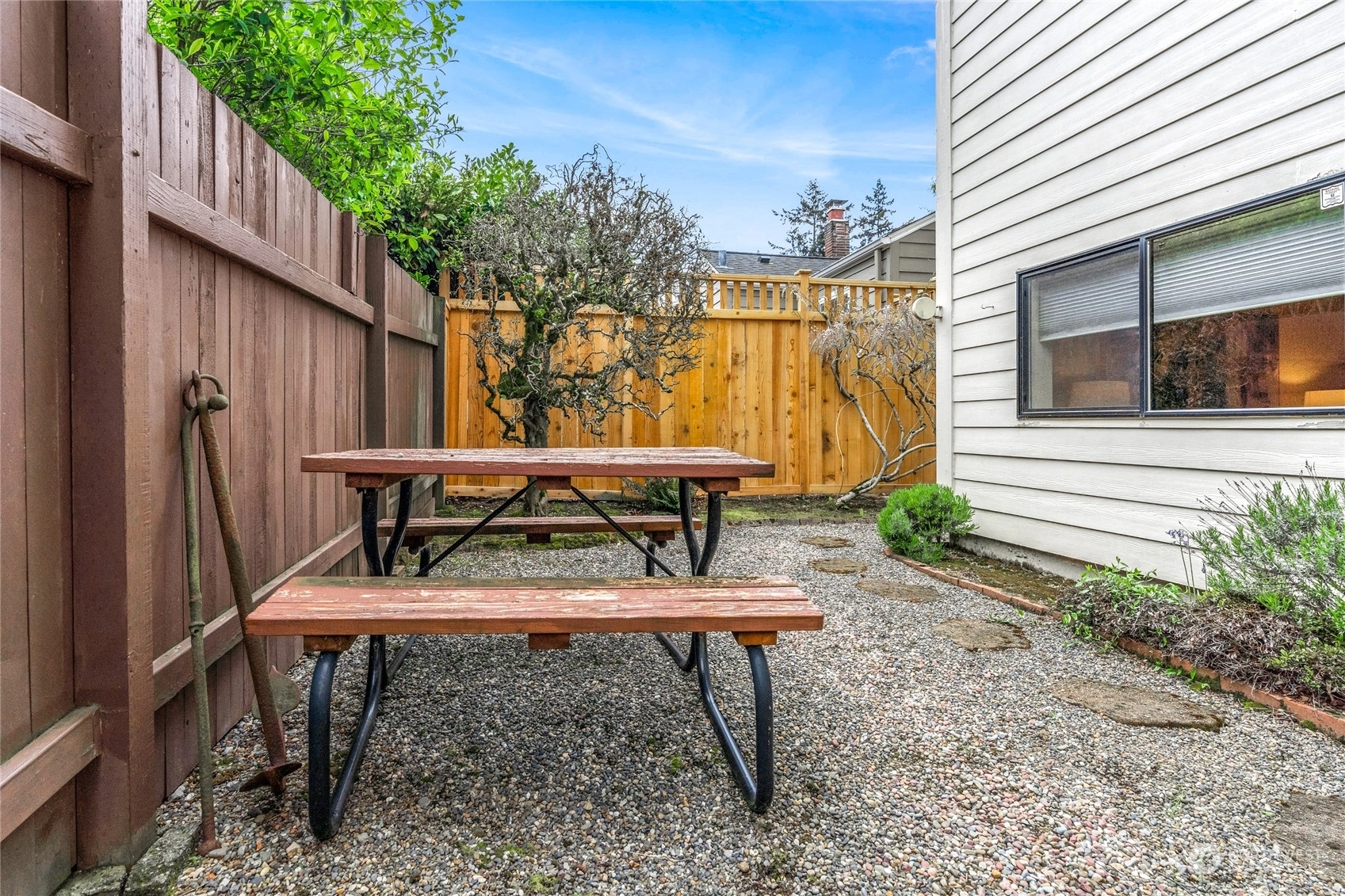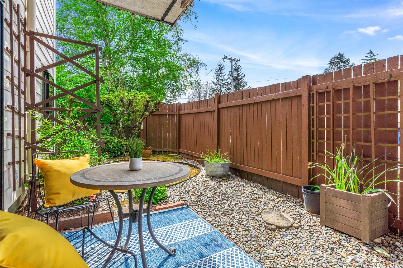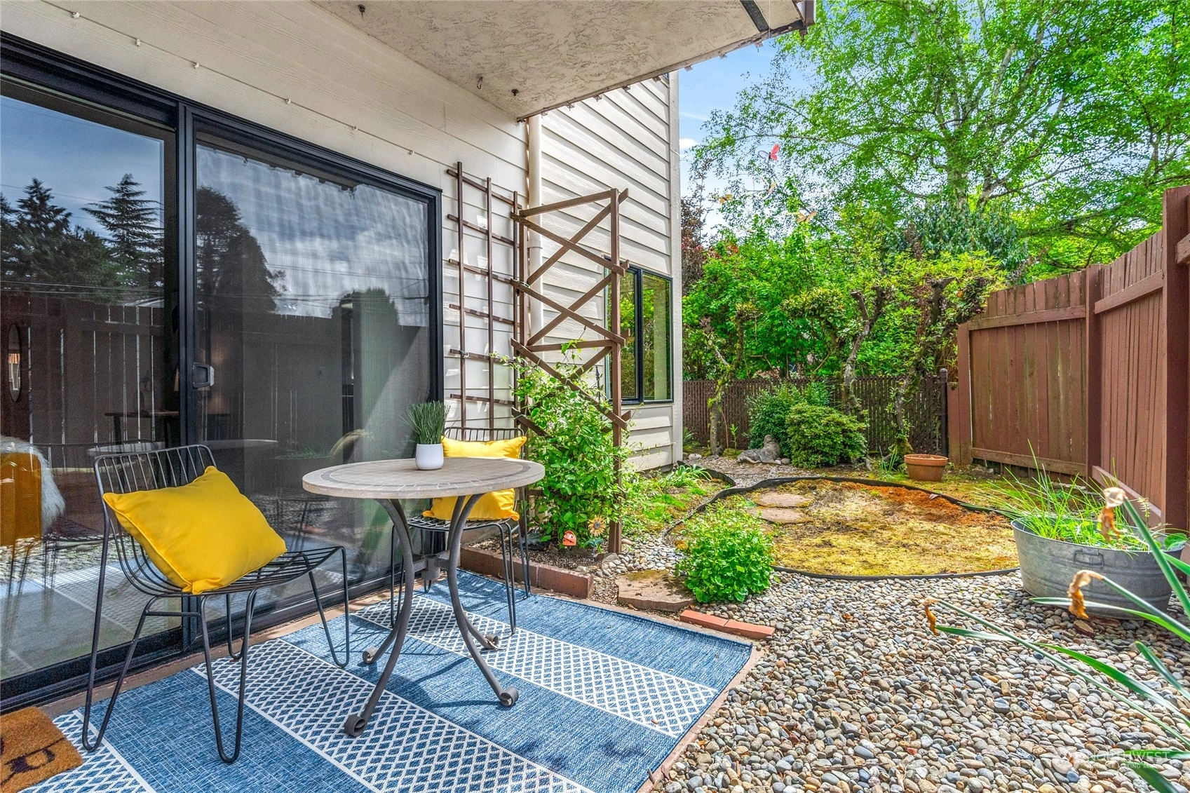 Noteworthy 2 bedroom condo WITH PRIVATE YARD! Primo, quiet location in the heart of the Seahurst neighborhood. Blocks to St Francis school & Seahurst Park and walking distance to all the restaurants, bakeries, coffee & shops in charming Olde Burien--and easy commute to Seattle or Boeing! Spacious living room, wood-burning fireplace, lots of closet space + large storage space, newer water heater & W/D. Rare, fully-fenced yard w/ patio, garden space, raised beds & alfresco dining area. Convenient to beaches, trails, freeways, transit, light rail & Sea-Tac airport (but West of airport, so no airplane noise). Well-managed, small 7-unit building w/ low HOA dues. Complex features covered parking, secure building entry & long-term residents.