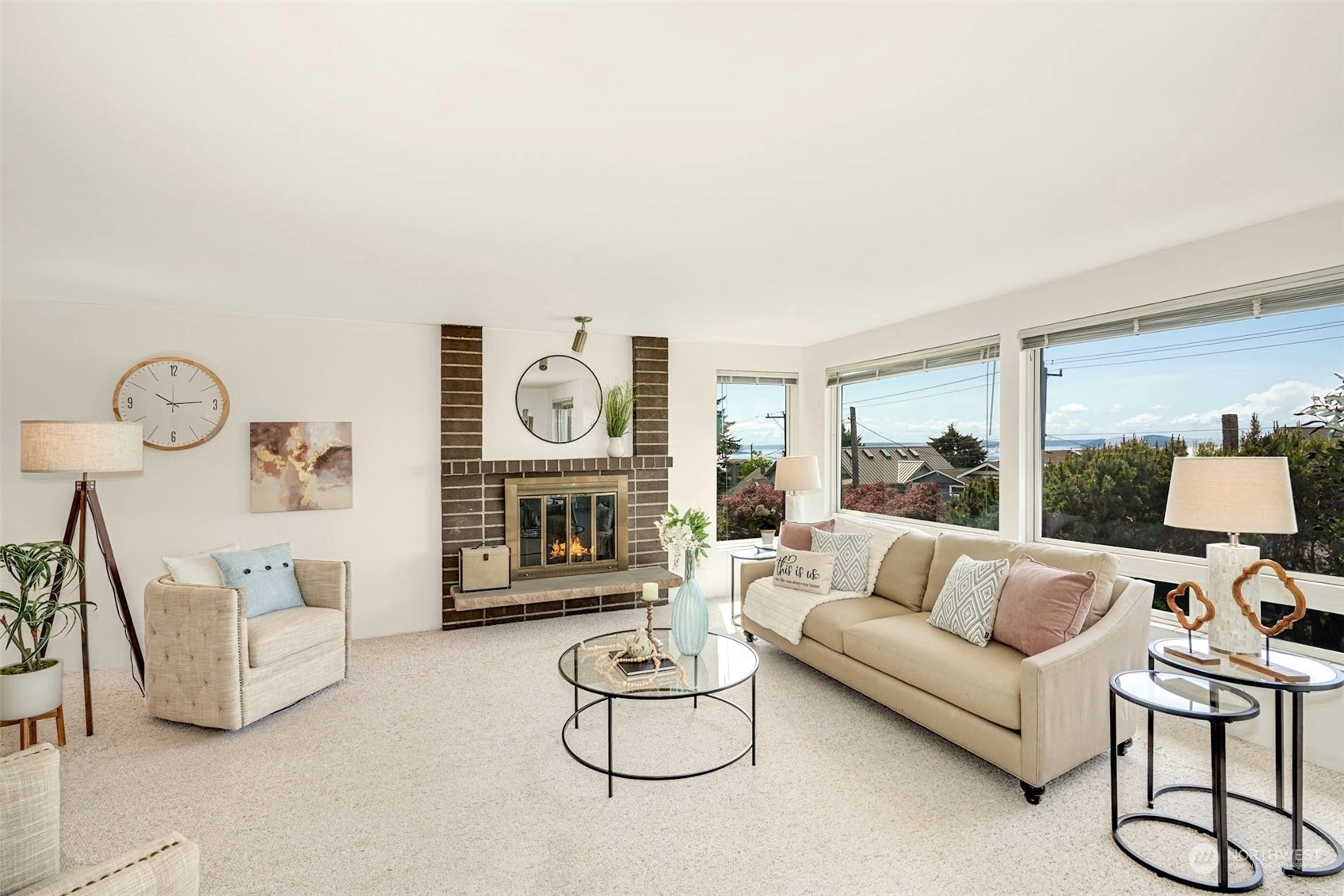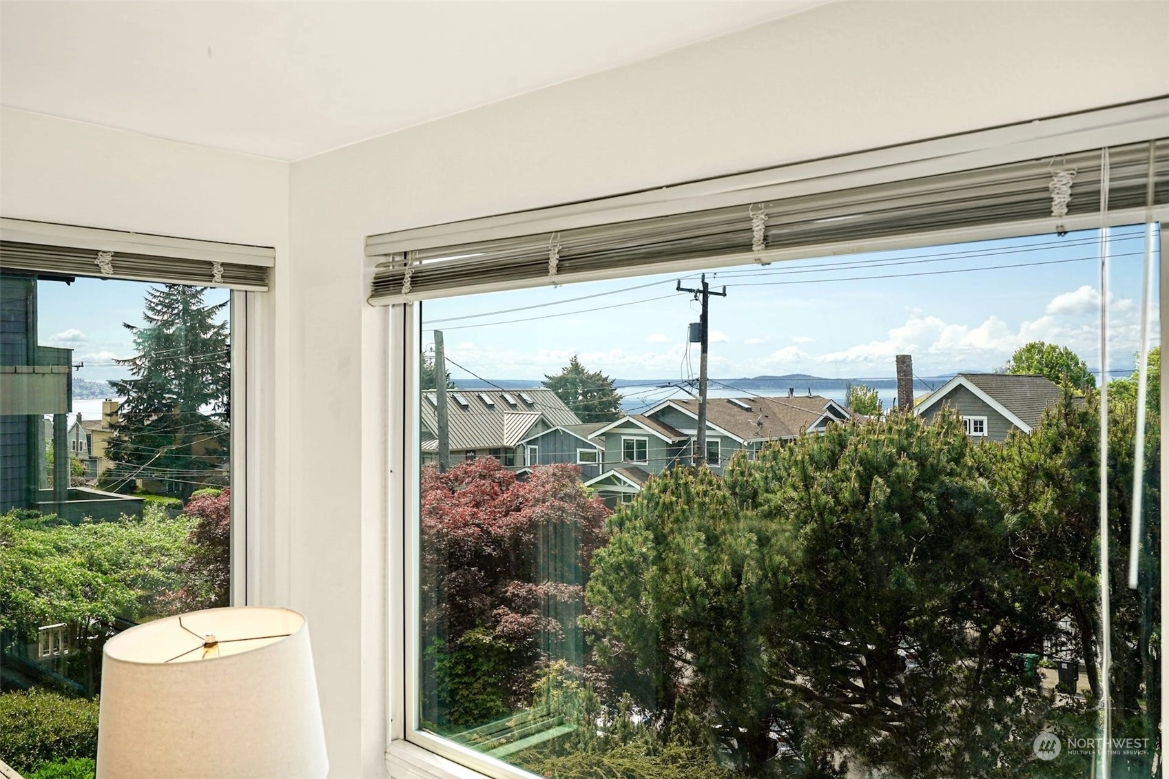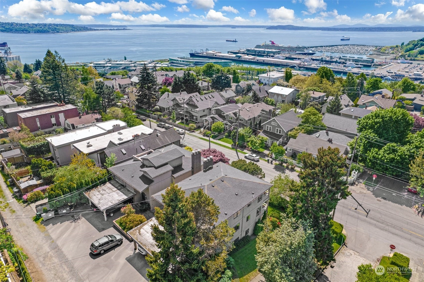 Welcome home to this upper Queen Anne home with amazing westerly views of Puget Sound and the Olympic Mtns. Enjoy the sweeping views from the oversized windows in the light filled Living Room, Dining Room and Kitchen Breakfast area. Relax on your private covered deck looking out onto Elliot Bay. Home features 1354 Sq Ft, 2 Bedroom, 2 Bath and updated kitchen. The Murphy Bed allows you that flex space for your home office. Your home features 2 spacious storage closets and ample cabinets throughout the home. Living Room features a fireplace and wet bar station for entertaining. Your covered tandem parking space is just steps from your private entrance. Lush landscaping, solid HOA with low HOA dues! *Be sure to click on the Virtual Tour link.