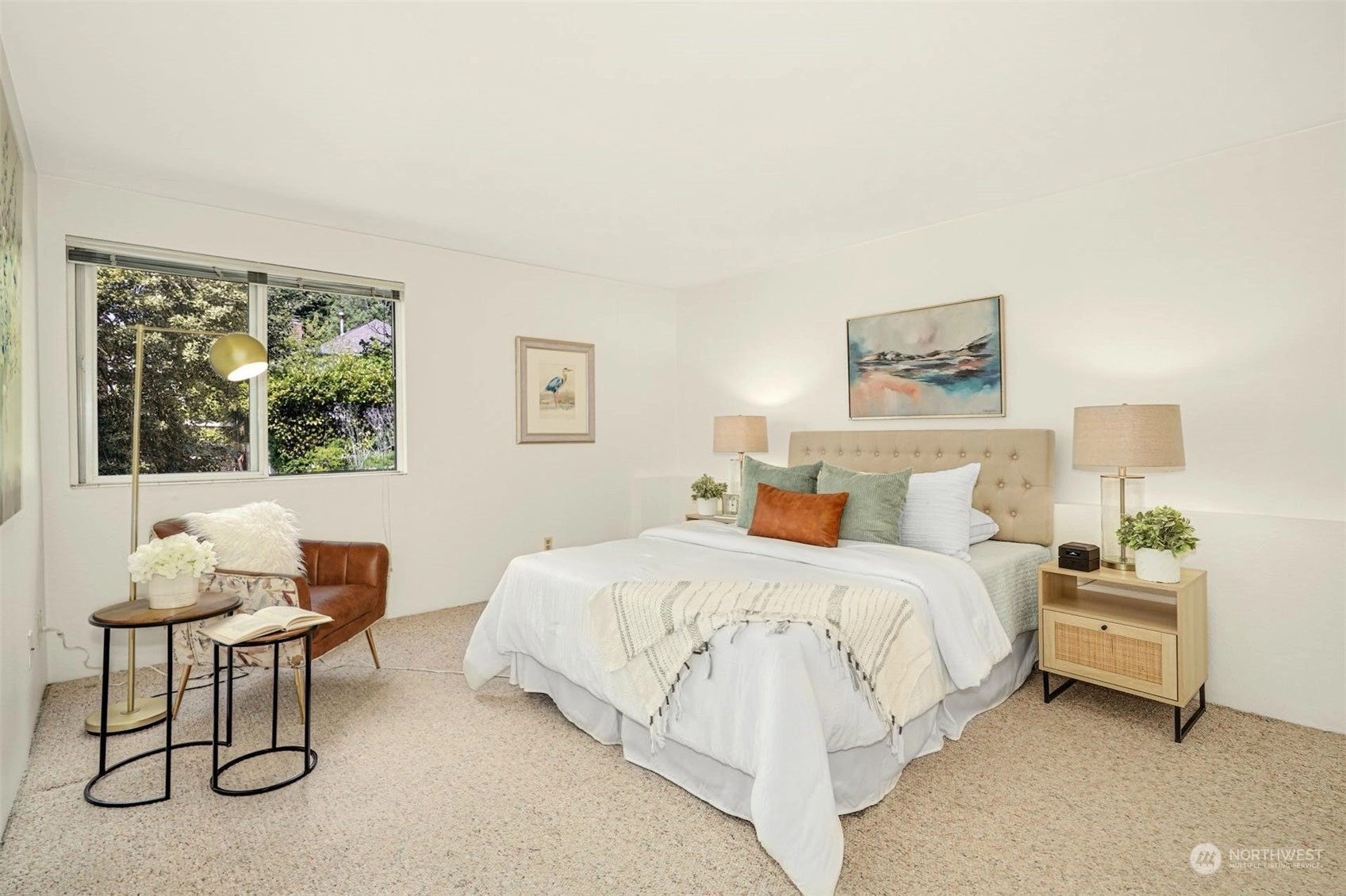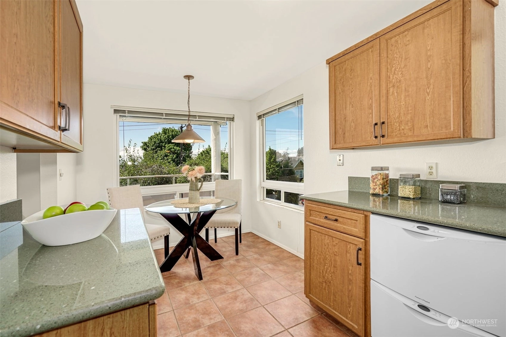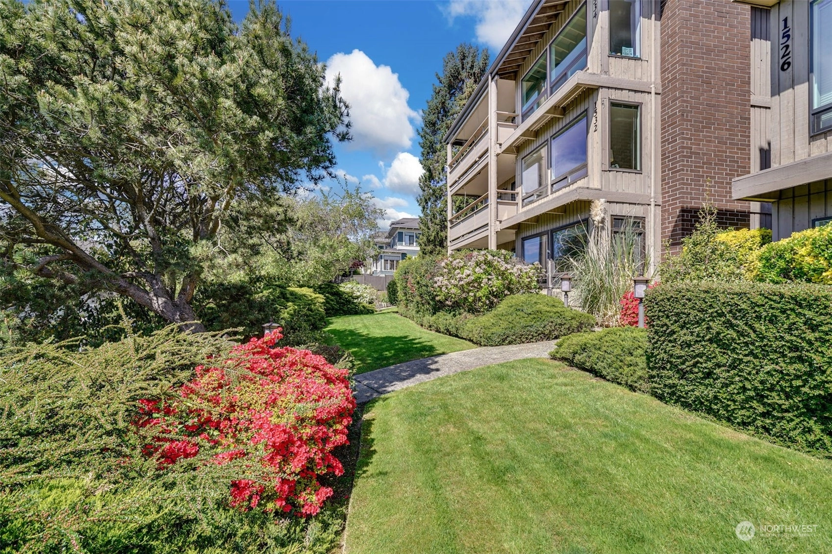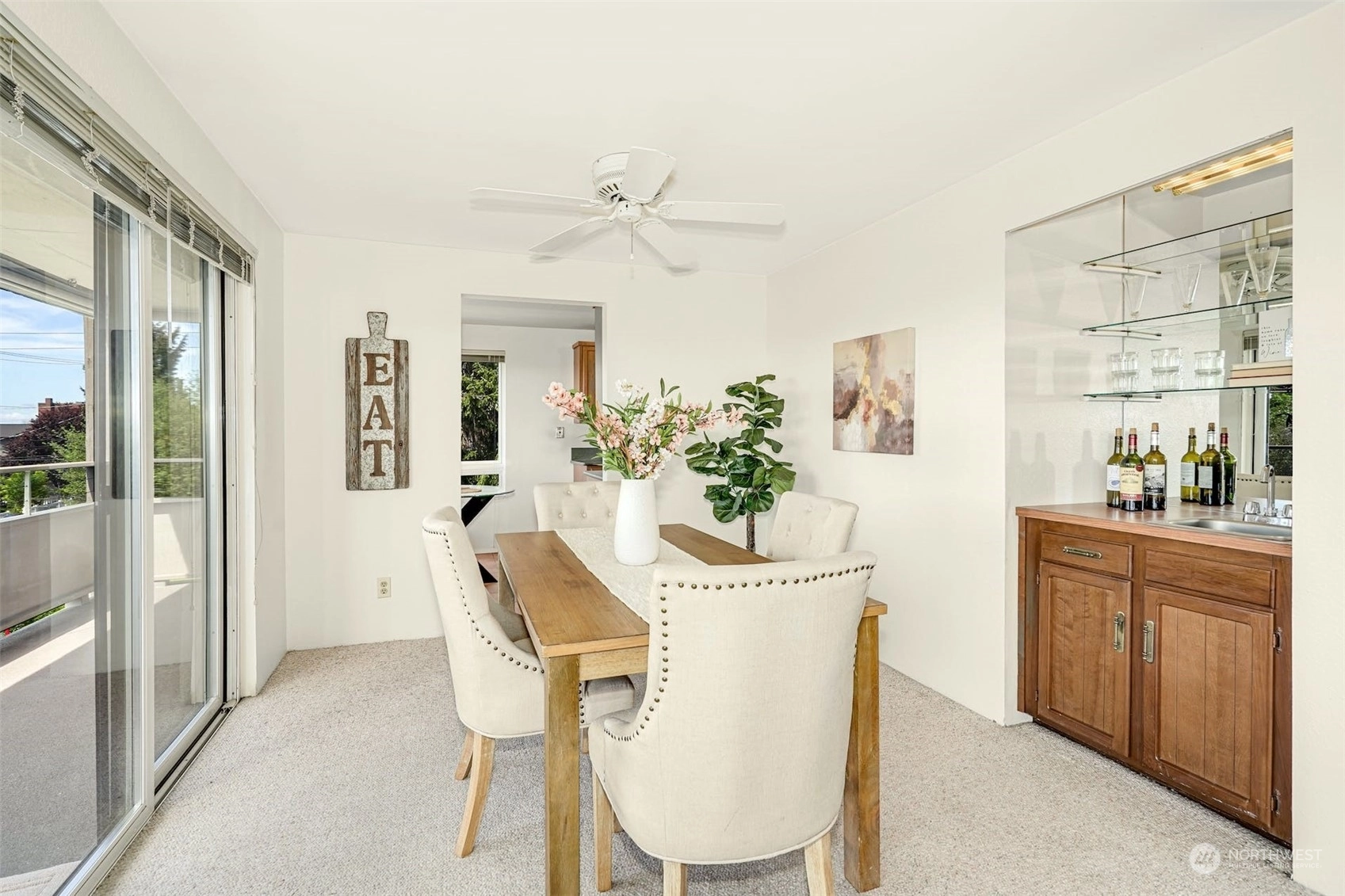 Welcome home to this upper Queen Anne home with amazing westerly views of Puget Sound and the Olympic Mtns. Enjoy the sweeping views from the oversized windows in the light filled Living Room, Dining Room and Kitchen Breakfast area. Relax on your private covered deck looking out onto Elliot Bay. Home features 1354 Sq Ft, 2 Bedroom, 2 Bath and updated kitchen. The Murphy Bed allows you that flex space for your home office. Your home features 2 spacious storage closets and ample cabinets throughout the home. Living Room features a fireplace and wet bar station for entertaining. Your covered tandem parking space is just steps from your private entrance. Lush landscaping, solid HOA with low HOA dues! *Be sure to click on the Virtual Tour link.