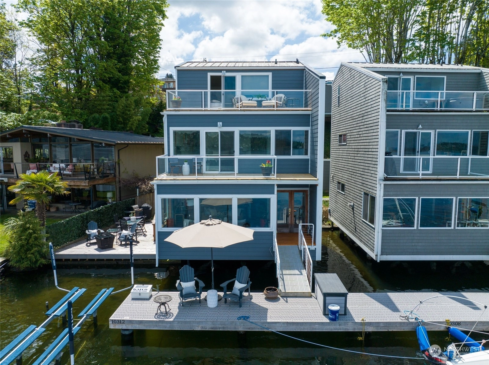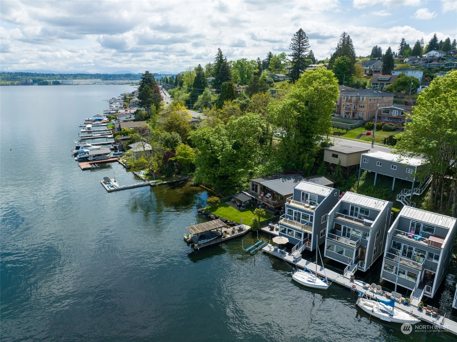 *PRICE IMPROVEMENT* Waterfront Townhouse on the shores of Lake Washington! This extraordinary three level home is perched over the lake in a peaceful & gated enclave. This is the only unit with a huge side deck! Unit has 2 bedrooms, 2.5 baths, walls of windows w/endless views of Lake Washington! Main level has kitchen w/pantry, dining, living and 1/2 bath. 2nd level includes primary bedroom, sitting area & full bath. 3rd level has bedroom with WIC and 3/4 bath & each bedroom has a private view deck. Secure garage space & Storage unit is included. Come see the dock & moorage outside your back door & your gateway to all that Lake WA has to offer! Major exterior remodel, ask your agent for detail sheet or email listing broker for details.