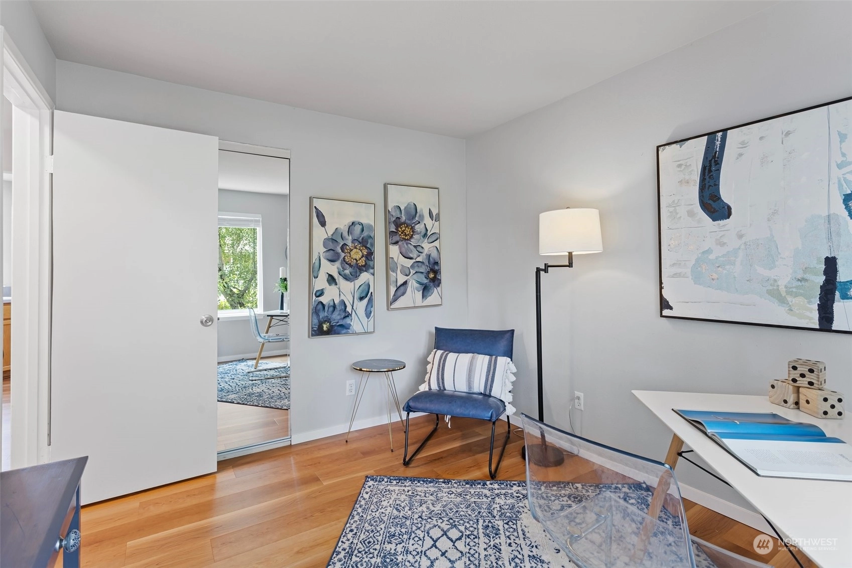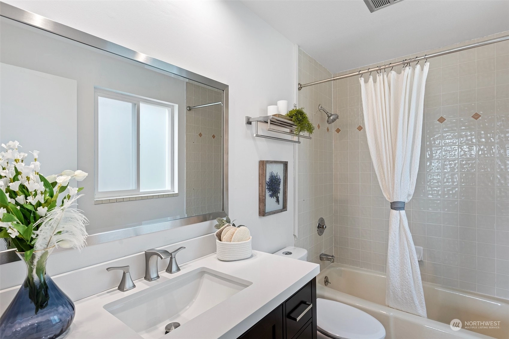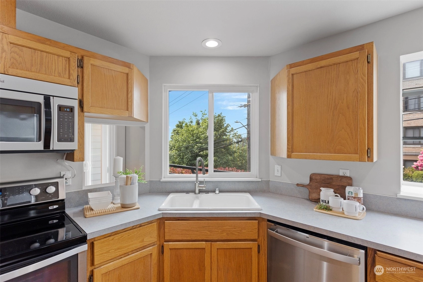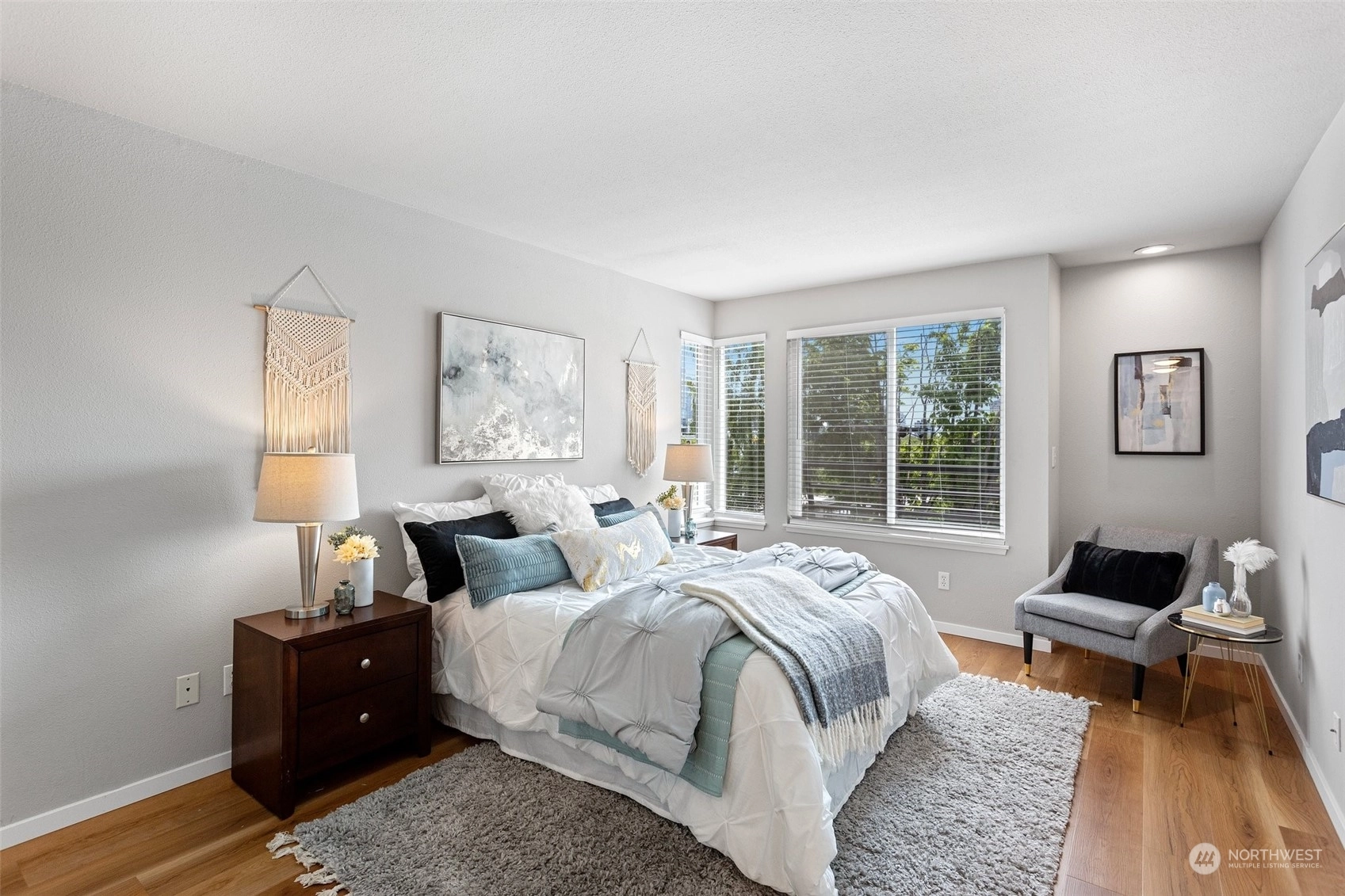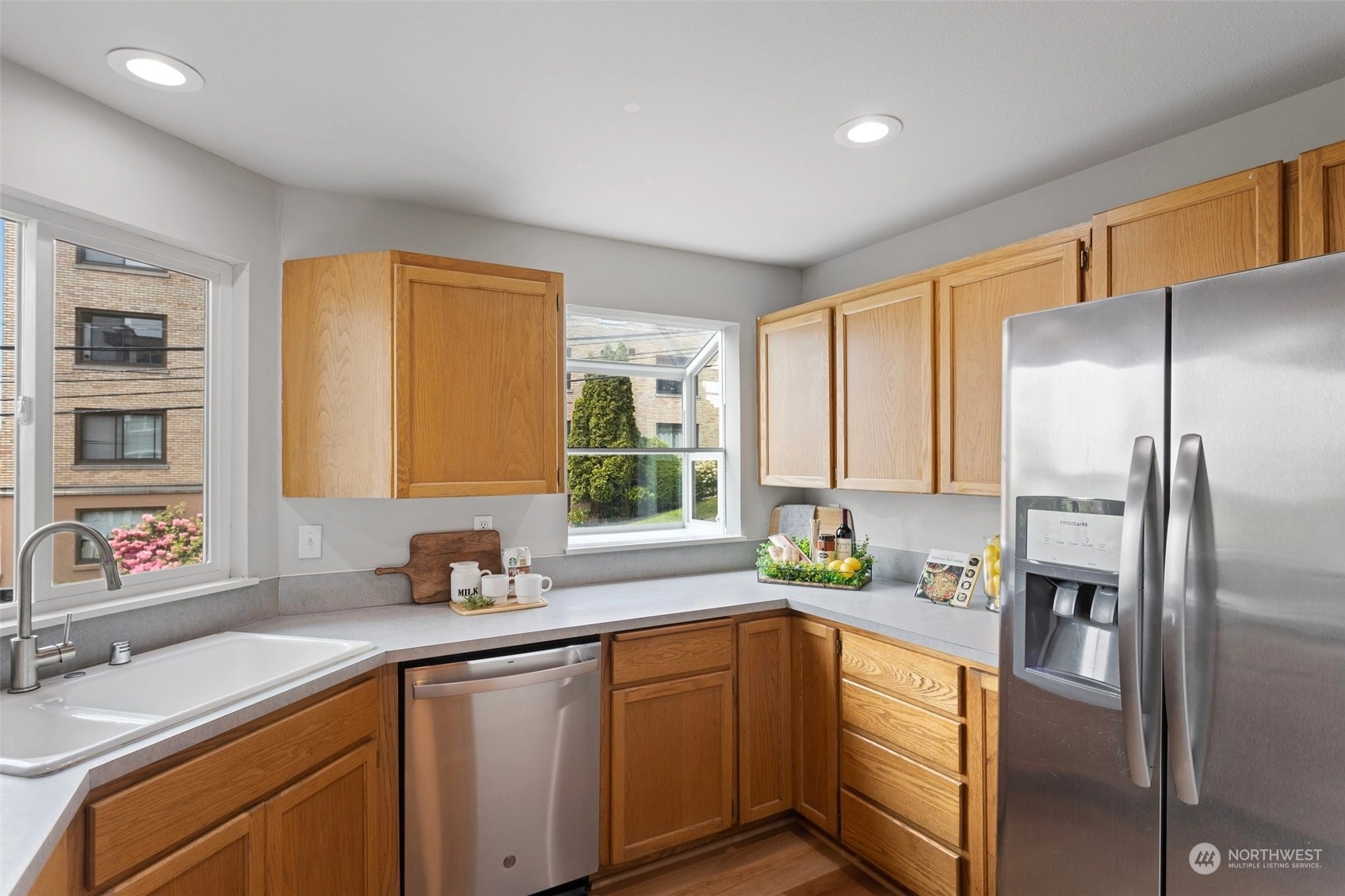 Morning coffee just tastes better with a sparkling view of the Sound from your balcony! Welcome home to this 2nd floor 2-bedroom/2-bath condo in a fantastic Queen Anne location with iconic Seattle views of the Space Needle, City Skyline, & Elliot Bay. Easy walk to Seattle Center & many close-by coffee bars, theaters, and restaurants plus errands are a breeze with many nearby amenities. Inviting primary bedroom features an en-suite bathroom and double closets. The unit boasts of updated floors, vanities, garbage disposal, fresh paint, water heater & appliances. Well-run HOA, dues cover W/S/G, and more! Pet friendly. 1-car assigned garage parking and a storage space. In unit washer and dryer completes the package! No Rental cap. Welcome Home!