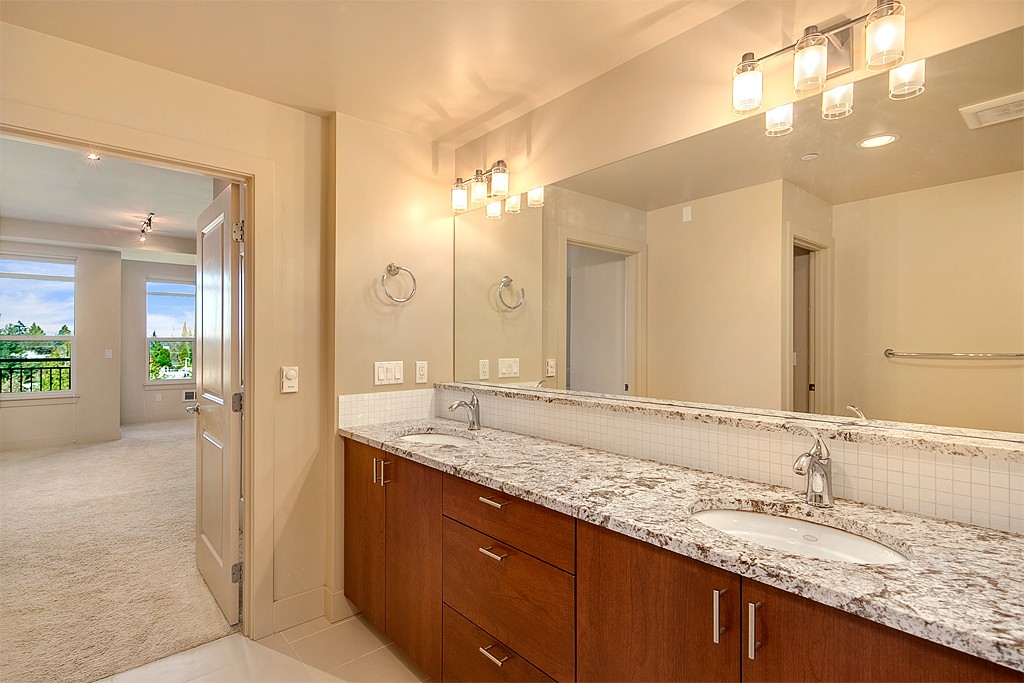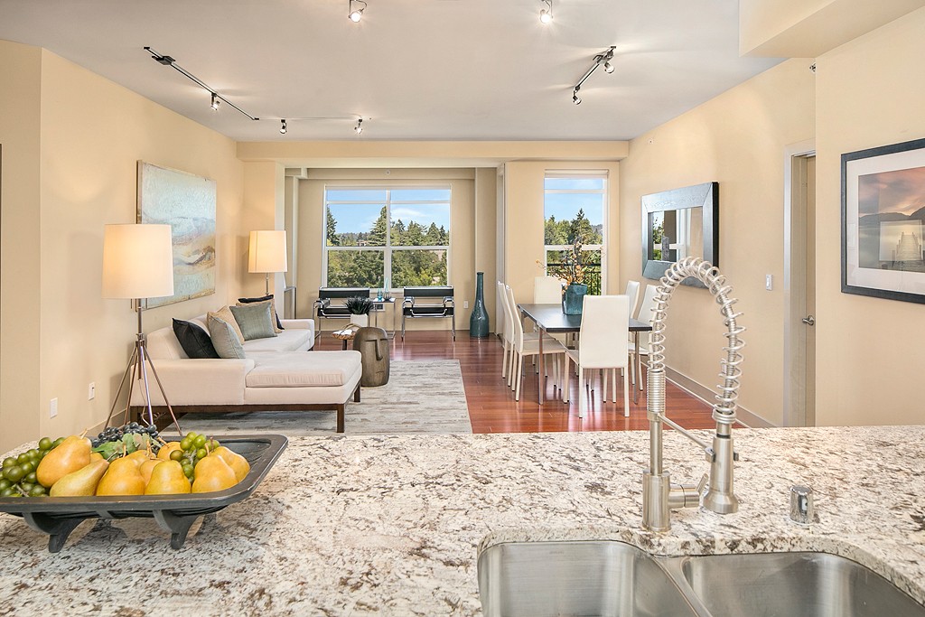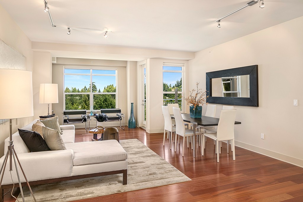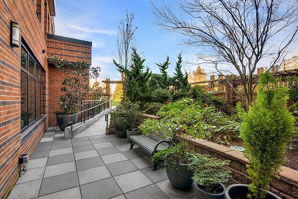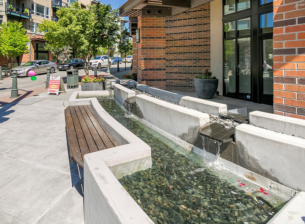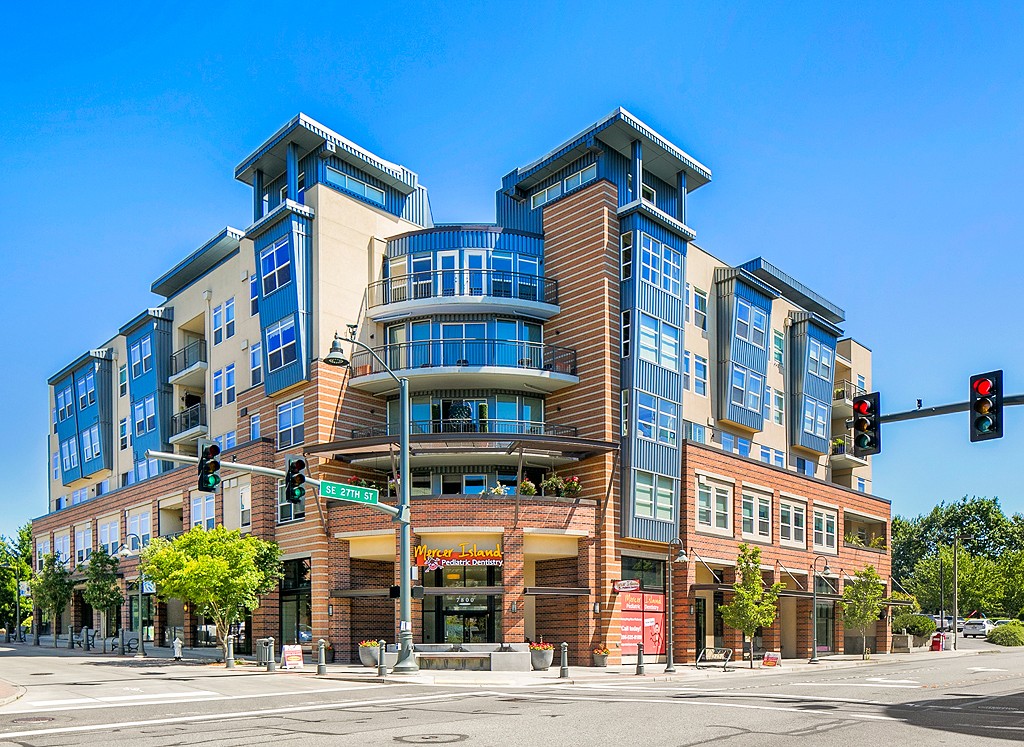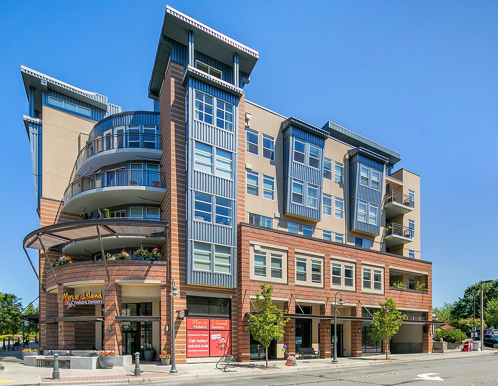 Priced below 2015 assessed value of $704,000. Art lovers will love overlooking the Island's sculpture park, views to the North from your private terrace. Spacious center great room separates two bedroom suites in this extremely livable floor plan. Generous open kitchen has slab granite counter tops, full height cabinets, pantry and stainless appliances. Boutique concrete and steel building in downtown Mercer Island. Walk everywhere! Two side by side parking spaces and storage.