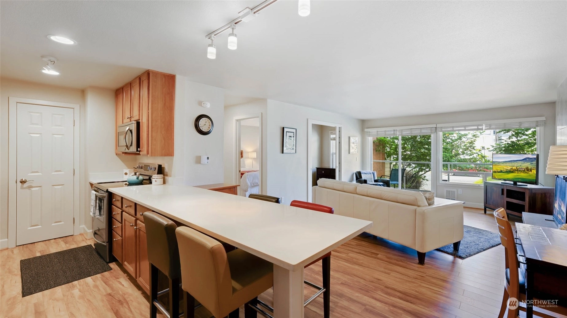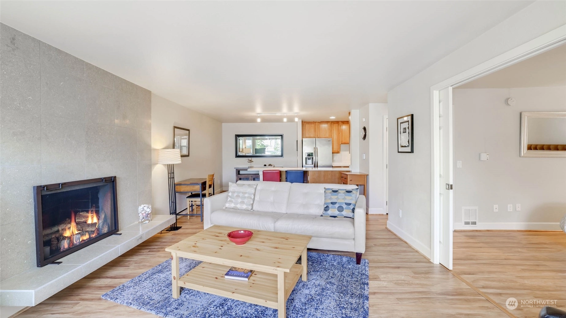 Beach enthusiasts rejoice! This updated 1-bedroom condo near Alki Beach is the perfect staycation. Pocket doors in the primary give great open space. Features include private balcony, pantry, beautiful fireplace, in-unit washer & dryer, extra storage, assigned parking, and walking distance to beach. Experience the wonders of one of Seattle's greatest gems!