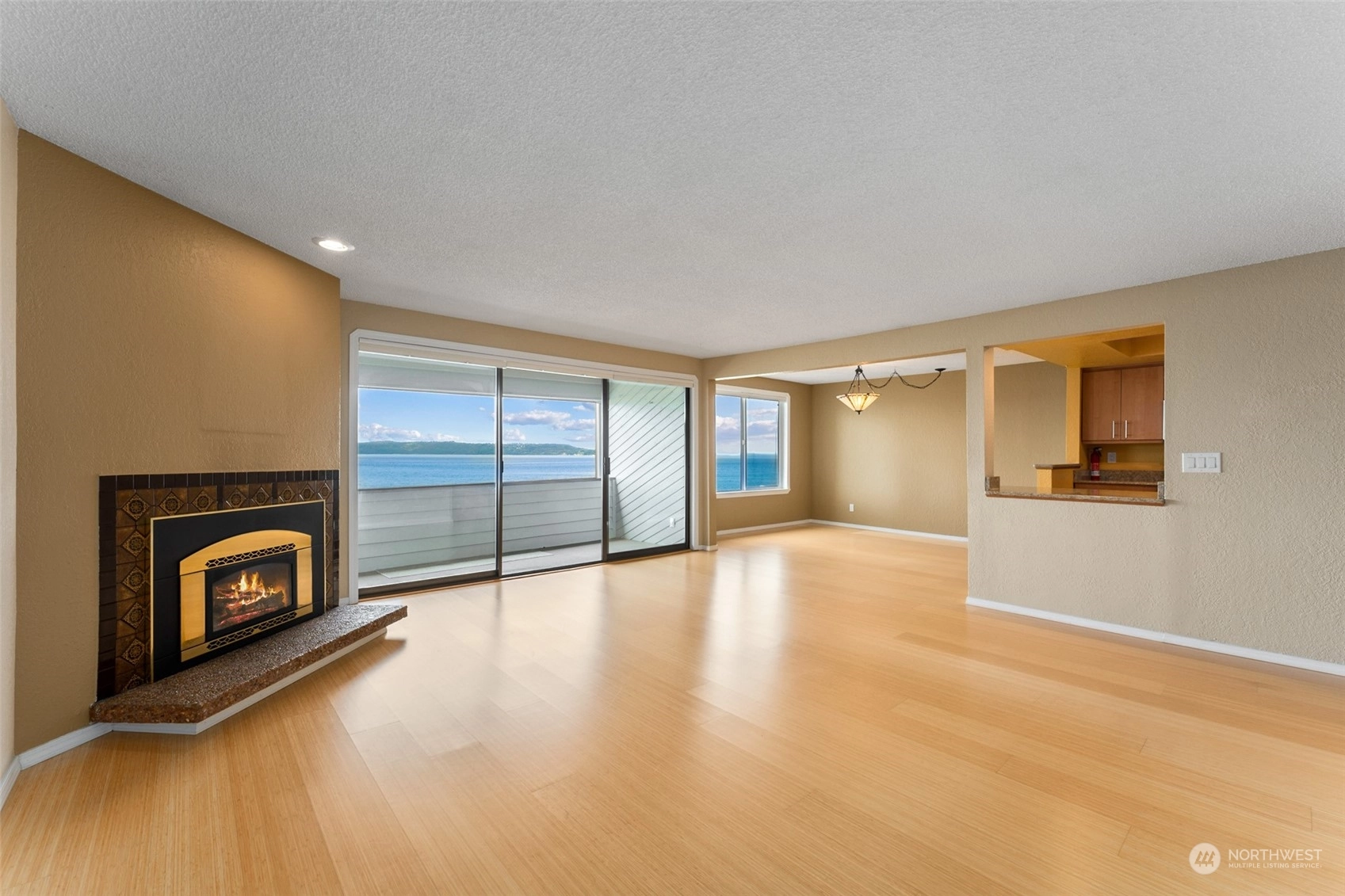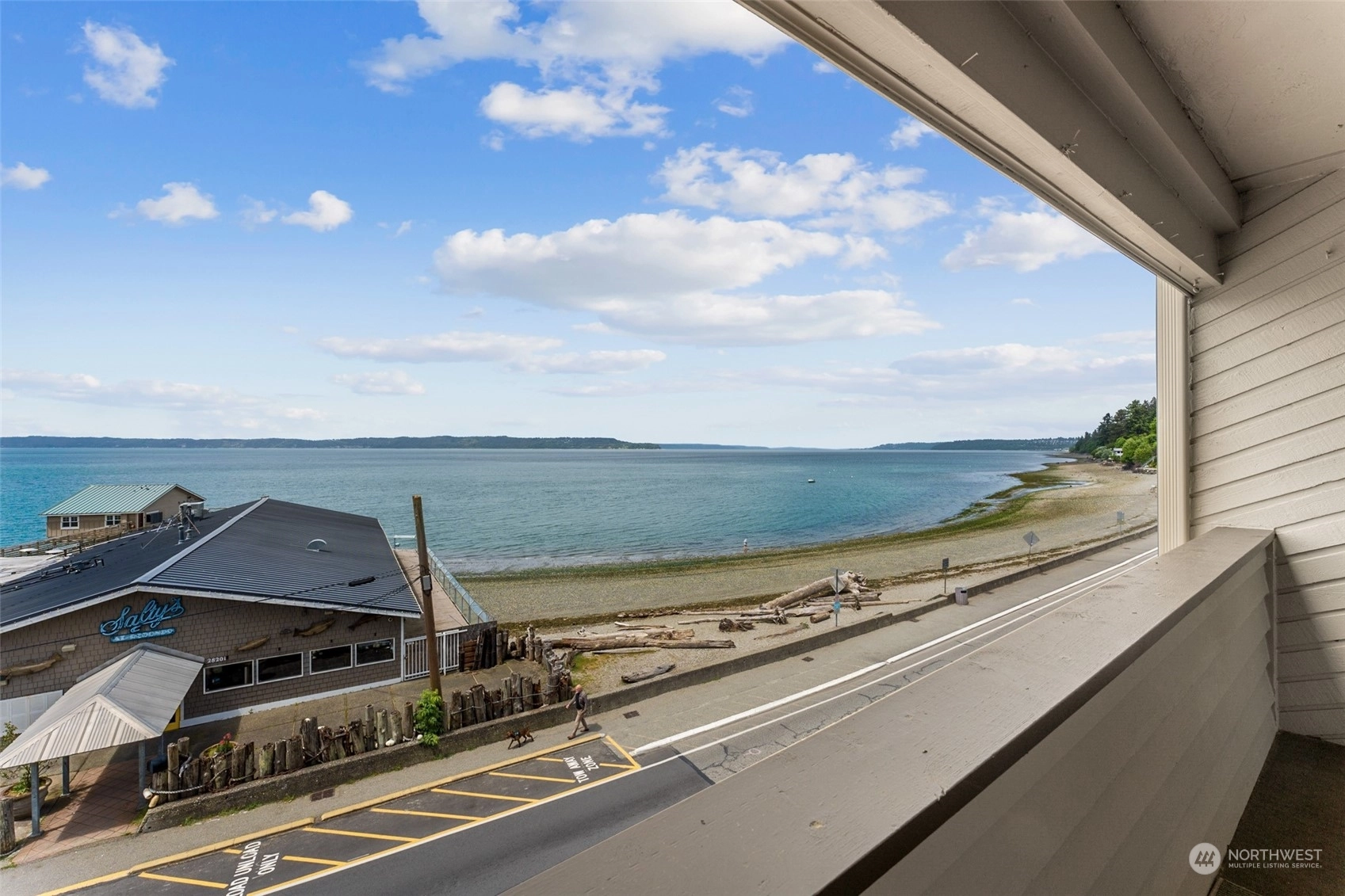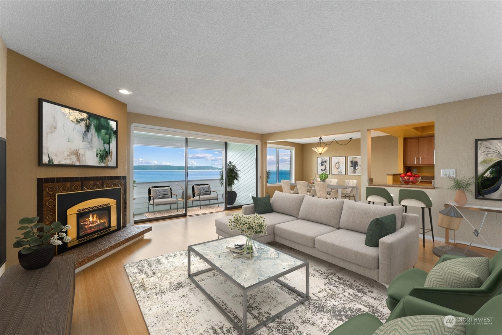 First time on market in 33 years! You'll pinch yourself every time you take in your spectacular views of the Puget Sound and Olympic Mountains! The sunsets are unreal and ever changing and the unending walks along the boardwalk and beach tempt you regardless of weather conditions. This roomy 2 bedroom, 2 baths, with an office off the primary will give you plenty of room to spread out. The gas fireplace warms you in the winter and cross breezes cool you in the summer. You'll love the updated kitchen and bathrooms too. What's not to love about this light and bright Condo with water front living?! Accessibility is easy from the secure parking garage to the elevator. The street entrance is secure as well. Don't miss it!
