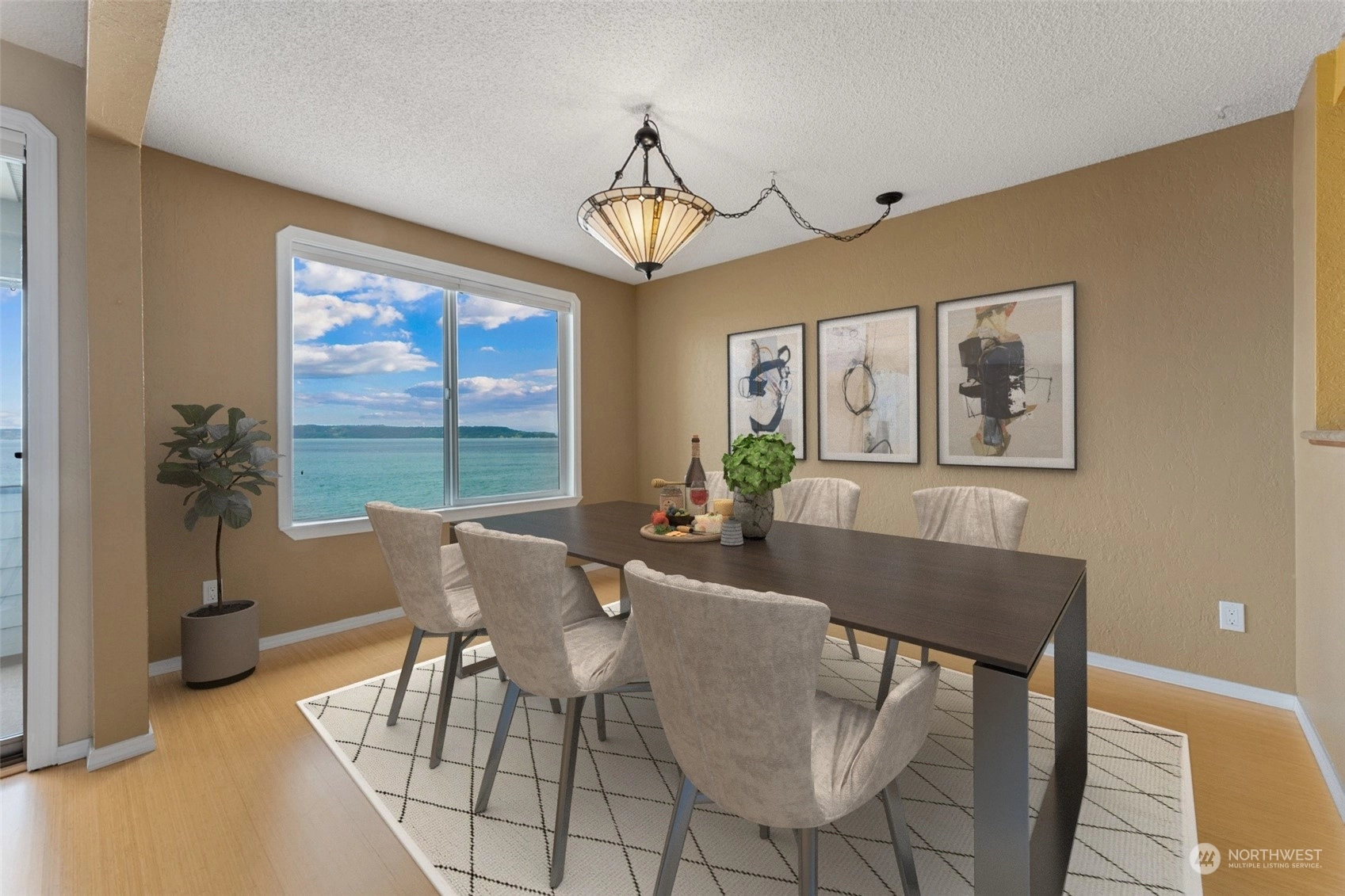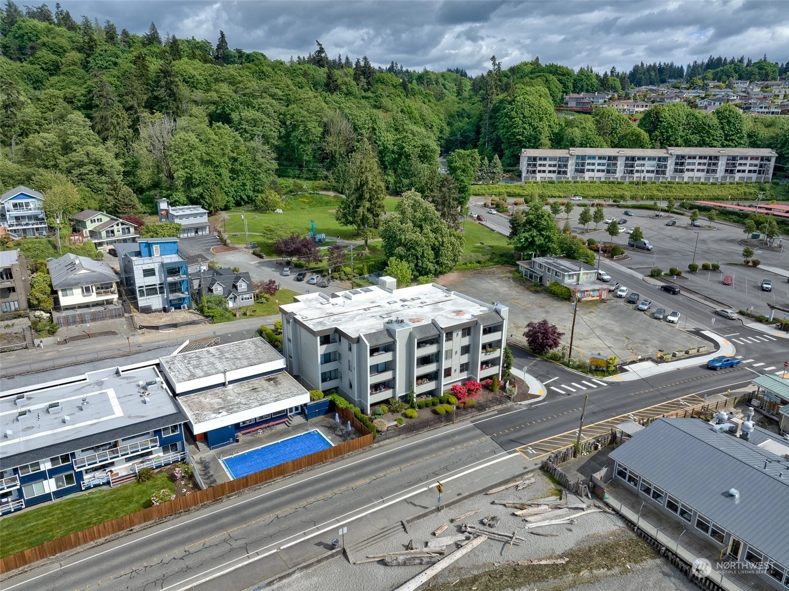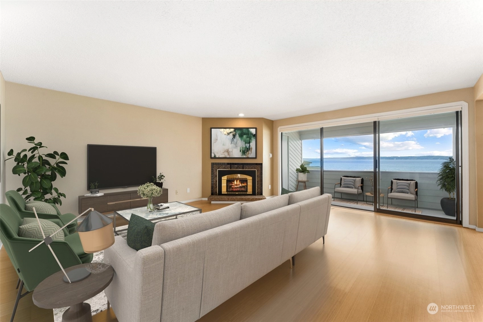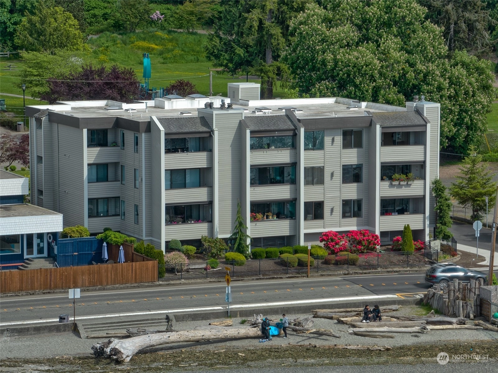 First time on market in 33 years! You'll pinch yourself every time you take in your spectacular views of the Puget Sound and Olympic Mountains! The sunsets are unreal and ever changing and the unending walks along the boardwalk and beach tempt you regardless of weather conditions. This roomy 2 bedroom, 2 baths, with an office off the primary will give you plenty of room to spread out. The gas fireplace warms you in the winter and cross breezes cool you in the summer. You'll love the updated kitchen and bathrooms too. What's not to love about this light and bright Condo with water front living?! Accessibility is easy from the secure parking garage to the elevator. The street entrance is secure as well. Don't miss it!