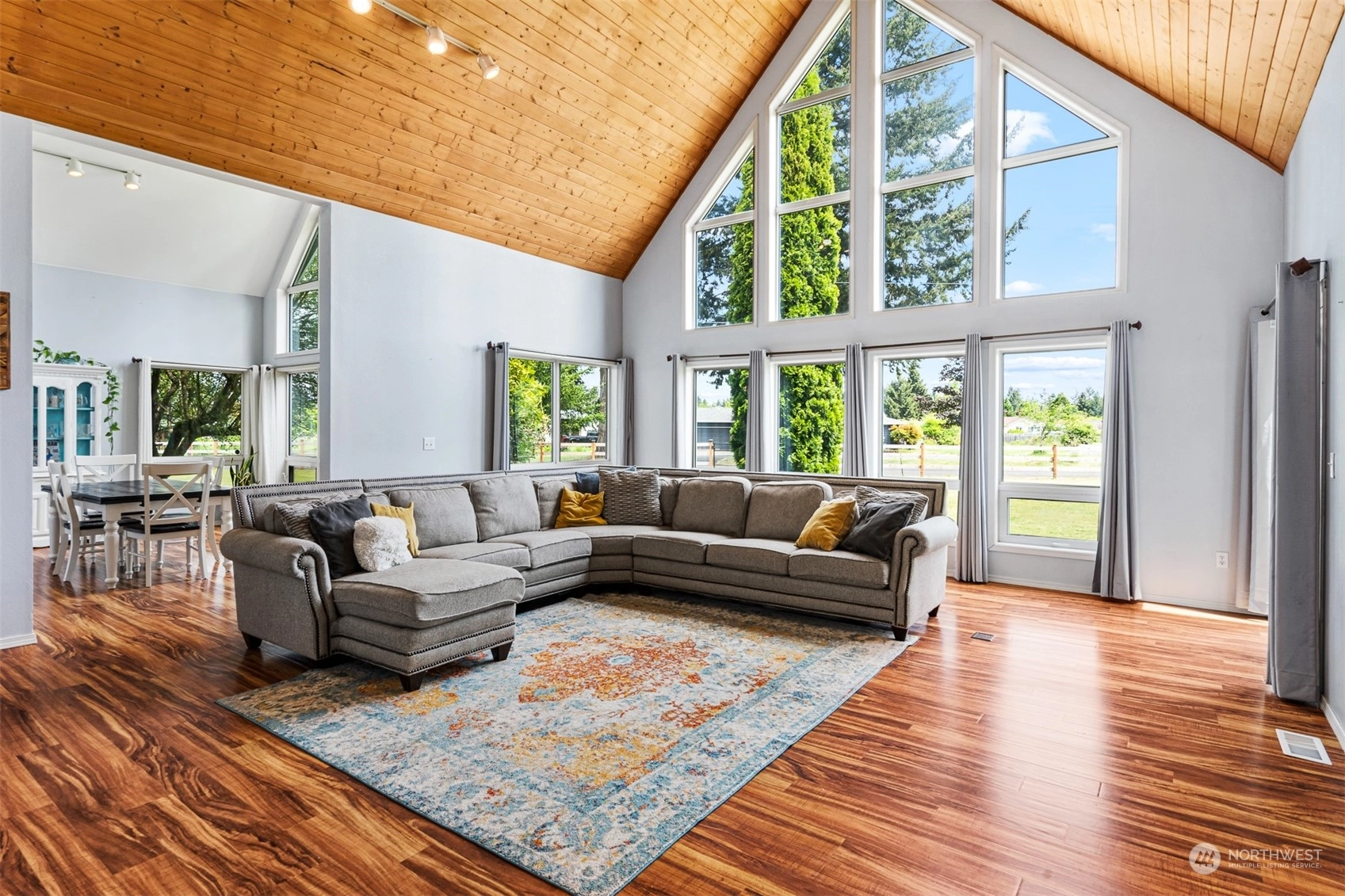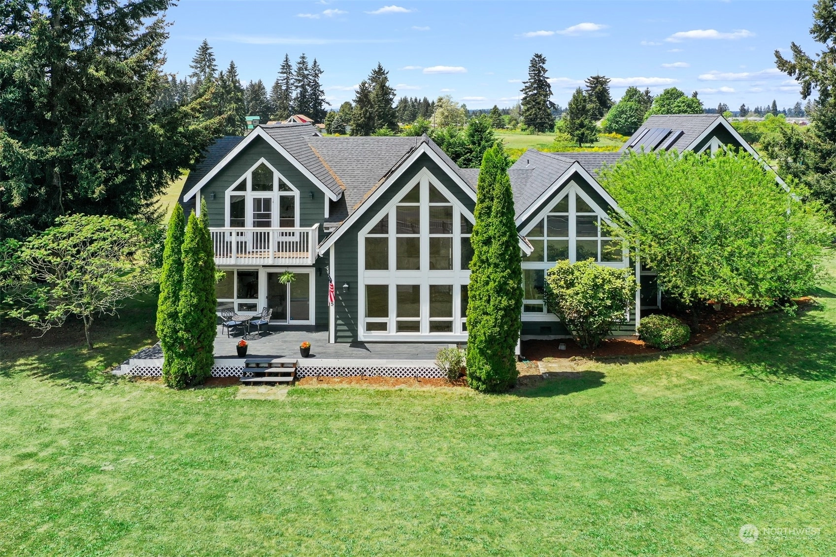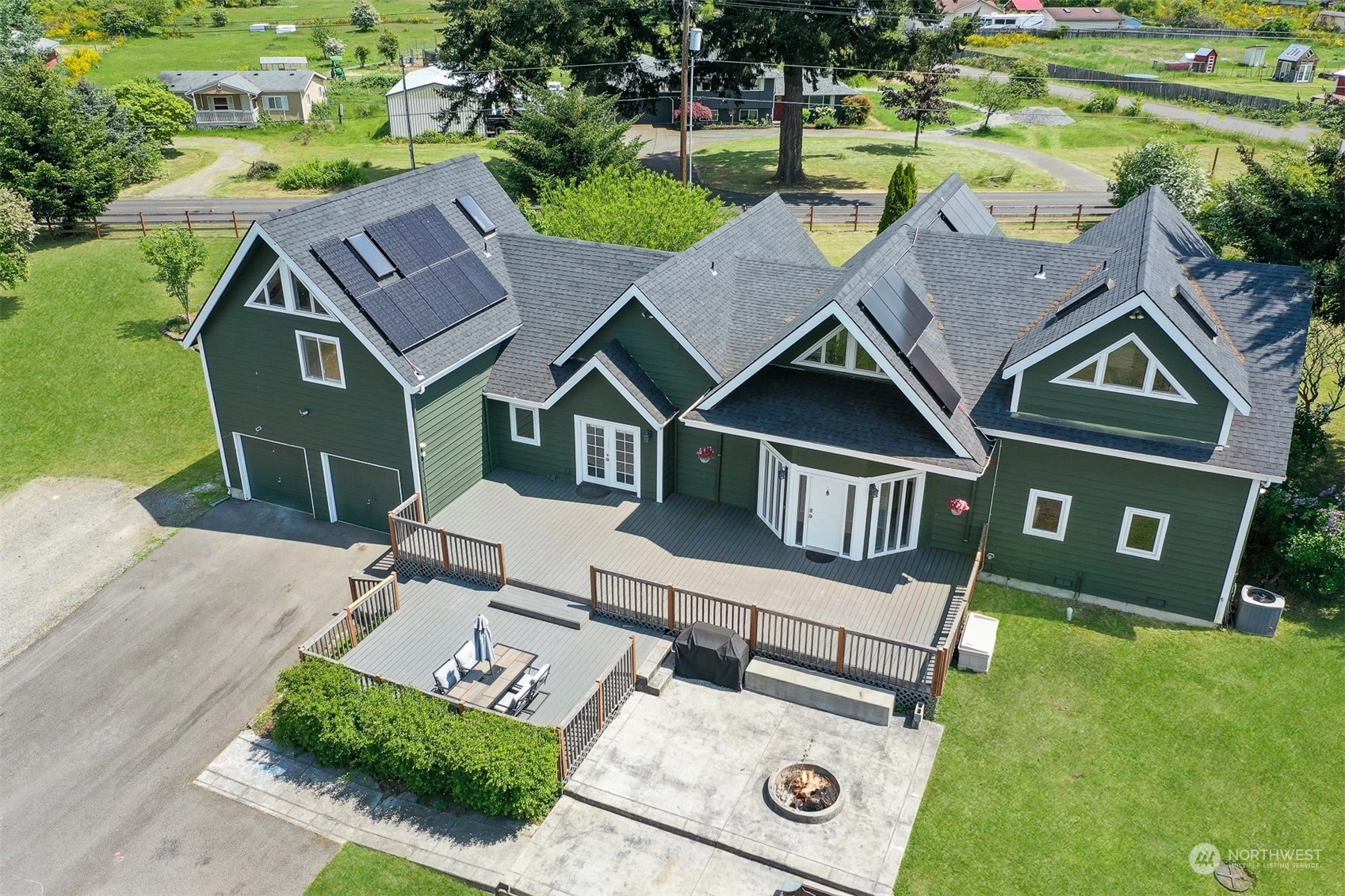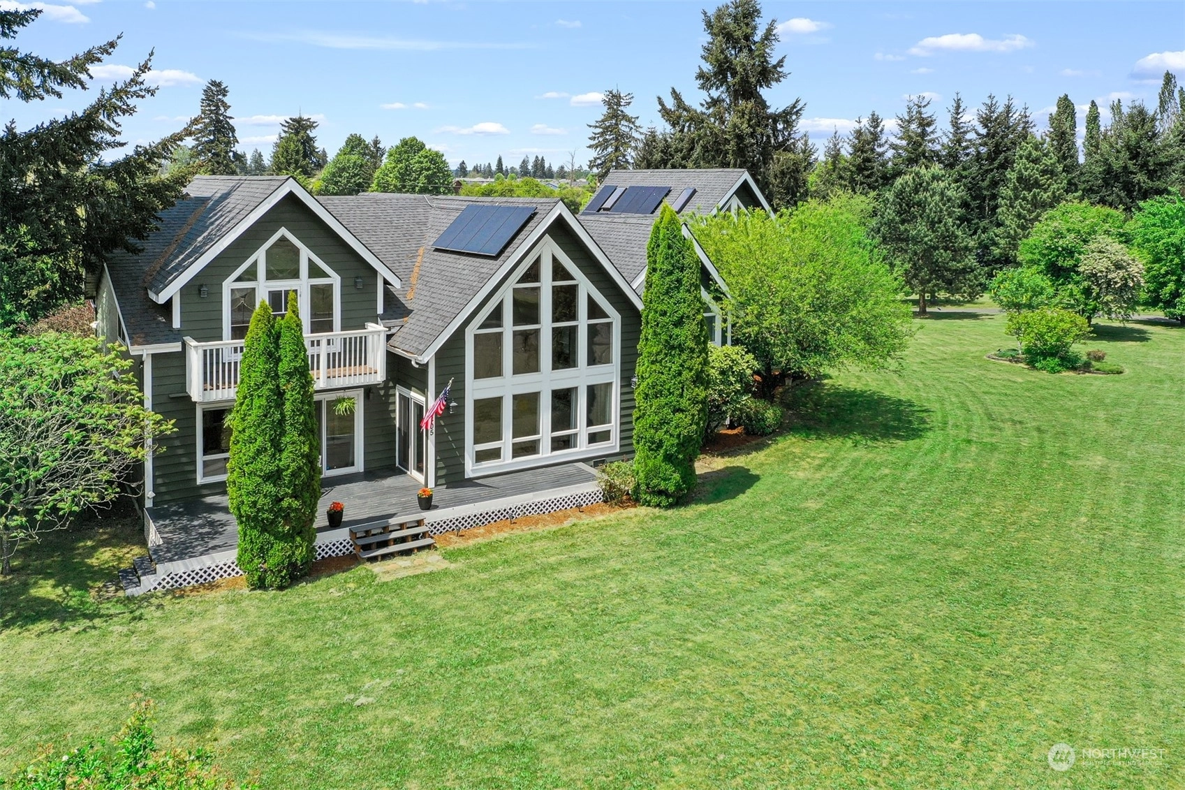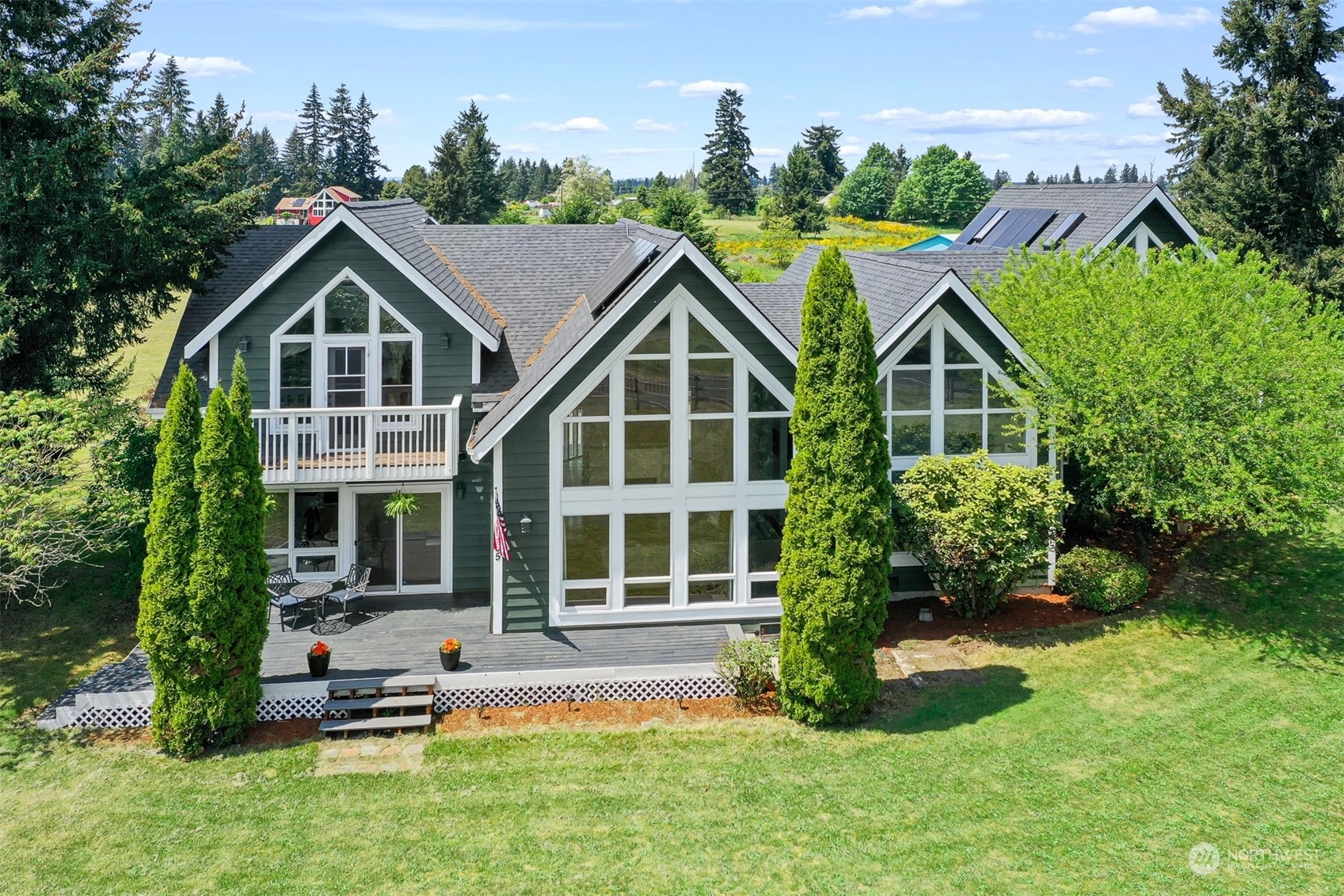 Size matters! With a massive 3,613 sqft of living space, this home offers everything: 3bdrms, 2bonus rms (w/closets), Office, Living, Kitchen, Formal Dining. Soaring vaulted ceilings w/multiple chalet-style windw banks brings grandeur. Solo staircase leads to Primary Suite completd w/walk-in closet, exquisite brand new bthrm, & private balcony w/Mt Rainier views. Frnch drs; skylights. Enjoy outdoors on tiered trex deck w/concrete patio. Endless potential! Sitting on shy 4 acre parcel - with a little work, this could be your dream hobby farm! New roof installed in summer of 2020. Save on your energy bills! Solar panels reduce cost by apprx 16% each mnth. Great commuting location for JBLM, Olympia & I5 access. No HOA. Ahhh.. this is the life!