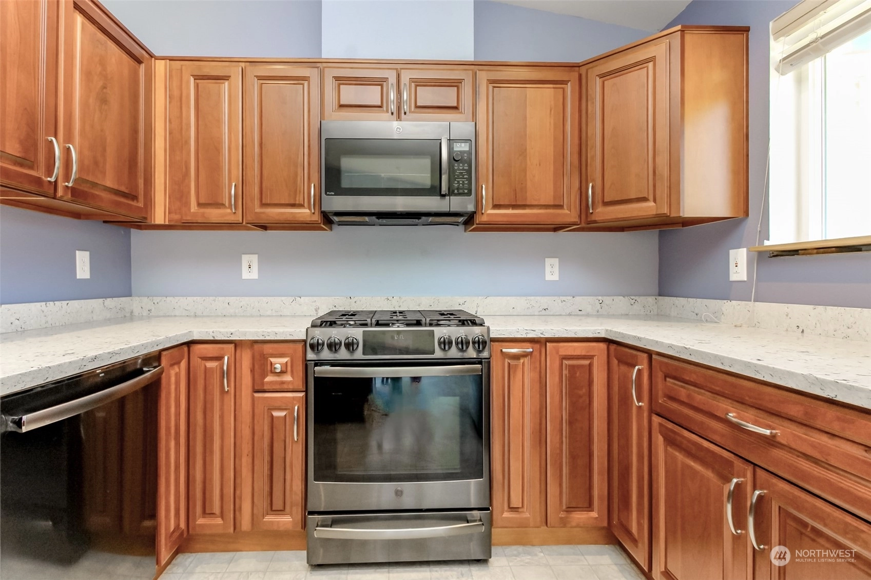 Welcome to this Beautiful One-Owner, Well Maintained, 1-Story Home. Home is Smoke Free! The kitchen has been updated with all new cabinets, appliances, lighting and flooring! All appliances stay! Primary Bathroom has been updated with a walk-in shower. This home has new blinds throughout. A new hot water heater was installed in 2022. The furnace was replaced, with electronic air filter and A/C installed. Roof replaced in 2020. This home has vinyl siding. Dryer is Electric, also wired for Gas. Gas Hook up in backyard for BBQ or Hot tub. One year Home warranty included.