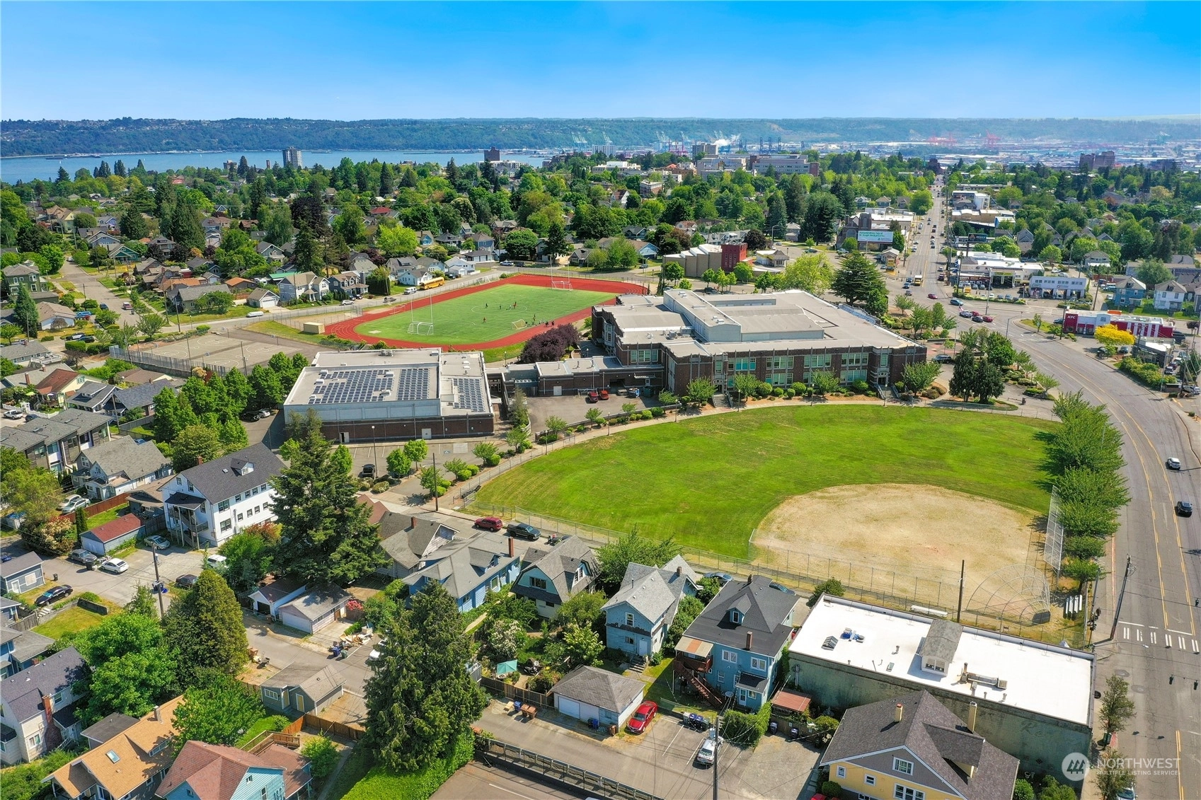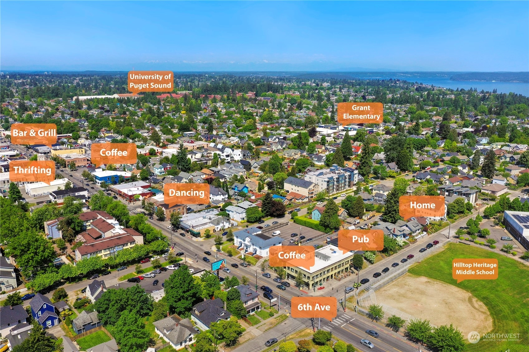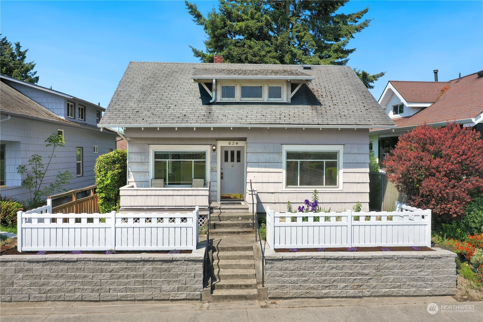 LOCATION! This 3/bed, 1/bath home w/basement is located in North Tacoma near the 6th Ave District. Original hardwood floors, cute private garden backyard with patio, detached two car garage w/ new garage door & two additional off street parking spots as well! Front porch above street level for enjoying the sunshine and people watching. Conveniently located near dining, shopping, coffee shops, highways, schools, medical and all wonderful things Tacoma has to offer! Park like school field across the street!