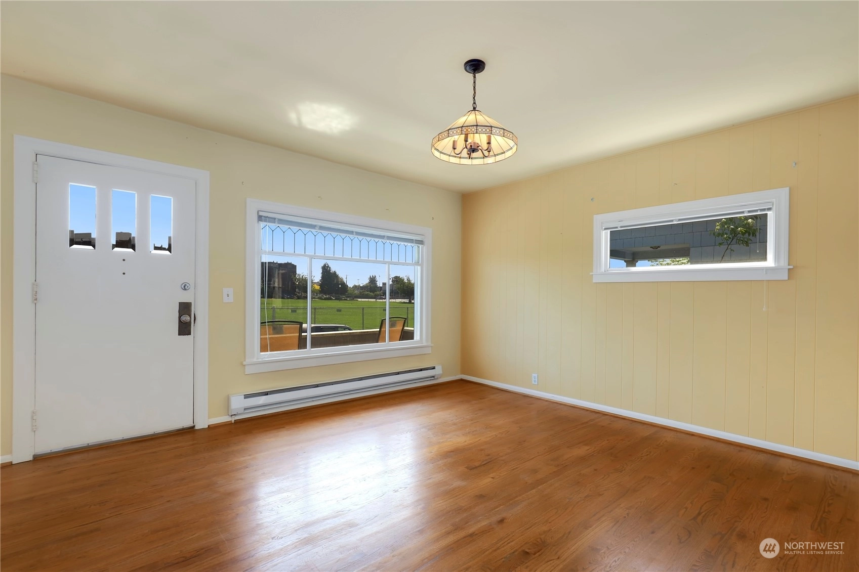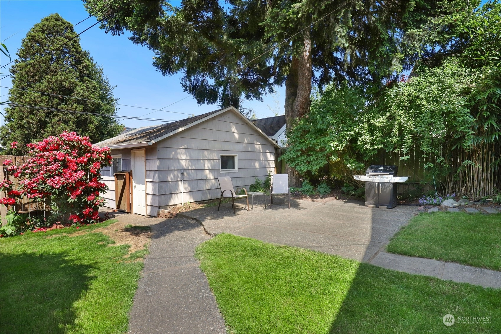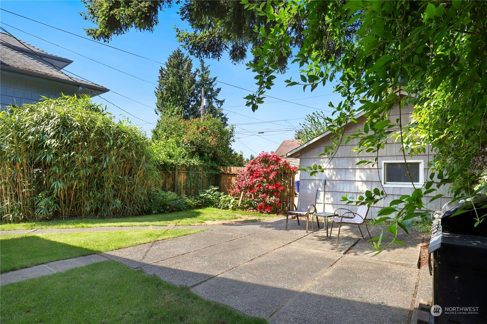 LOCATION! This 3/bed, 1/bath home w/basement is located in North Tacoma near the 6th Ave District. Original hardwood floors, cute private garden backyard with patio, detached two car garage w/ new garage door & two additional off street parking spots as well! Front porch above street level for enjoying the sunshine and people watching. Conveniently located near dining, shopping, coffee shops, highways, schools, medical and all wonderful things Tacoma has to offer! Park like school field across the street!