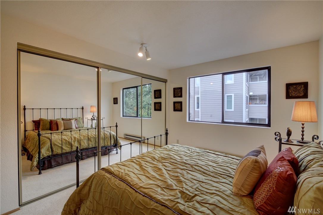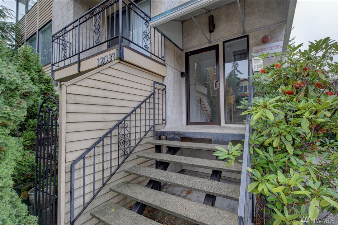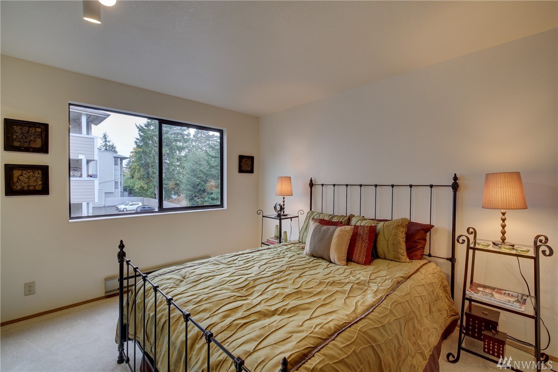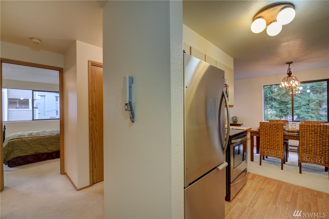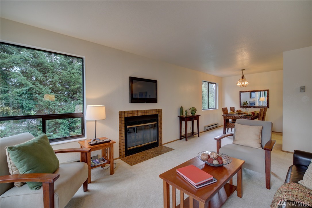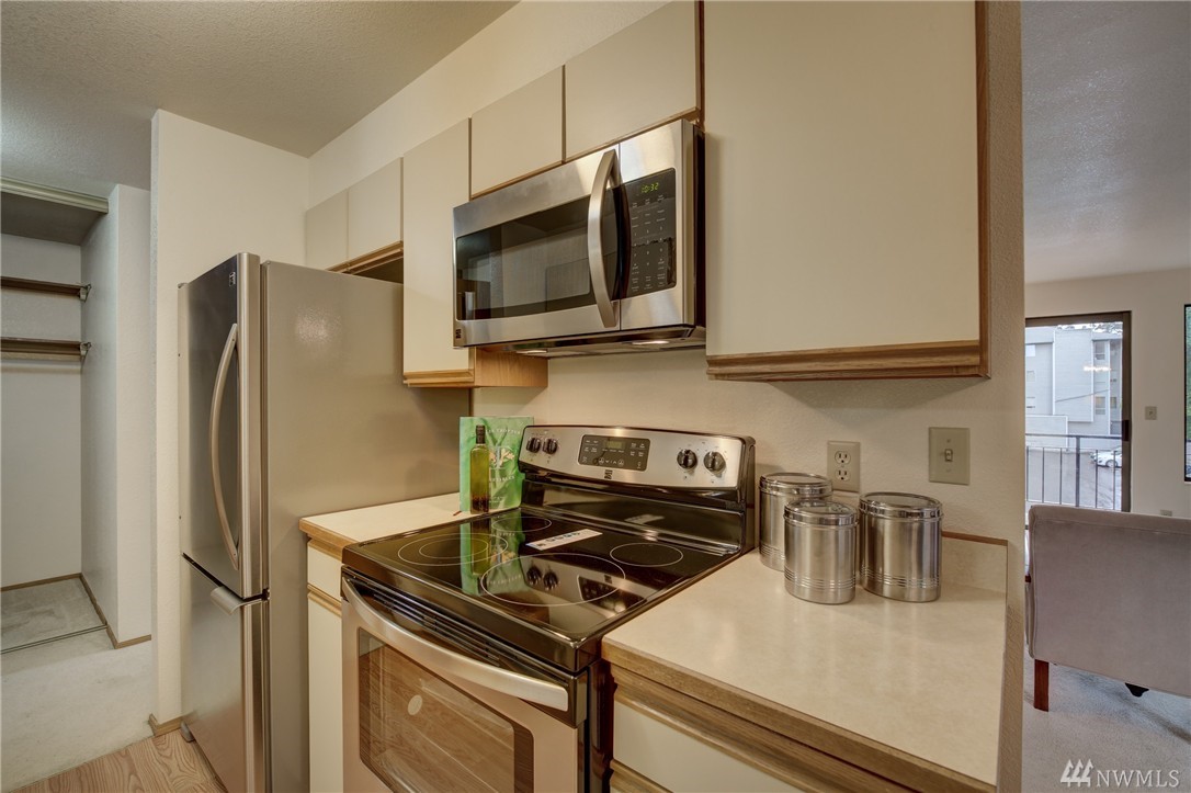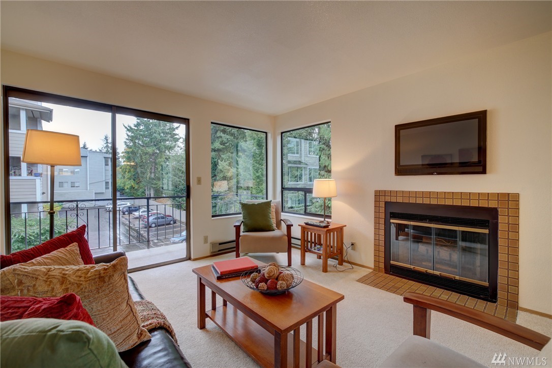 Peaceful move-in ready condo is your affordable urban retreat. Rear corner end unit takes you away from your busy city life & offers a serene setting with copious light. Updated with fresh paint throughout, tasteful new flooring & new stainless kitchen appliances. Efficient floor plan features living room with fireplace, sliders to covered deck, dining area. Secure entry, private storage unit, designated off-street parking & more. Great location close to shopping, dining and major bus routes.
