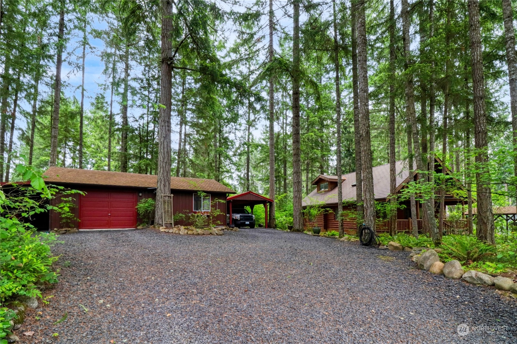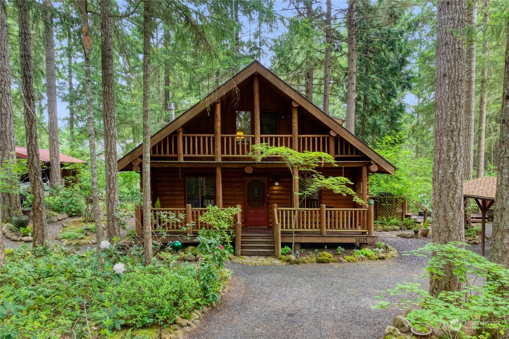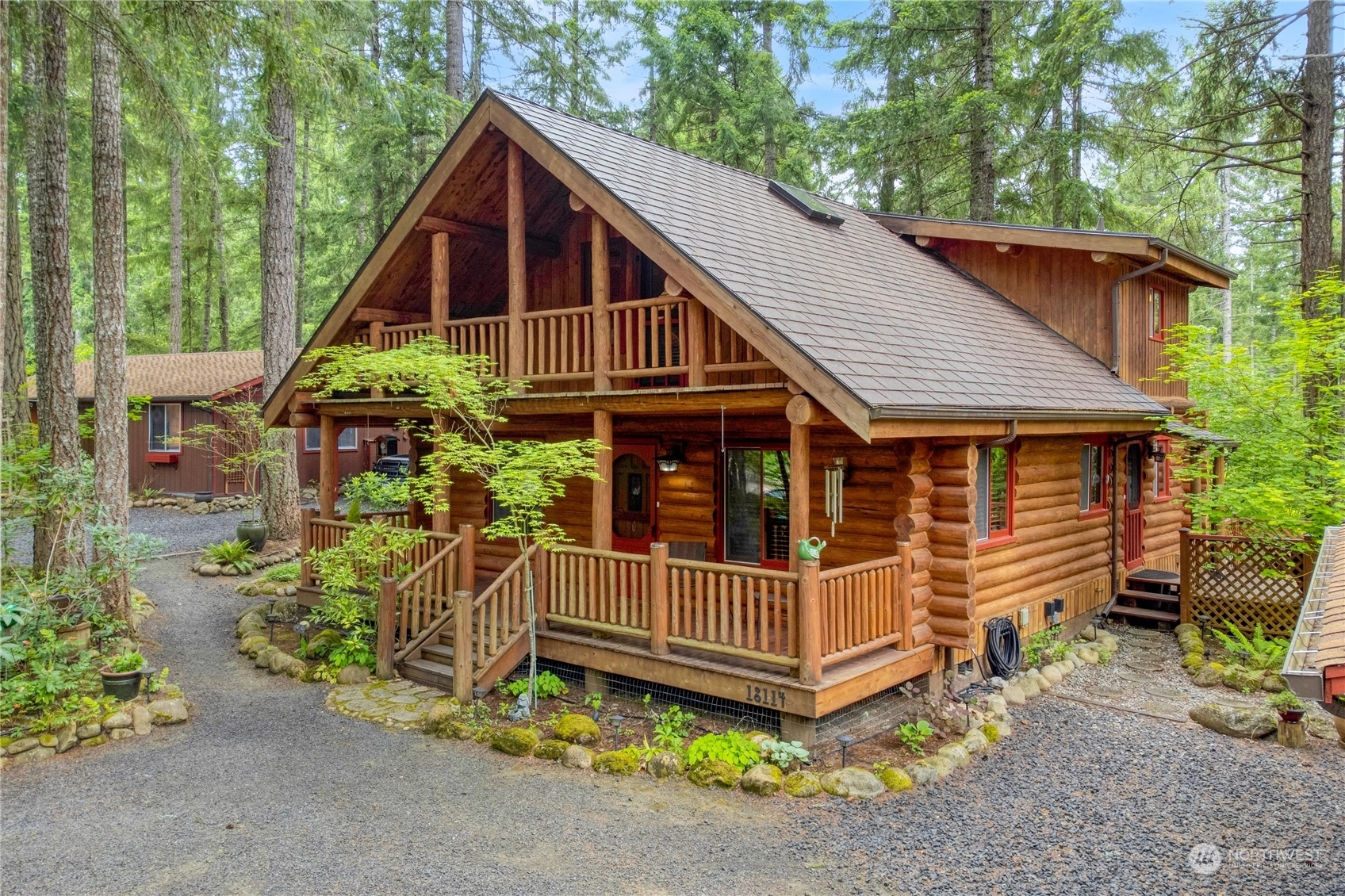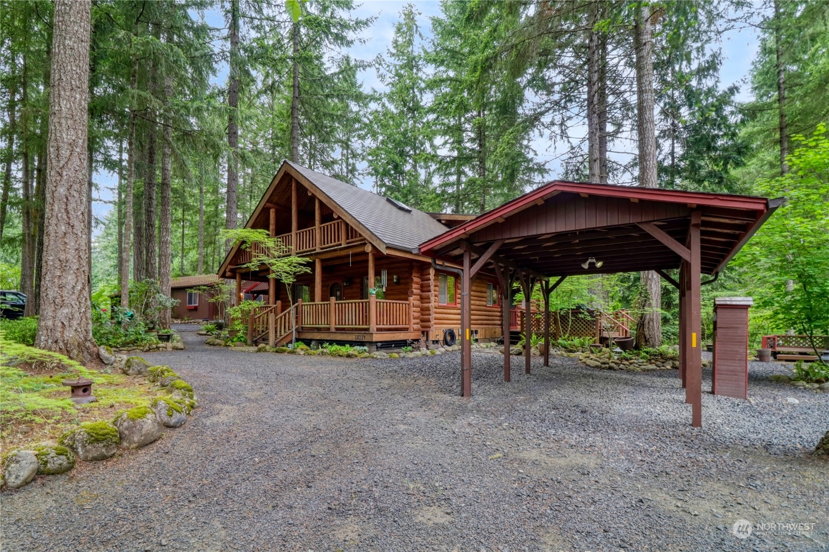 Exceptional & impeccably well maintained log home in beautiful Clearwood! Breathtaking & stunning are the understatements for this home & property. 2 bedroom & 2 bathroom. Spacious loft w/private & covered deck. Soaring vaulted ceiling, incredible covered front porch, newer carpet - just charming & exquisite! 2 parcels, detached garage w/finished large shop/bonus room w/220 & wood stove. Generator ready, newer 50 year/lifetime aluminum roof on home, newer and larger water heater. 3 carports, outbuilding, park-like low maintenance landscaping & new gravel throughout. So much more & must see to appreciate. Clearwood is a gated community w/lakes, hiking trails, pool, parks & much more. Buyer/agent to verify all information to own satisfaction.