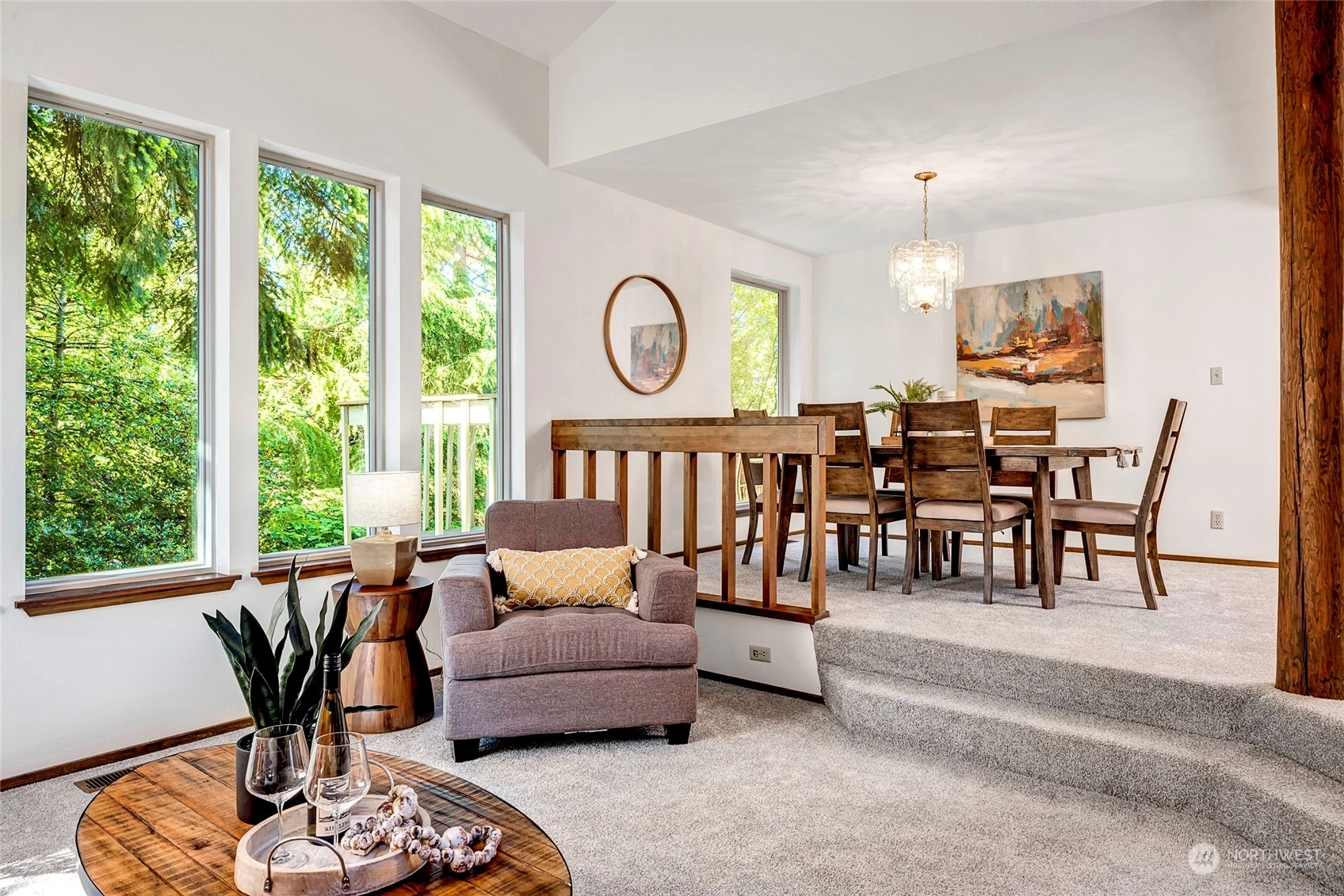 A Serene and Secluded Sanctuary - one of only 22 townhomes nestled in this coveted location; this residence is at end of lane and affords quiet and privacy. Perfect layout with family room directly off kitchen with breakfast bar (staged as kitchen nook) separate dining room and majestic high-ceilinged living room with walls of windows: southern exposure; powder room on main floor. Upper level has two large bedrooms, primary with balcony; two three-quarter baths; plus large bonus room with endless possibilities. AC, tankless water heater and freshly painted and carpeted. Enhance with your personal style and make this original your own. Excellent schools; transportation, grocery, shopping and restaurants close-by.Pre inspected.