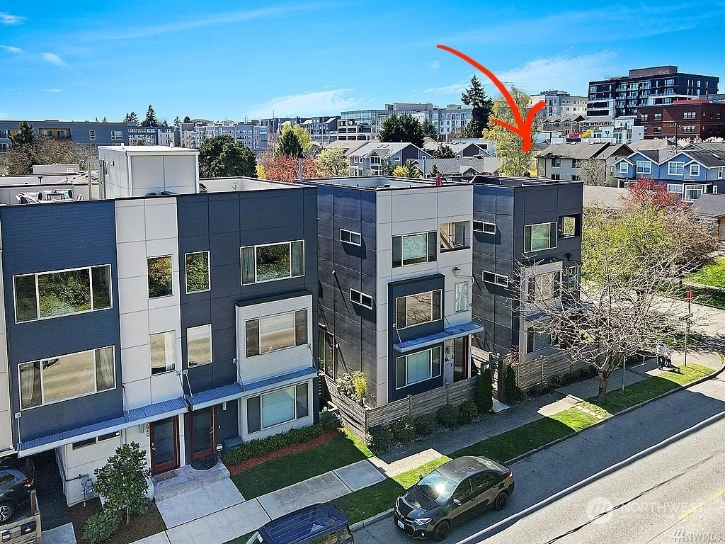 Welcome to PRIME West Seattle. This 3-story, detached 3 bed/1.75 bath home will knock your socks off. Enjoy views of the Cascade Mountains & downtown from your oversized rooftop deck. Entertain in your open concept kitchen w/ vaulted ceilings, custom cabinetry, quartz countertops, open sight lines to living room, stunning staircase, & floor to ceiling sliding doors to your backyard. Bask on your sun-lit patio w/ newly updated landscaping thru-out - fully-fenced! 2nd floor: 2 beds/1 full bath + storage closet. 3rd floor: laundry room, primary bedroom w/ elegant en-suite bath & spacious walk-in closet. Don't forget the large outdoor storage shed, 1 assigned parking pad & ample street parking. NO HOA!!! A dream location - 96 walk score!