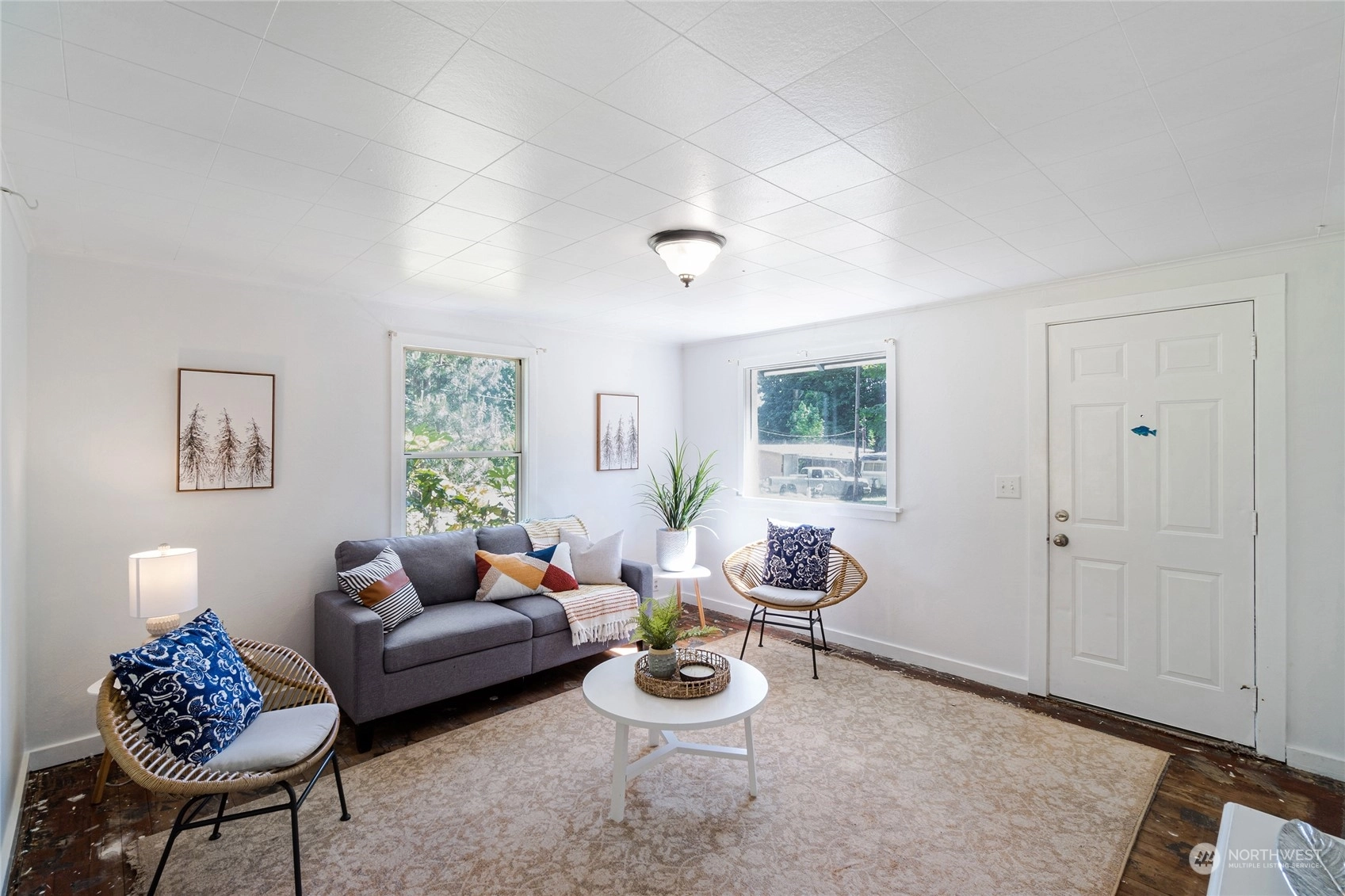 This darling 1930's farm house, is the perfect home to gain some sweat equity. The floors have been left "as-is", there are some beautiful original hardwoods under there! Finish those out, or put in your favorite flooring. Kitchen has been remodeled, new paint, Inside & out. Roof, only 8 years old. Charming attic room on the top floor, Use as a sitting room, office, or whatever your needs may be. With original built in book cases. This space is such an extra bonus! Main floor has two bedrooms, kitchen, dining, laundry and living room. The property is wonderful! Level, sunny with Garden space, fruit trees and off street parking, Quiet neighborhood, Close to everything! 10 minutes to PSNS, Schools, shopping etc. Vacant, go and show!