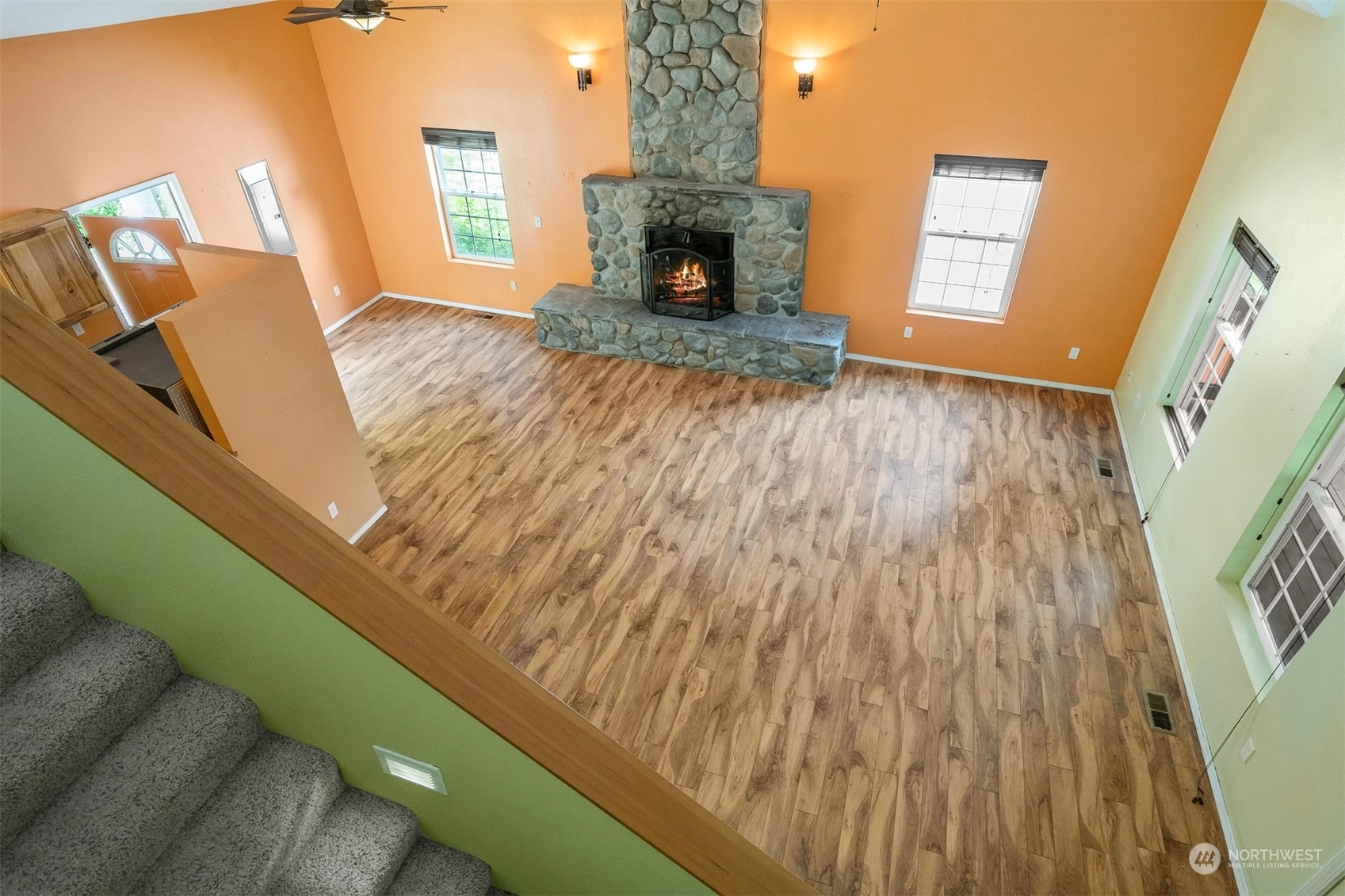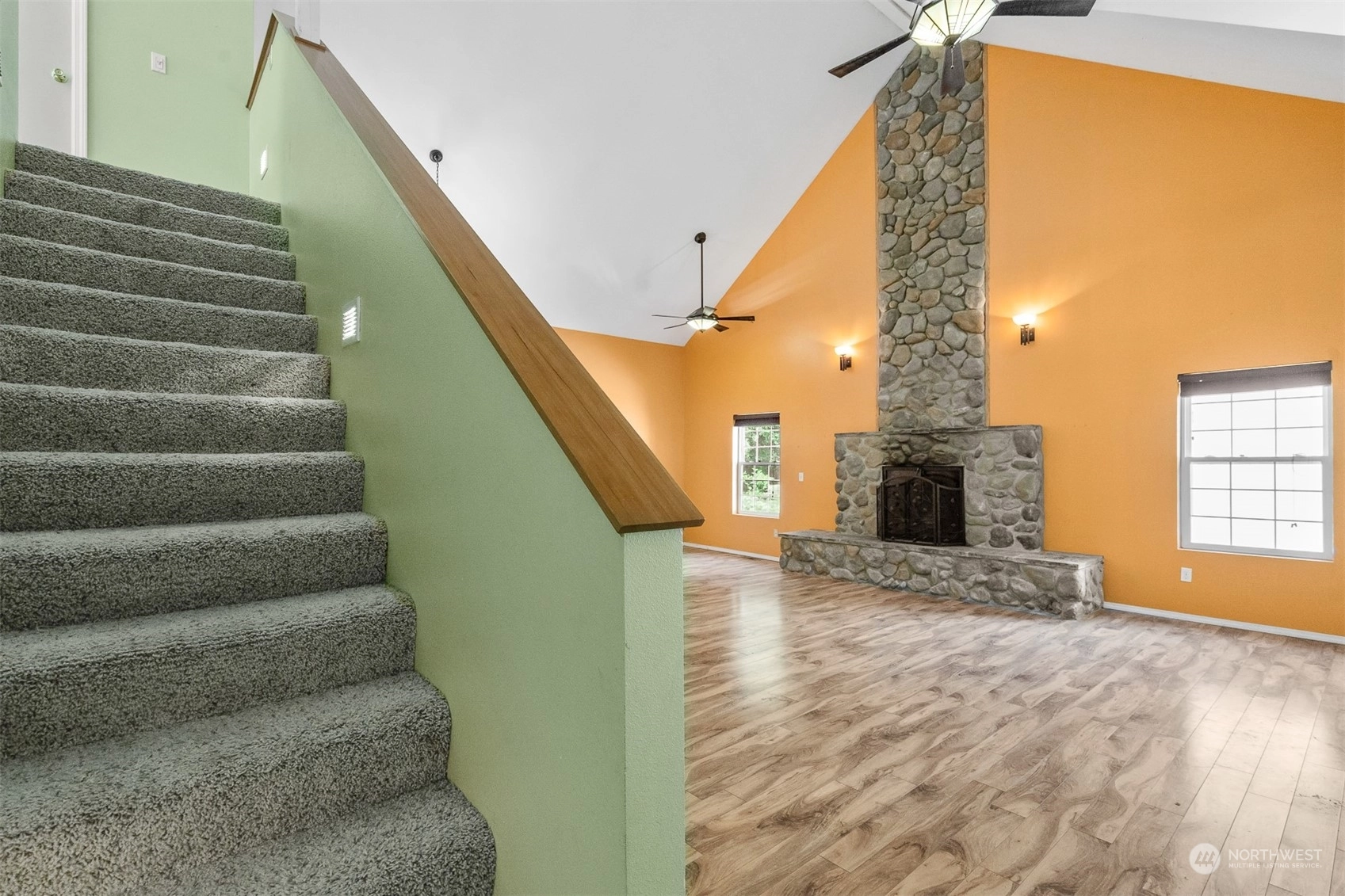 Laminate Wall to Wall Carpet Bath Off Primary Ceiling Fan(s) Double Pane/Storm Window Dining Room Vaulted Ceiling(s) Fireplace Water Heater