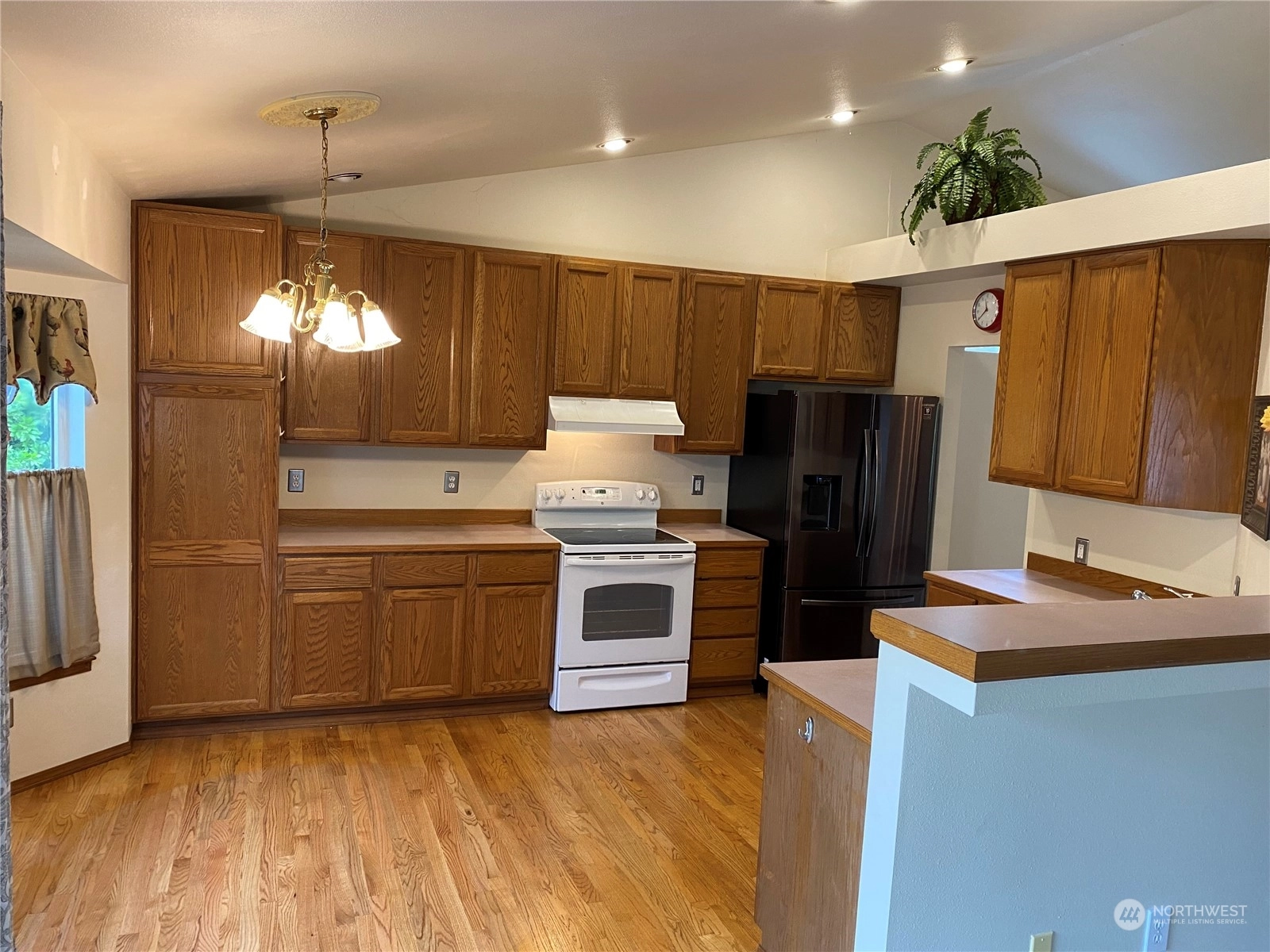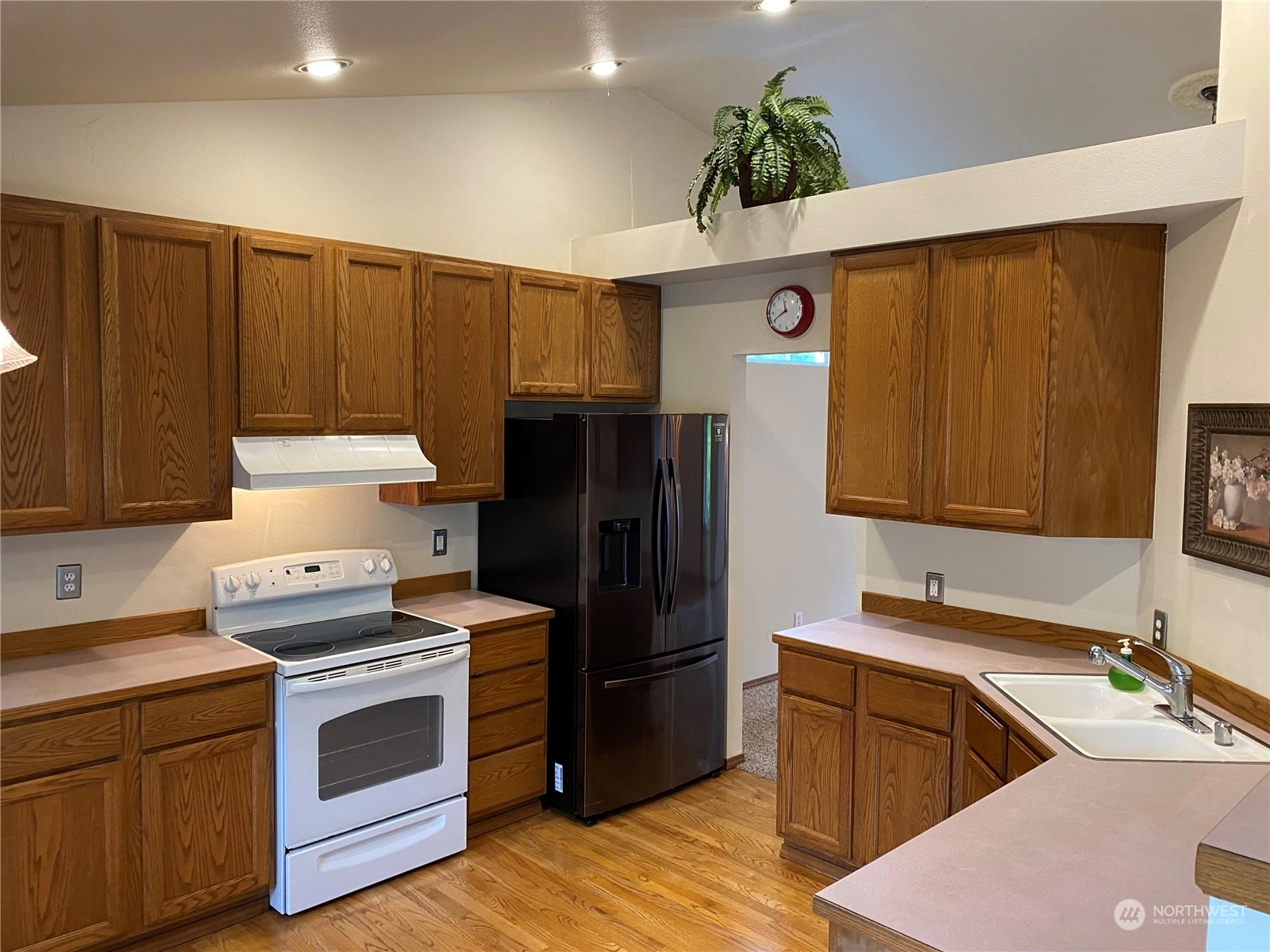 Here is that charming rambler for one level living, on a corner lot in the sought after community of Parkview Estates. As you enter, you are greeted by living room with vaulted ceilings, as well as in kitchen & family room for that open feeling. Open kitchen with hardwood floors, bay window, and brand new stainless refer. Family room with cozy gas fireplace and sliders out to private patio with electric awning, and very private rear yard. Primary bedroom with private bath & large walk-in closet, plus two additional bedrooms and utility room. Finished 2 car garage with 2 sinks and insulated garage door. Don't miss out on this charming rambler & wonderful neighborhood !