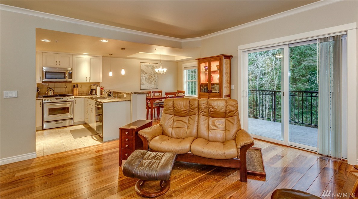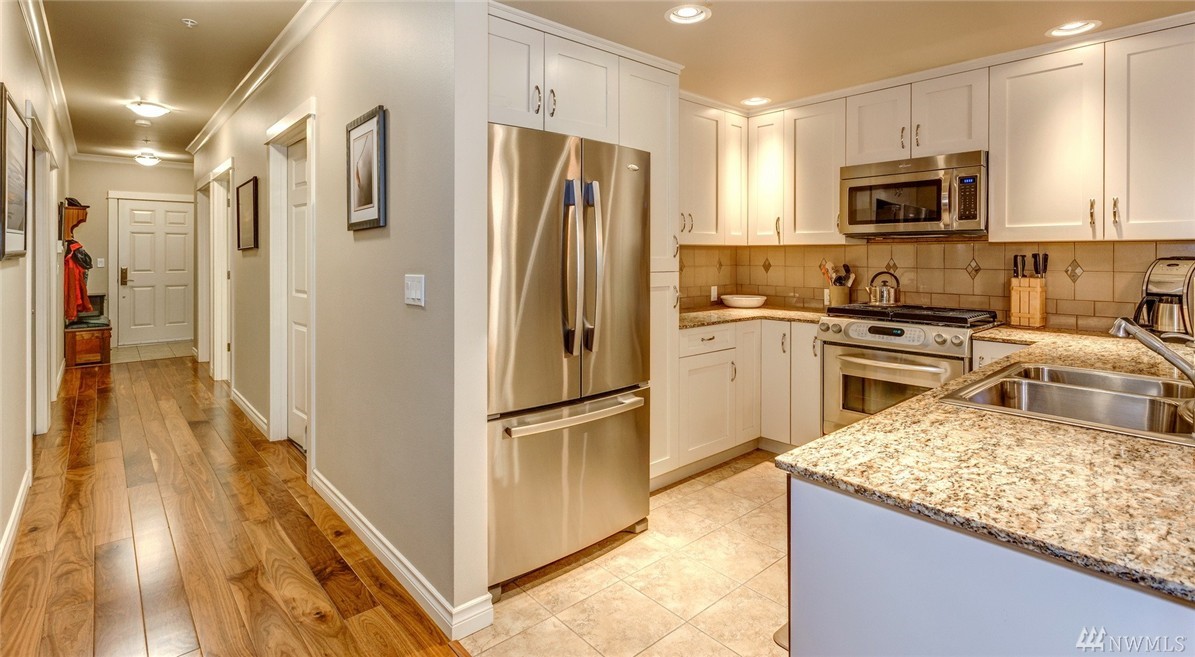 Urban living in this gorgeous 2 bedroom/2 bath one-level Fairhaven Creekside condo in historical Fairhaven. Luxury details include extensive hardwood floors, 9' ceilings complete with crown molding, radiant heat, gas fireplace, gourmet kitchen with granite counters and stainless appliances. Spacious private deck overlooking a park-like setting. Secure elevator, underground garage parking with 2 reserved spaces and storage. Walk to shops, restaurants, the waterfront, parks and trails.