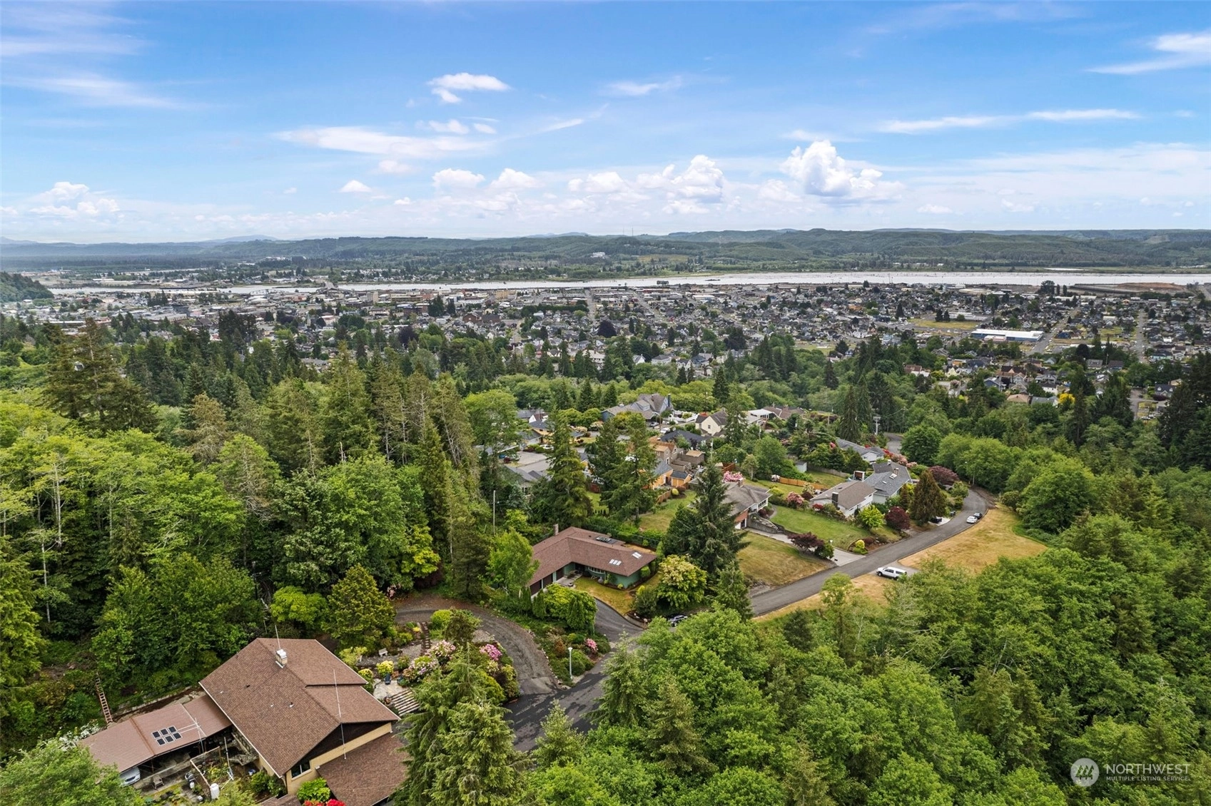 Nestled atop Broadway Hill, this tucked away property has sightlines over the city with territorial and water views. Enjoy this private and secluded 3 bedroom and 1.75 bathroom single living home that is bright and airy. The primary bedroom and ensuite are sun soaked from numerous skylights. The fully fenced yard space provide a covered outdoor deck, mature vegetation, and beautiful views of sunny Pacific Northwest skies. Carefully maintained with touches of modern convenience throughout. Recently updated roof, heat pump, furnace and exterior paint means that this is ready for all your creative interior design ideas. A fully finished garage and extra storage areas are just two of many things to enjoy about this home.