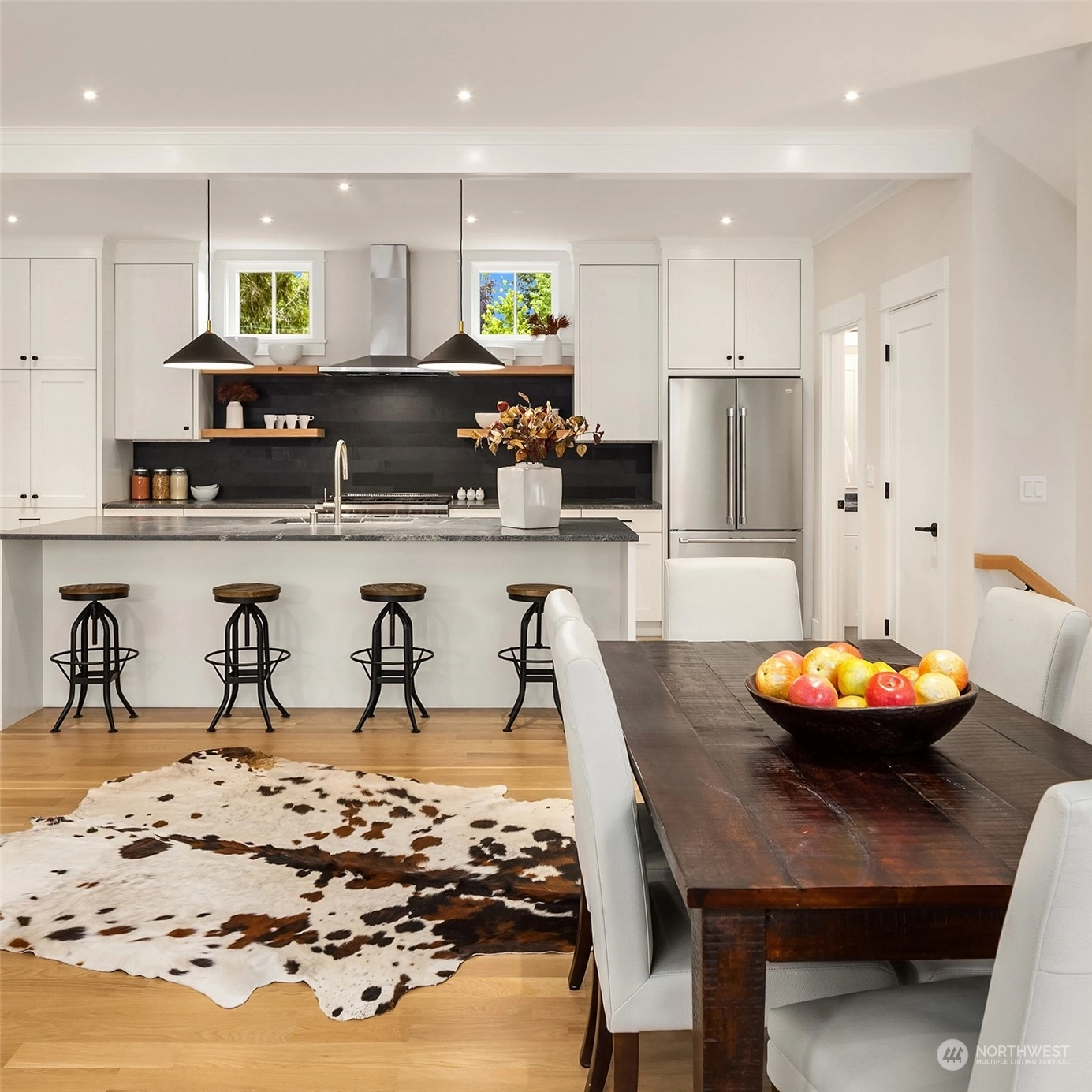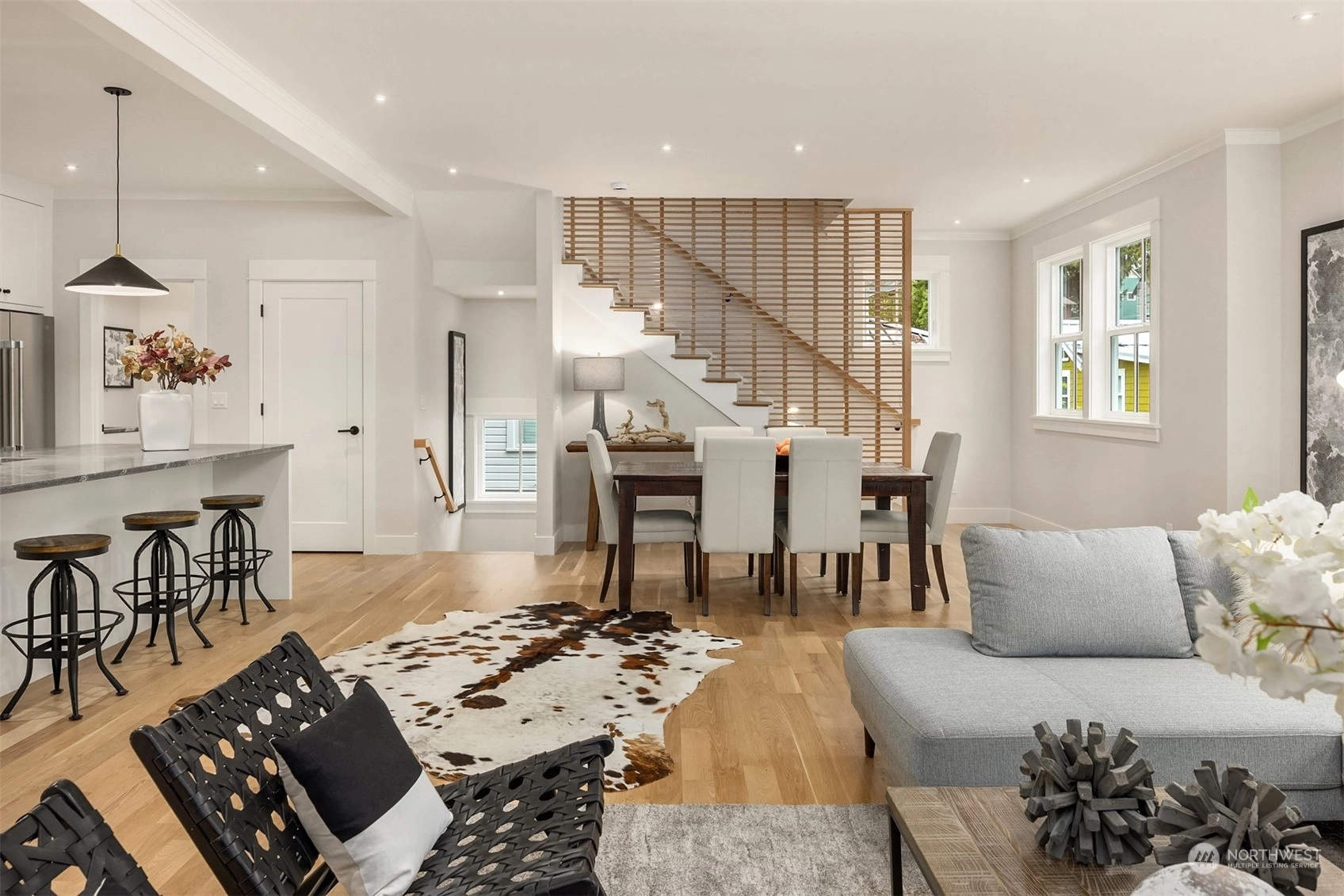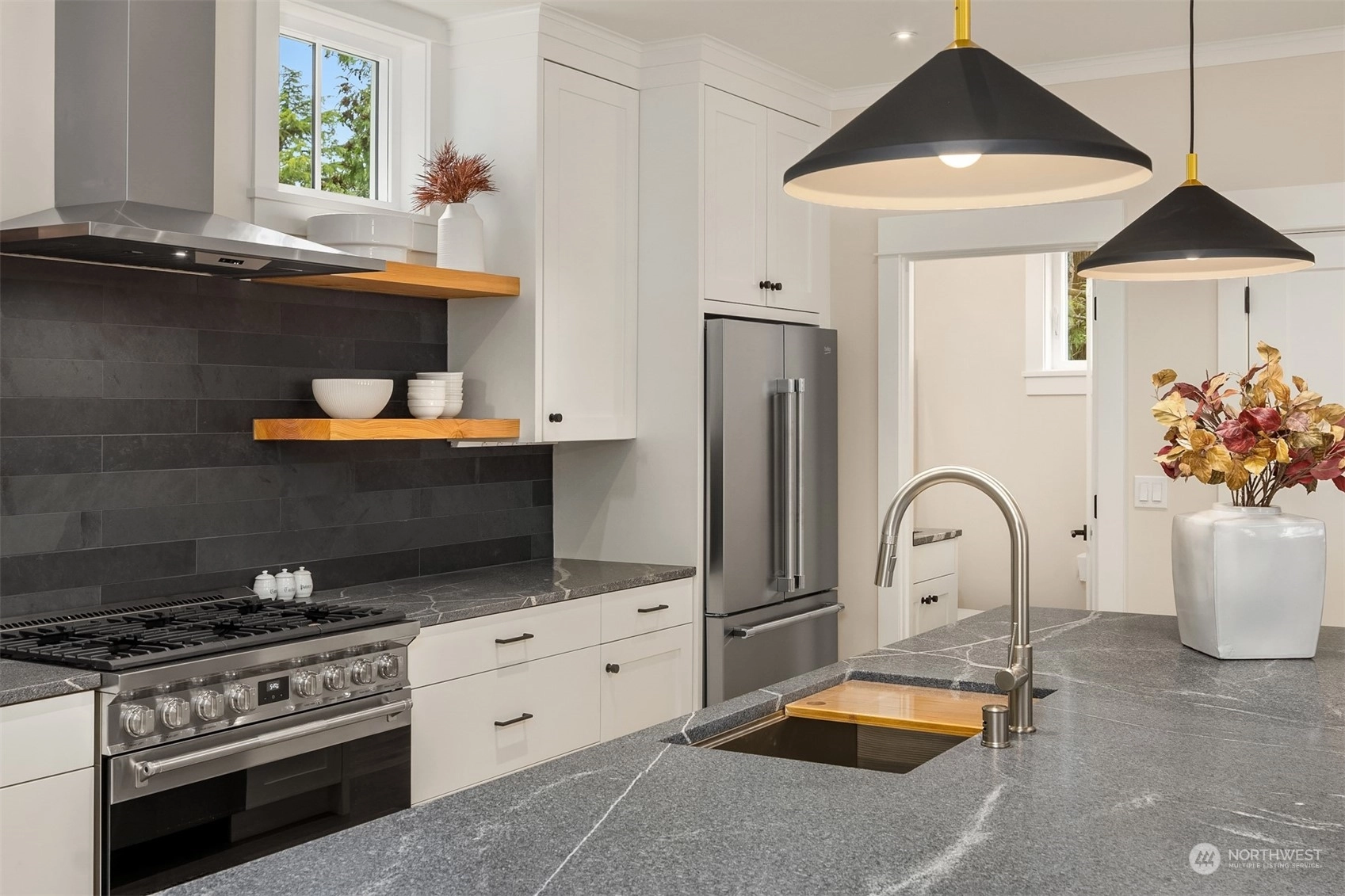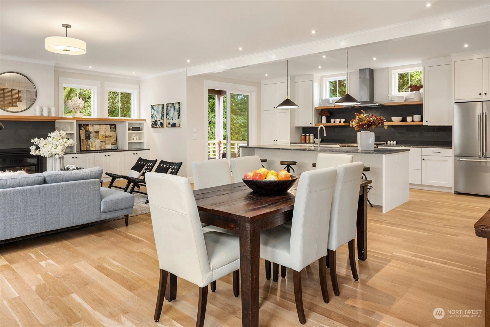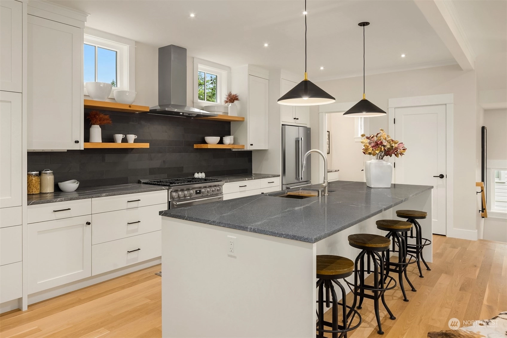 Discover the charm of Groos Lane, an enclave of 5 boutique homes nestled in the historic Ericksen Ave District. Three custom standalone homes, offering a perfect lock-and-go lifestyle: 2,344sf, 3 BRs, 3.5 BAs, 2-car garage + main floor guest suite. 2nd level great room w/clean lines, fabulous light, timeless finishes, cook’s kitchen & cozy fireplace. The top-level features 2 ensuite BRs, including an elegant primary suite. Luxe finishes + impeccable quality: Custom cabinetry, marble, granite, + Belgian wool carpet are just a few of the details you'll appreciate. Future forward: EV charger, smart wiring & elevator-ready. Idyllic backdrop of trees & trails + just blocks from the ferry, Winslow, shopping, restaurants, parks & schools.