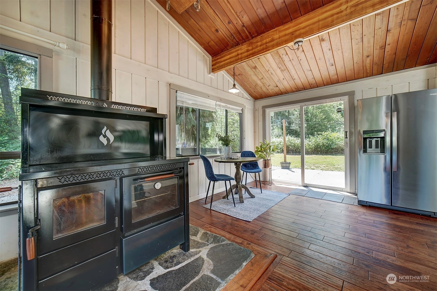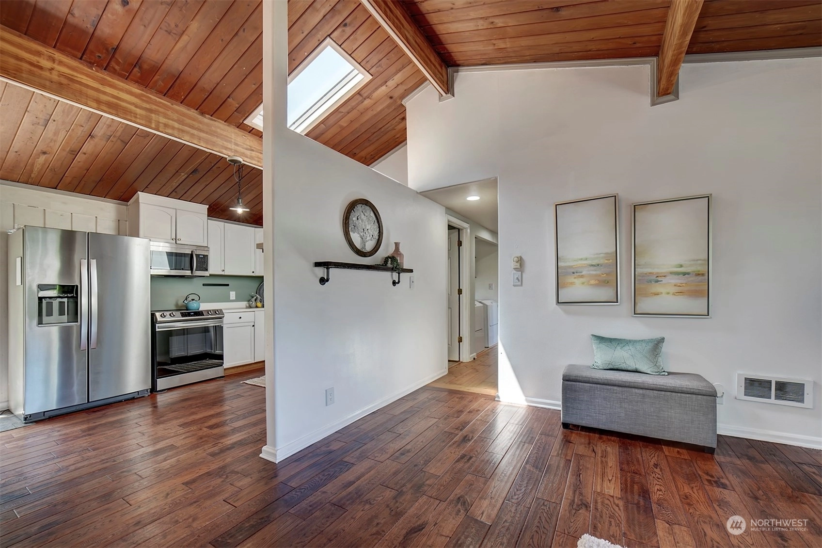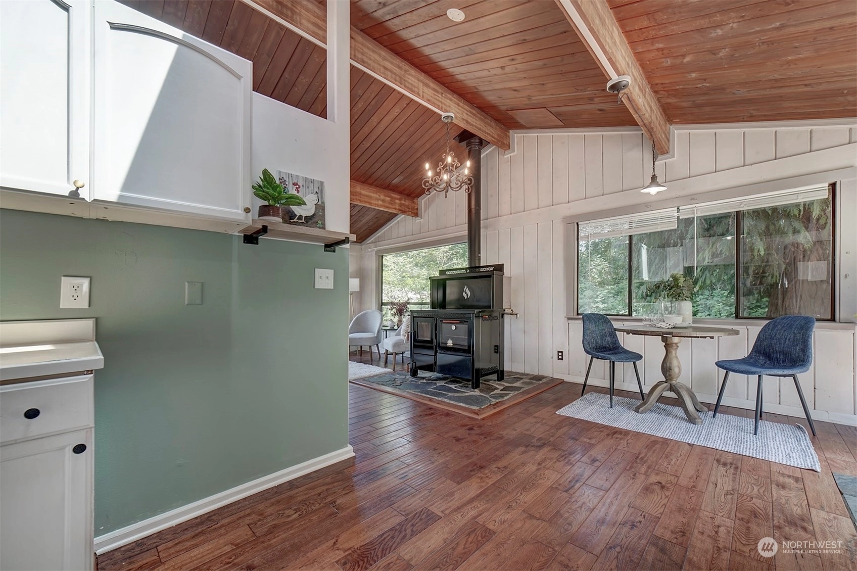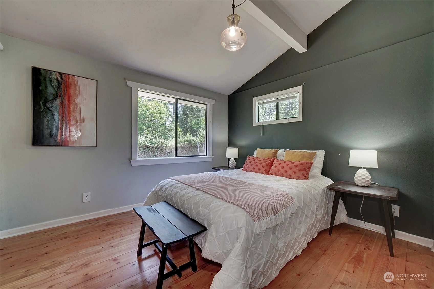 Fir/Softwood Hardwood Laminate Bath Off Primary Double Pane/Storm Window Skylight(s) Vaulted Ceiling(s) Fireplace Water Heater