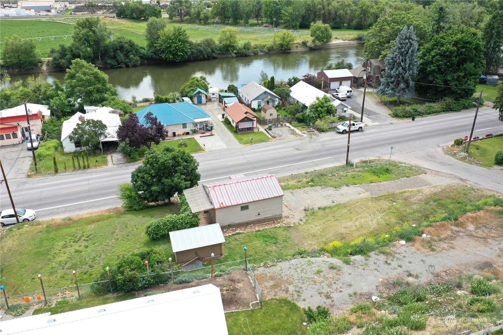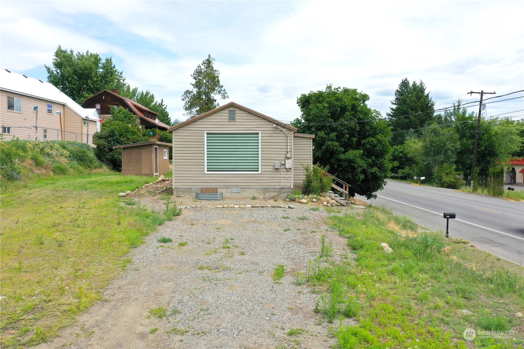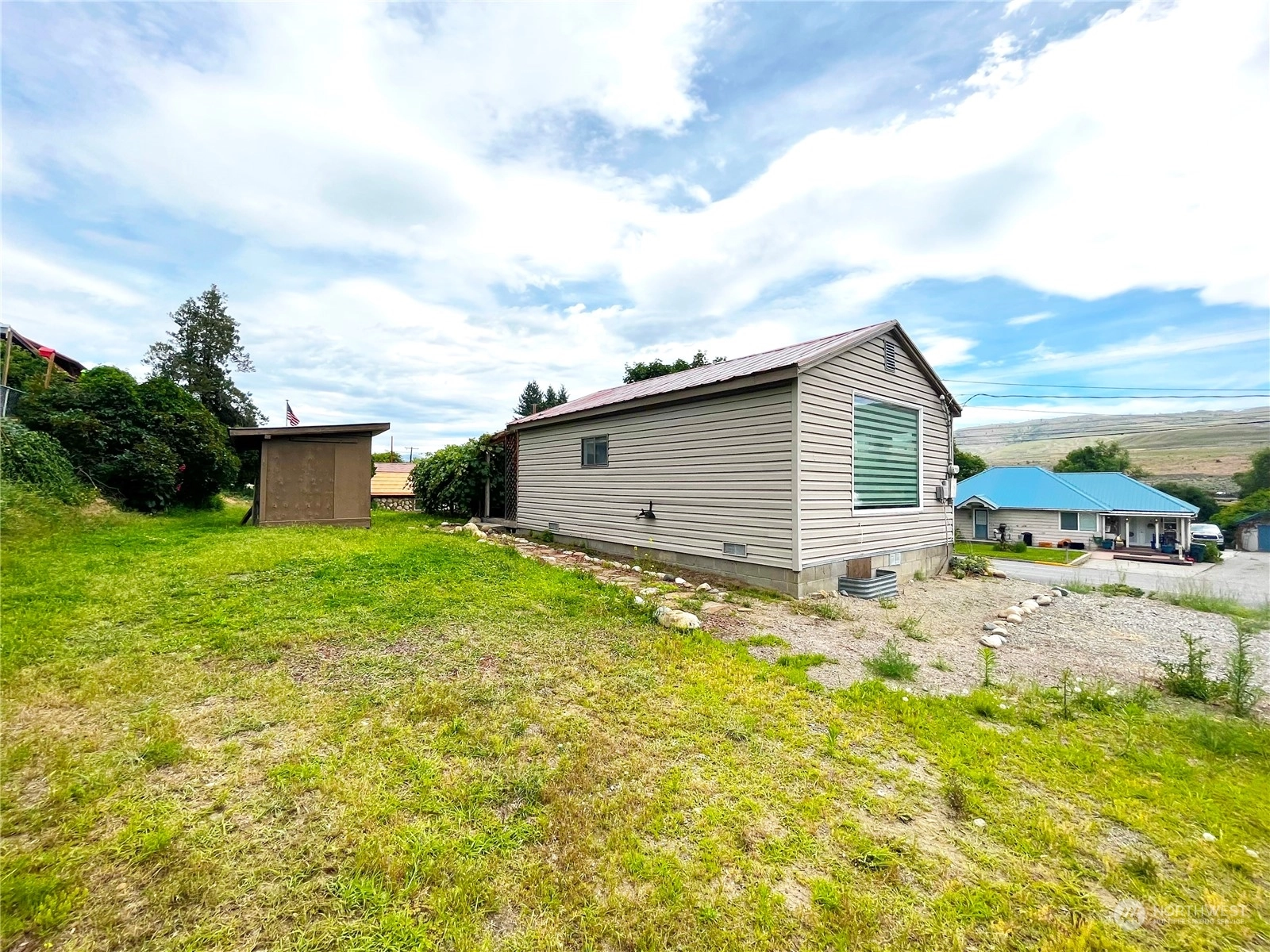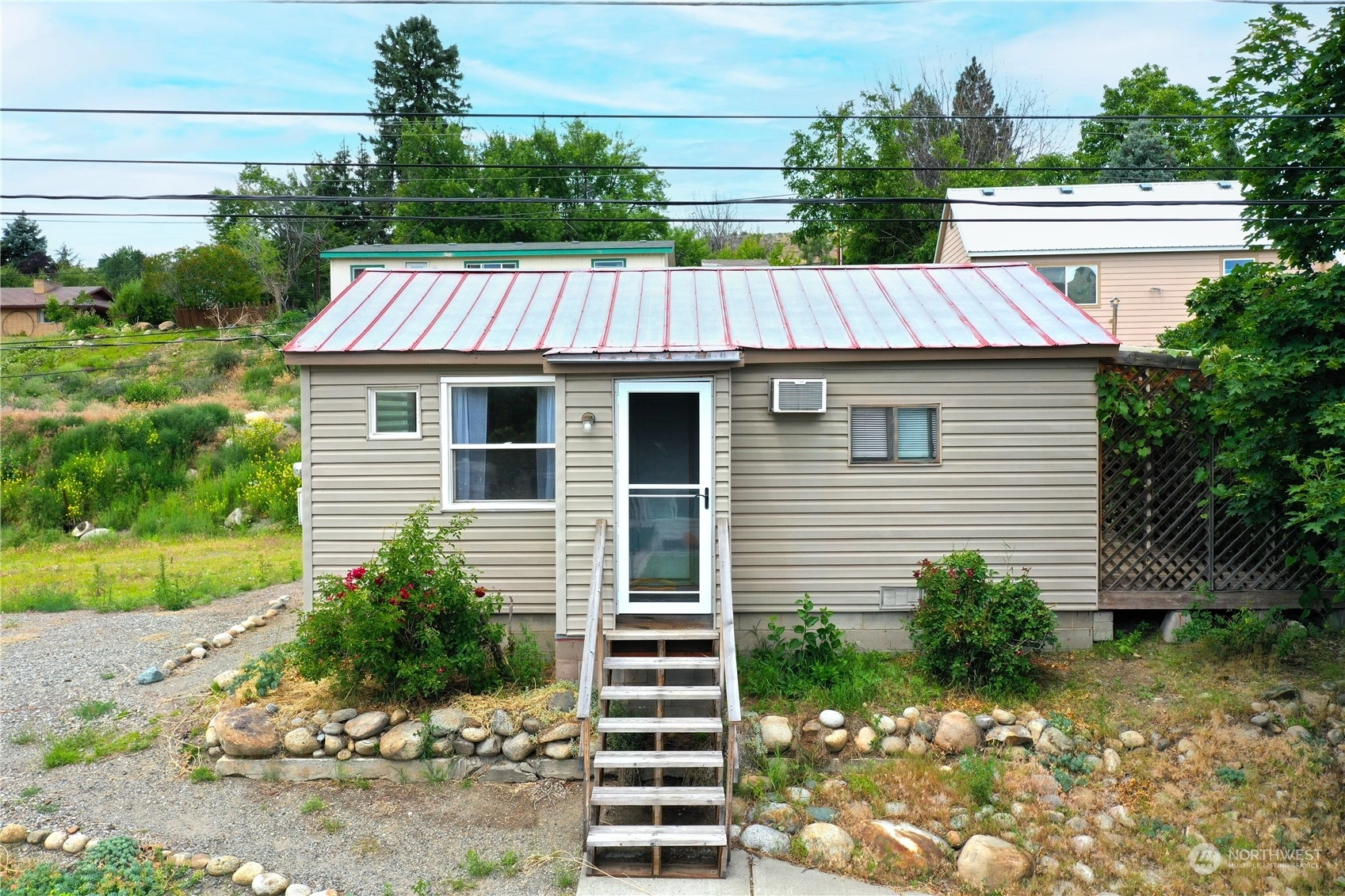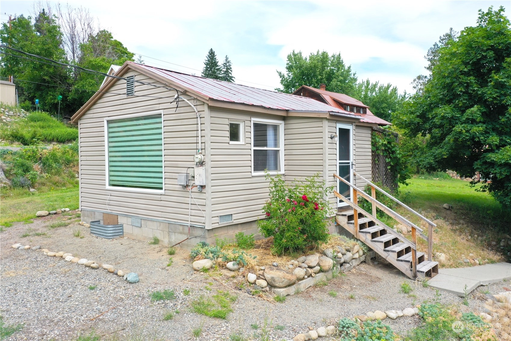 Cute 1 bed/1 bath home in the heart of Okanogan with views of the Okanogan River. This home is on a large sized lot with plenty of room to build a shop or garage. Great living room area with attached galley kitchen. Home has a full bath, bedroom with closet space and washer and dryer hookups. Very private porch area with well established concord grapes. Storage shed behind the home. Plenty of space for garden area and is connected to Alta Vista irrigation to keep it all green and lush. Whether you are looking to downsize, for a starter home, or just a great rental investment; this is the home for you!