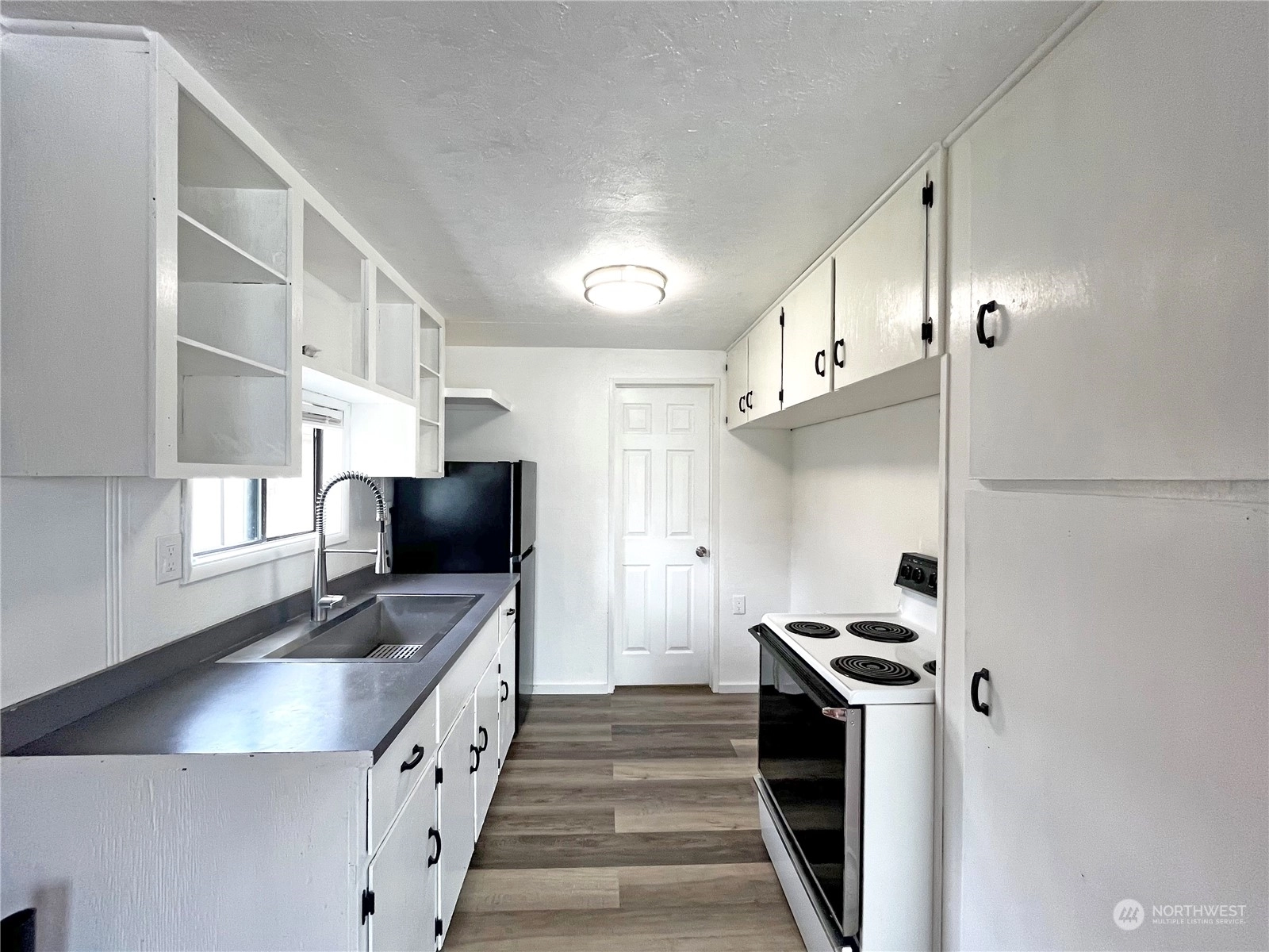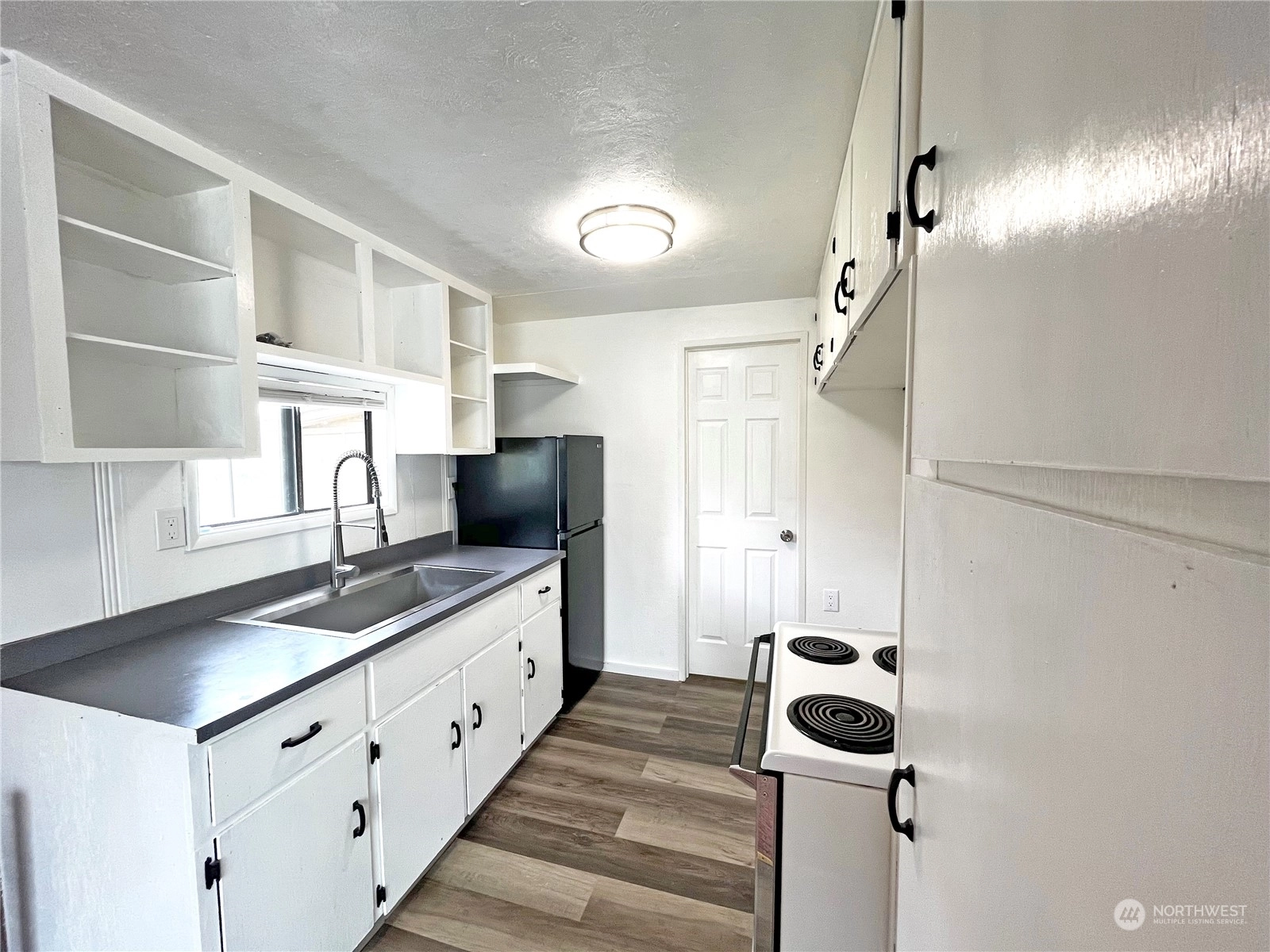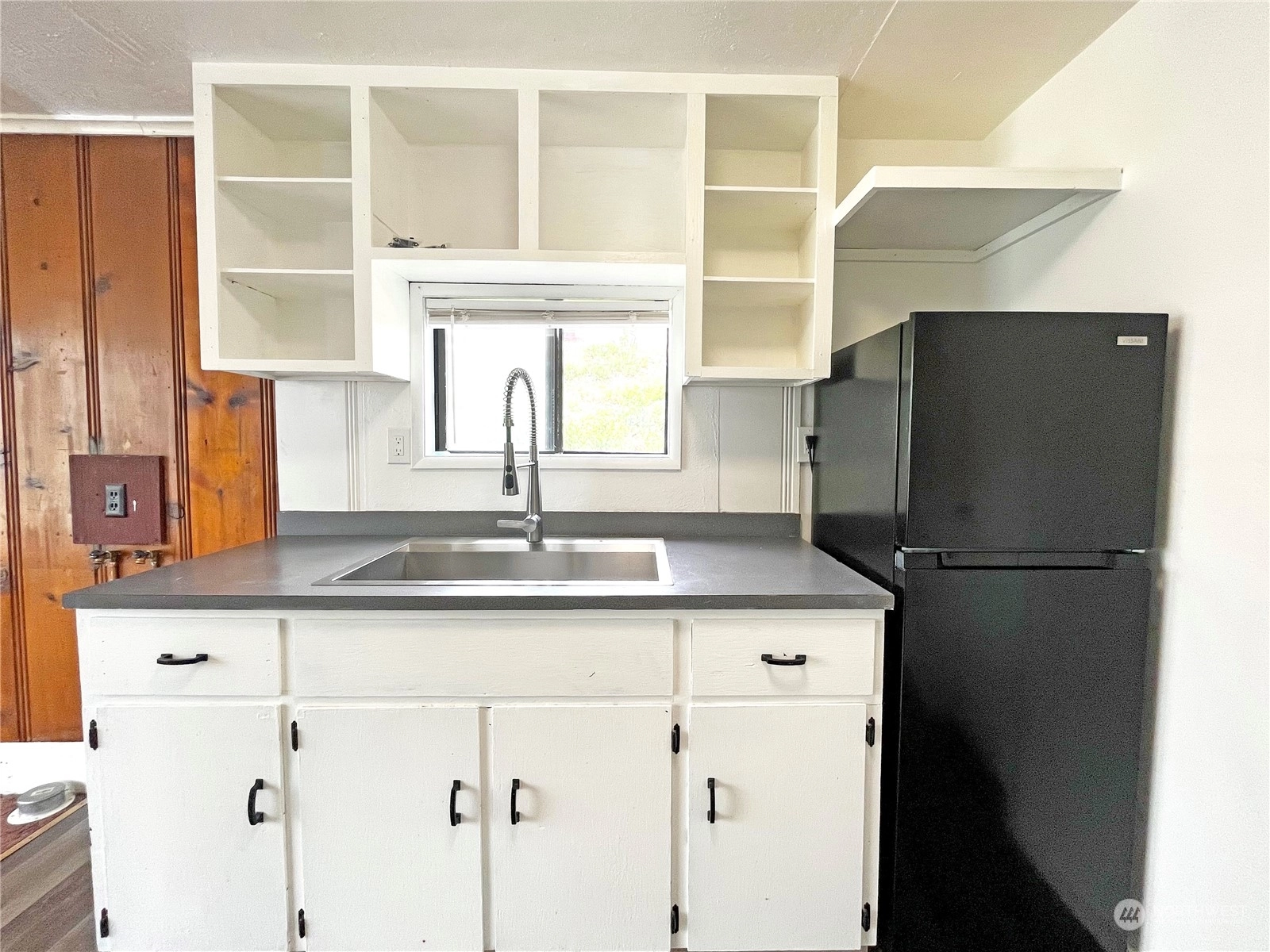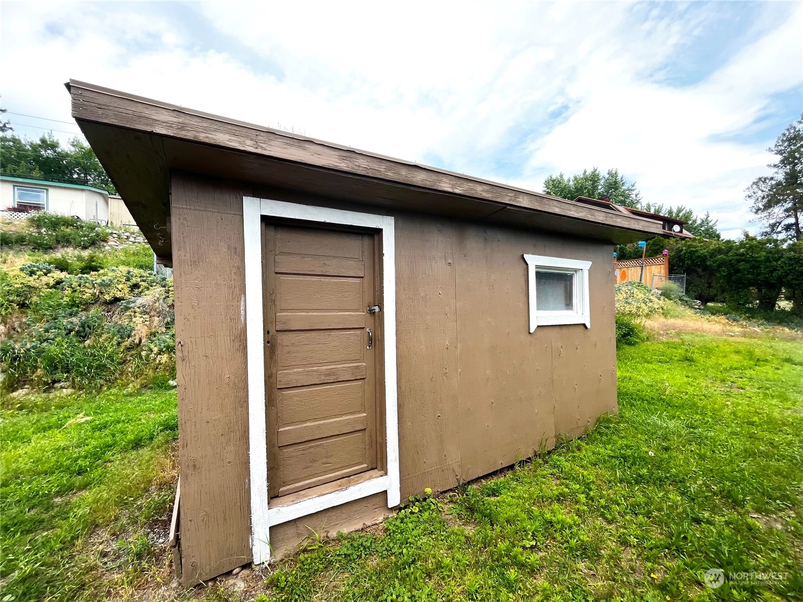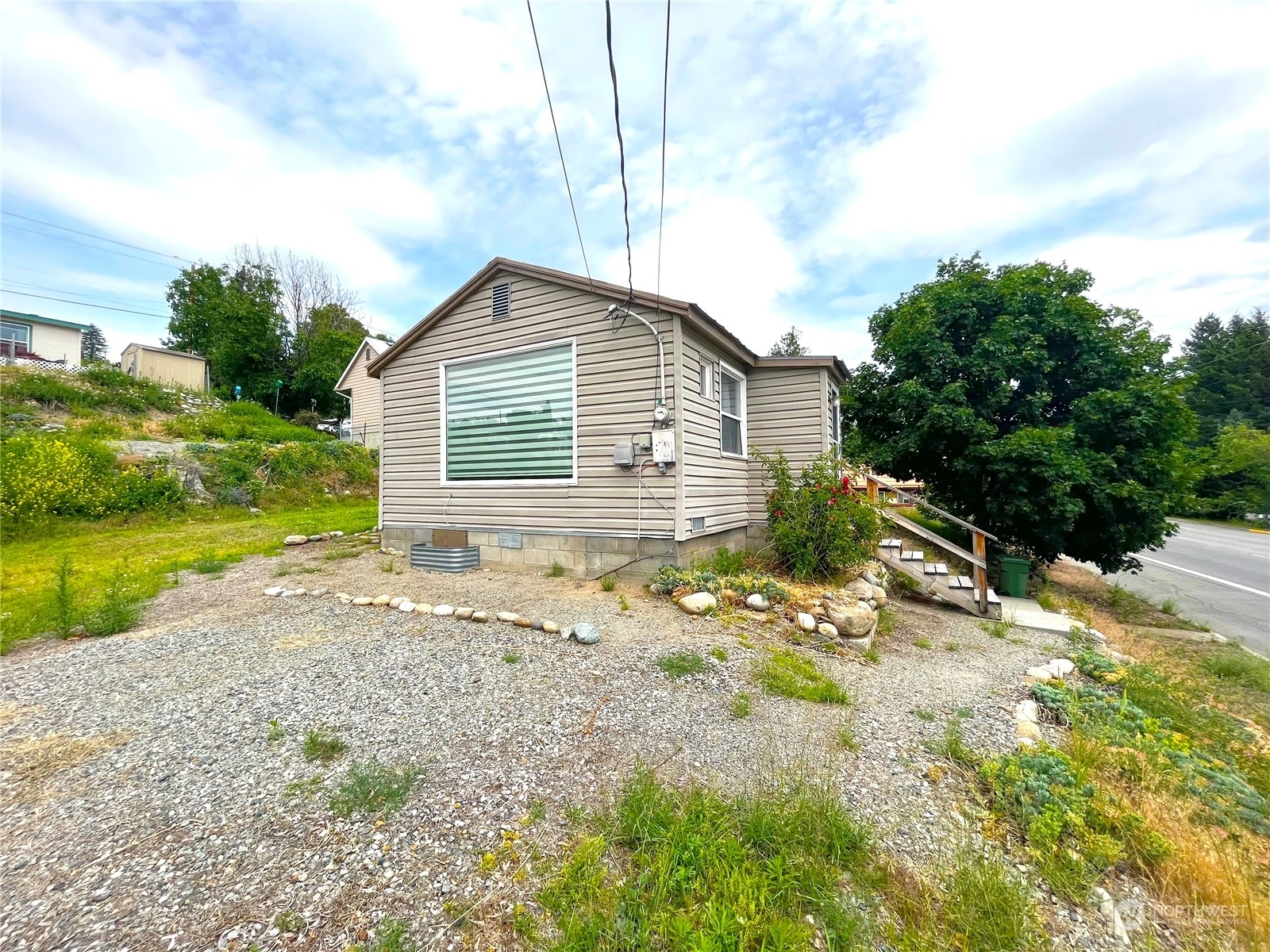 Cute 1 bed/1 bath home in the heart of Okanogan with views of the Okanogan River. This home is on a large sized lot with plenty of room to build a shop or garage. Great living room area with attached galley kitchen. Home has a full bath, bedroom with closet space and washer and dryer hookups. Very private porch area with well established concord grapes. Storage shed behind the home. Plenty of space for garden area and is connected to Alta Vista irrigation to keep it all green and lush. Whether you are looking to downsize, for a starter home, or just a great rental investment; this is the home for you!