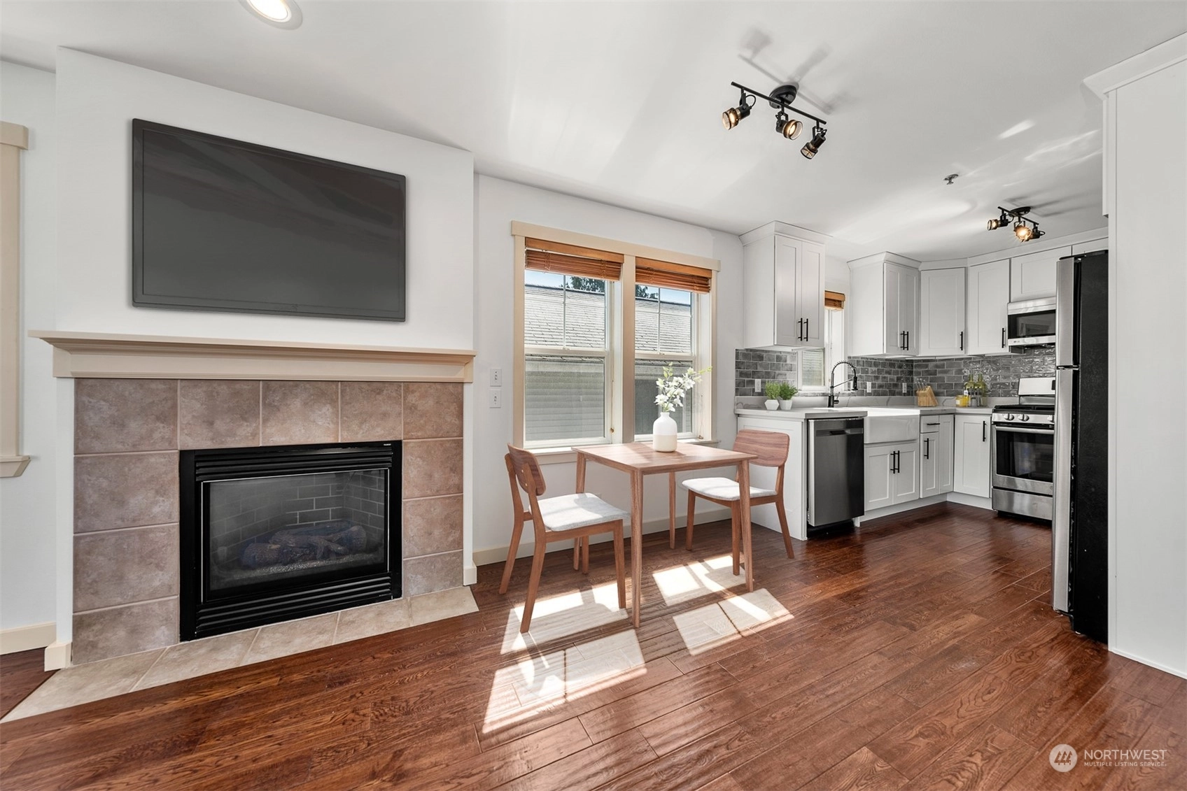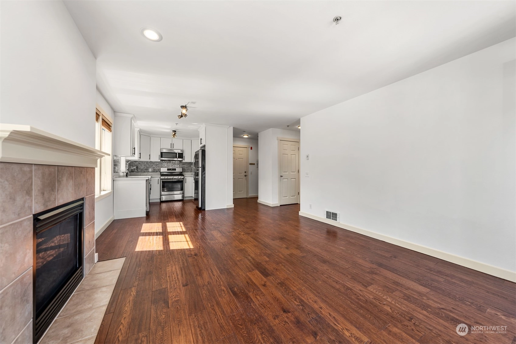 Imagine living just 2 blocks from the lake, minutes from the PCC, local restaurants, superb fitness centers & more. You will love living on the top floor of this recently updated unit. The kitchen was updated with fresh cabinets, stainless appliances, farm sink, quartz countertop and subway tiles. This 2 bedroom unit has been freshly painted. Garage parking, in-unit washer/dryer, gas fireplace, gas range/stove makes this an exceptional home. In November, 2022 the building completed a project that included improvements to the exterior siding, decks were rebuilt and remodeled as well as the exterior staircase to the front door. The Patio allows for BBQ & gardening. Light Rail & bus routes nearby. Photos include virtual staging.
