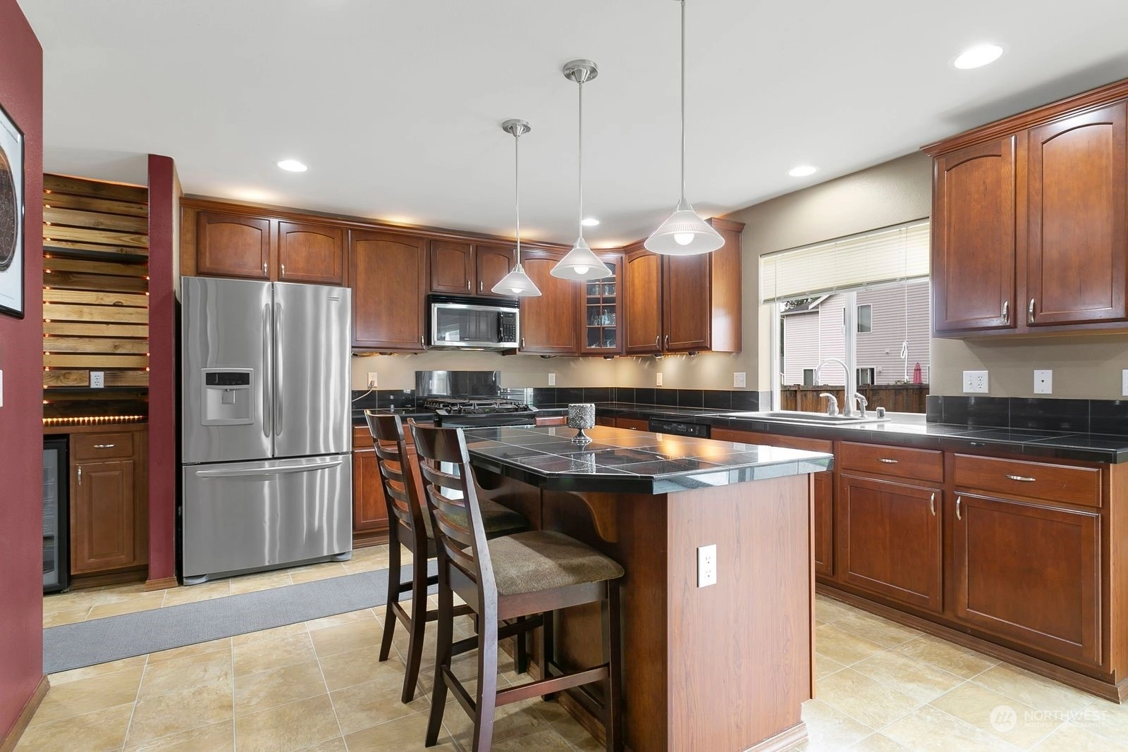 Mountain views! 4 bedrooms & 2.5 bathrooms, this home offers plenty of space. The eat-in kitchen has stainless-steel appliances (w/ extra beverage fridge) & access to fully fenced back yard. The kitchen flows directly into the cozy family room to enjoy the gas fireplace. The 4 bedrooms & large laundry room are located upstairs along w/ a bonus loft (great for a movie area). 2 of the bedrooms & upper bathroom have new flooring. The primary bedroom has a double vanity w/ a relaxing corner soaking tub & walk-in closet. This property has RV parking on the side & large cement patio w/ gas fire pit for entertaining. Walking distance to town & river for salmon fishing! Golf course w/I 1 mile, HOA provided events & community park across the street!