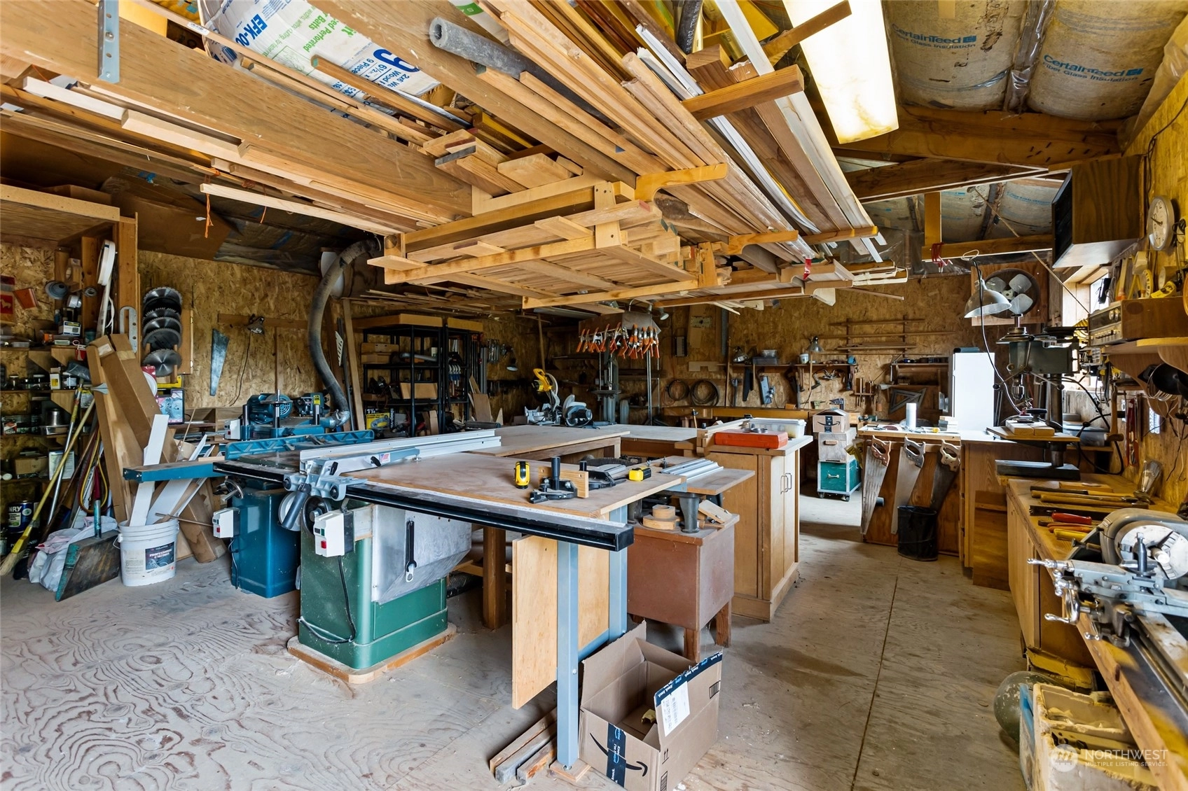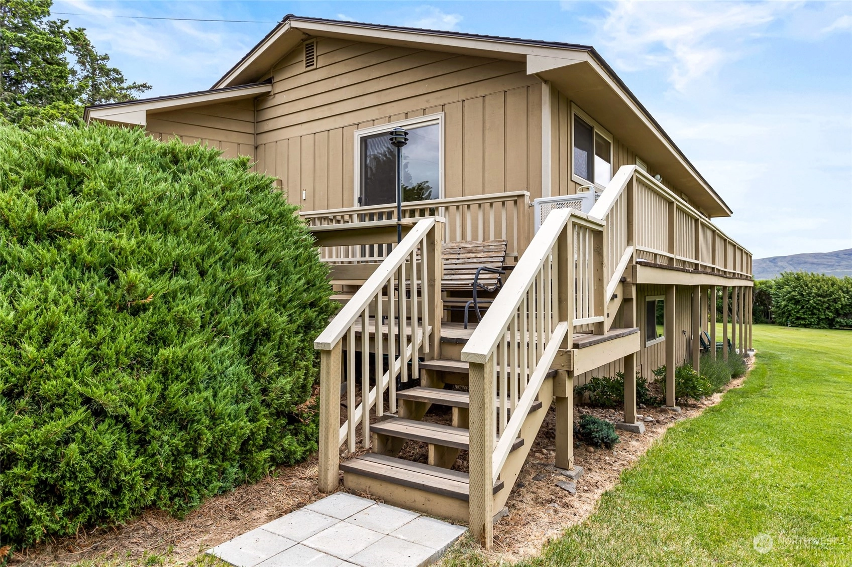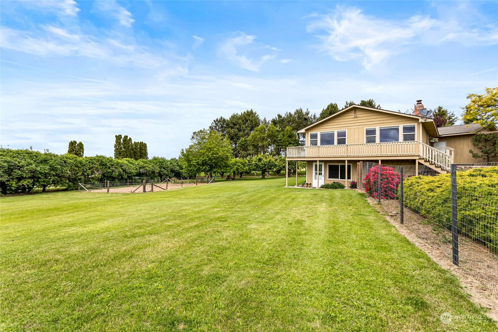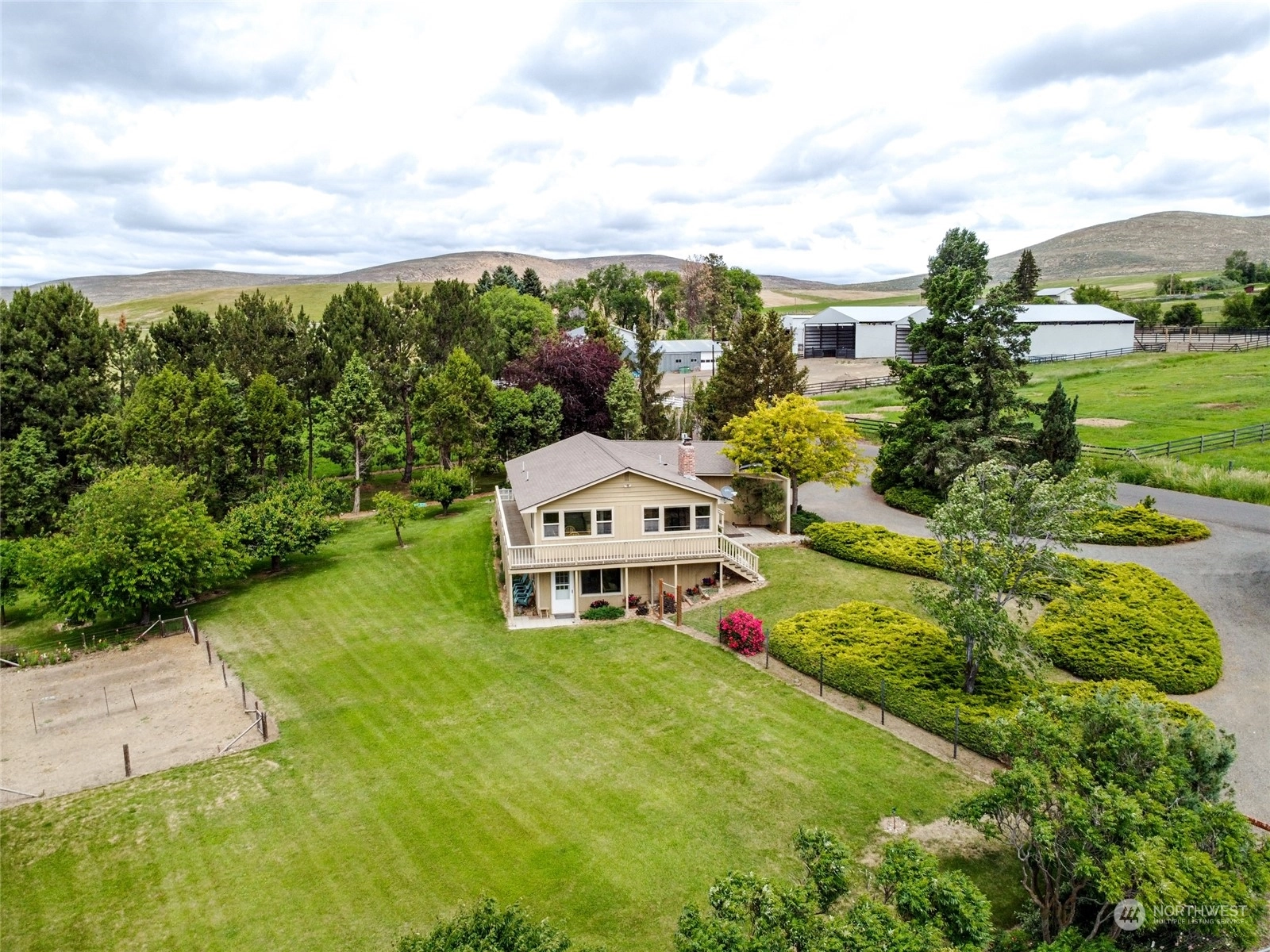 Welcome to Badger Pocket! Set on over seven acres, this home lives like a rambler with room to spare! Meticulous maintenance can be seen throughout and wall to wall windows show off the views this property as to offer - including MT. Rainier! The living room flows into the dining room and kitchen, both with focus on the sprawling views. Down the hall is the utility room, bedroom with deck access and well appointed bathroom. Downstairs is a huge rec room, two more bedrooms, storage room, and a bathroom. Outside enjoy the wrap around deck, and fully fenced backyard. The shop is a woodworkers dream, with space to spare and a barn ready for your animals! Fruit trees, fenced garden space, and alfalfa fields - nothing to do but move in and enjoy!