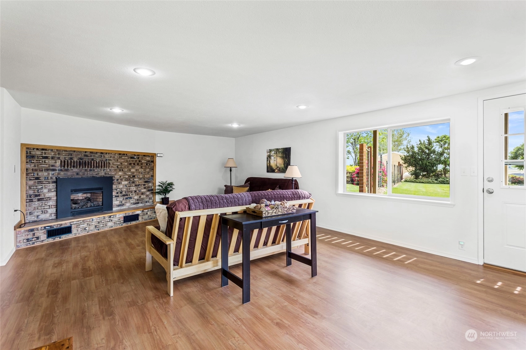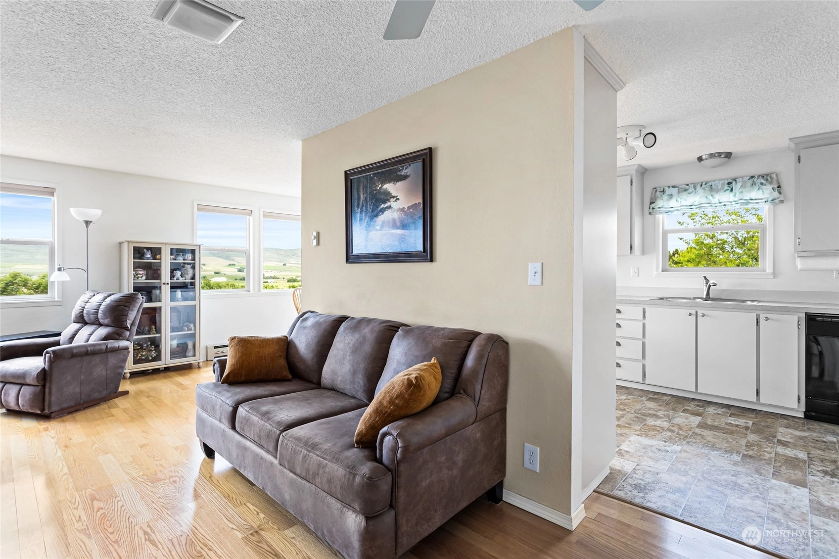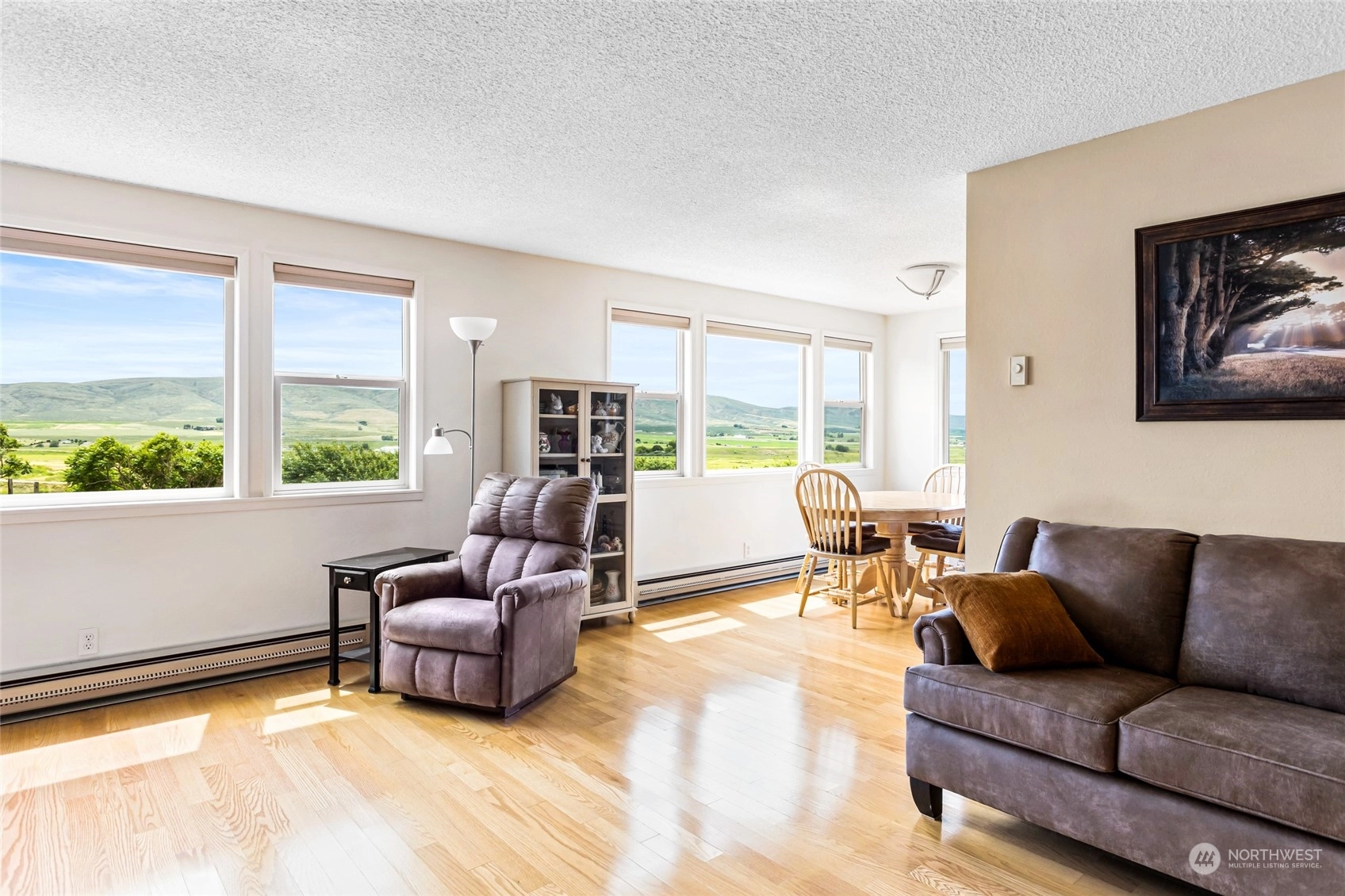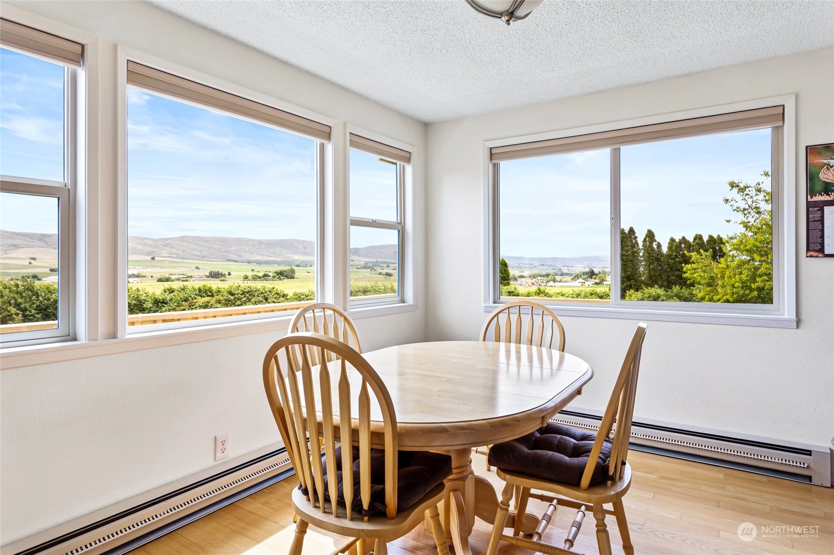 Welcome to Badger Pocket! Set on over seven acres, this home lives like a rambler with room to spare! Meticulous maintenance can be seen throughout and wall to wall windows show off the views this property as to offer - including MT. Rainier! The living room flows into the dining room and kitchen, both with focus on the sprawling views. Down the hall is the utility room, bedroom with deck access and well appointed bathroom. Downstairs is a huge rec room, two more bedrooms, storage room, and a bathroom. Outside enjoy the wrap around deck, and fully fenced backyard. The shop is a woodworkers dream, with space to spare and a barn ready for your animals! Fruit trees, fenced garden space, and alfalfa fields - nothing to do but move in and enjoy!