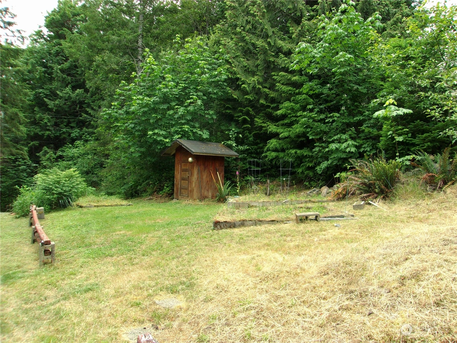 1 Bedroom 1 Bath Cabin, or small home on 5 acres just South of the Duckabush River. 24x24 Garage and a storage shed on the back area of the property. This acreage is part of a large rock cropping, which if you go to the top, you have views of the water and mountain which would be ideal for a lookout gazebo. Property has nice mixture of woods for privacy.