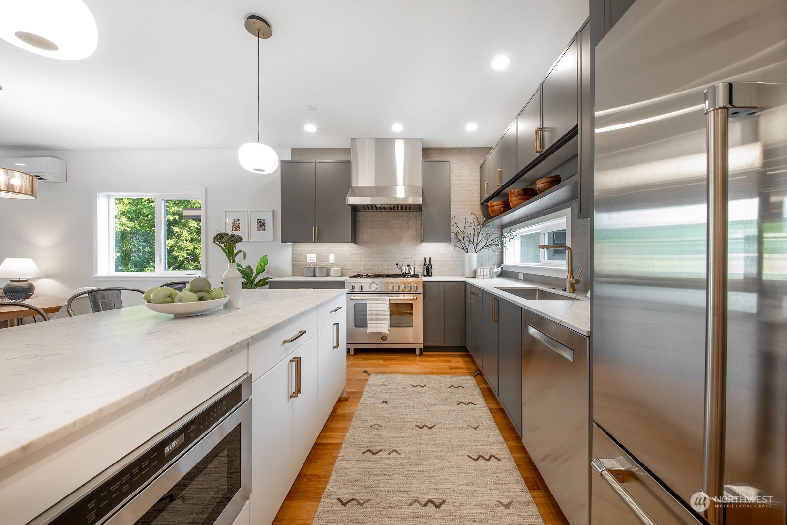 Welcome to these elegant, sharp, new construction townhomes incredibly located in downtown Fremont. Offering a brilliant design, exquisite finishes, & superior craftsmanship. Spacious open-concept living & dining area with tall ceilings & large windows for an abundance of natural light. Chef's kitchen w/marble countertops, & high-end stainless steal appliances w/Bertazzoni gas range/oven. Top floor entertainment room or master suite w/private deck. With spacious 1 car garage. This location is perfection; nestled in the heart of one of Seattle's most unique neighborhoods, steps away from great restaurants, cafes, & nightlife; a stones through from the beautiful Fremont Canal, Burke-Gilman Trail, & PCC Natural Market, you’ll love living here!