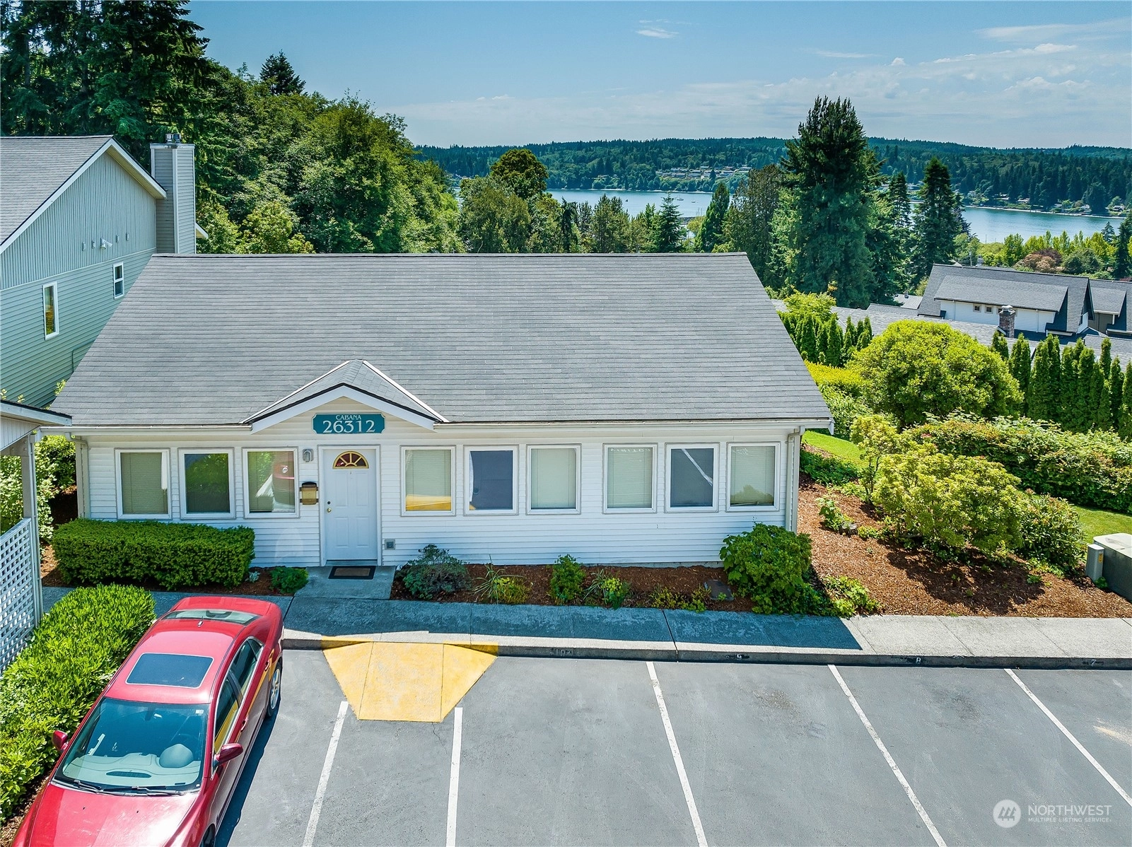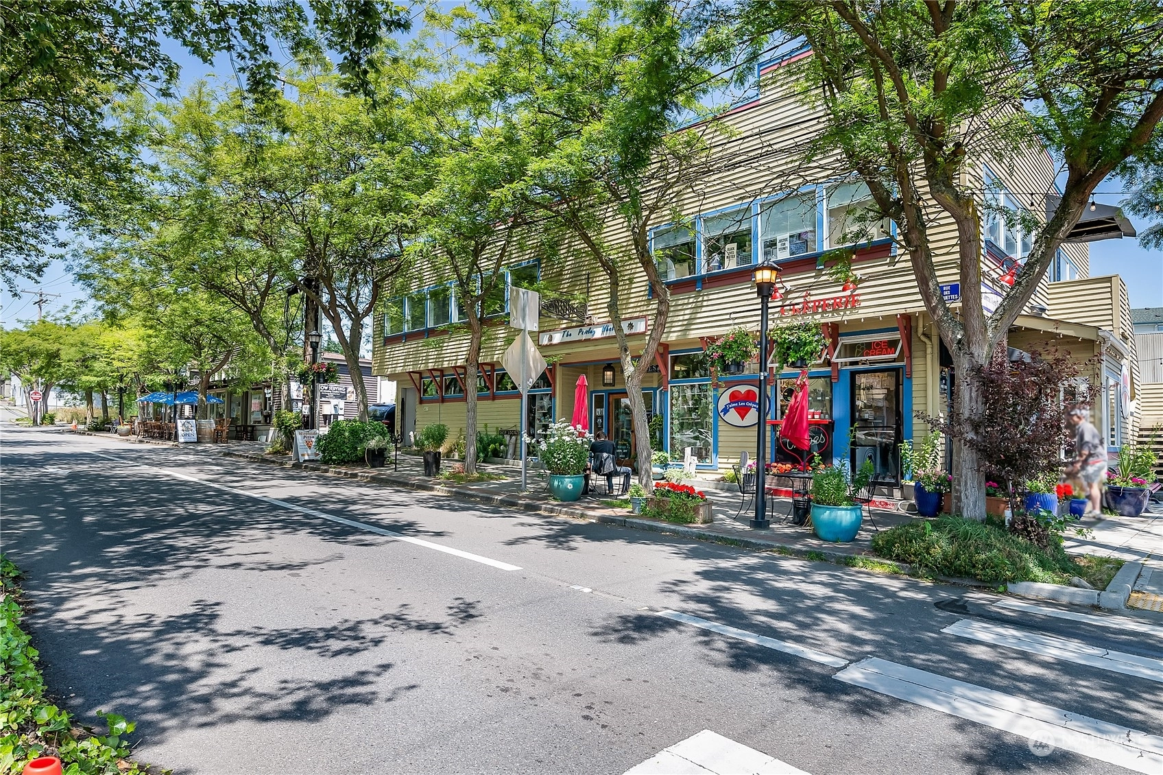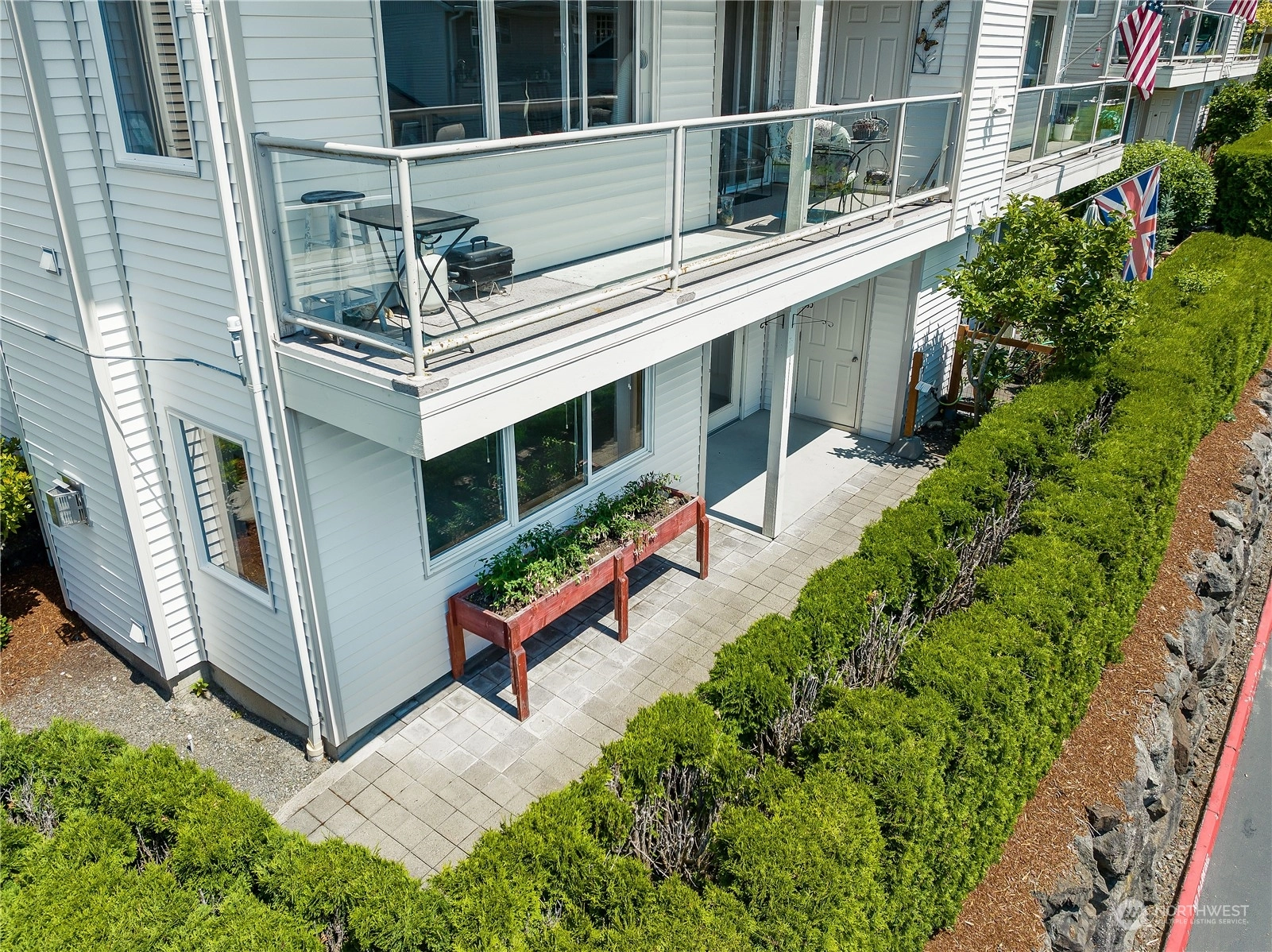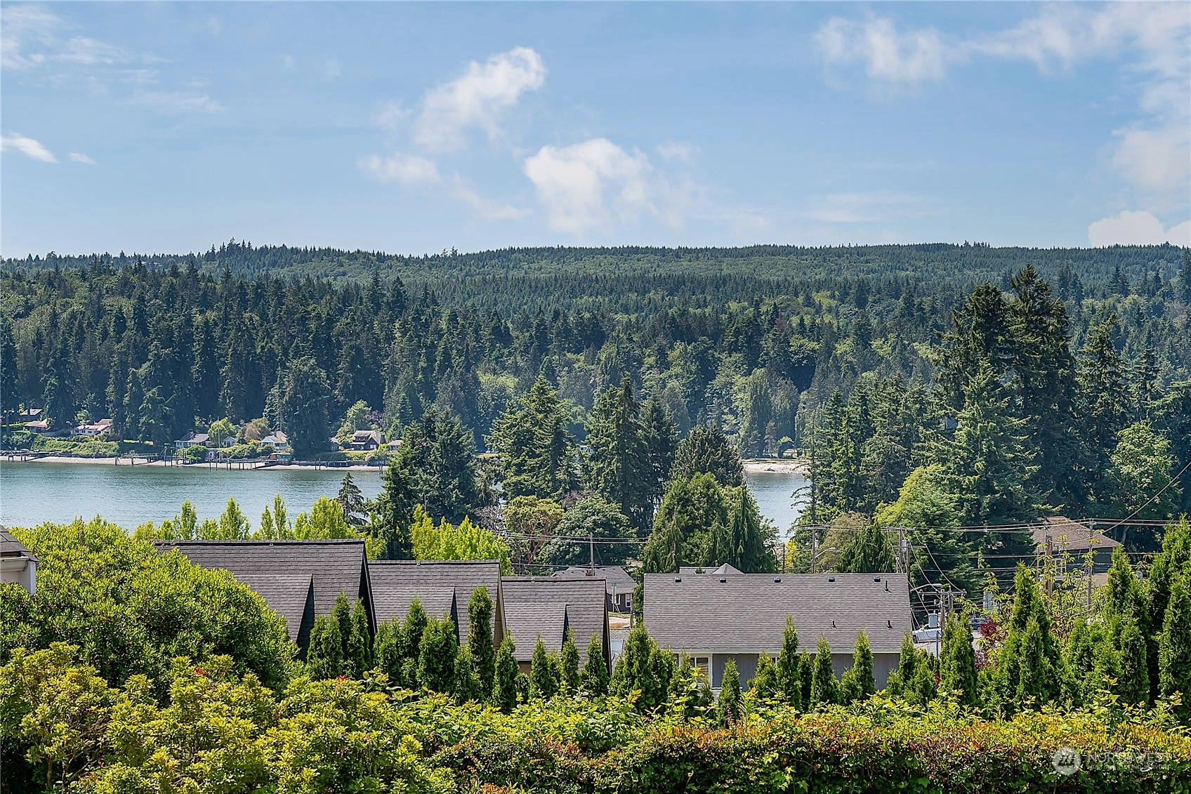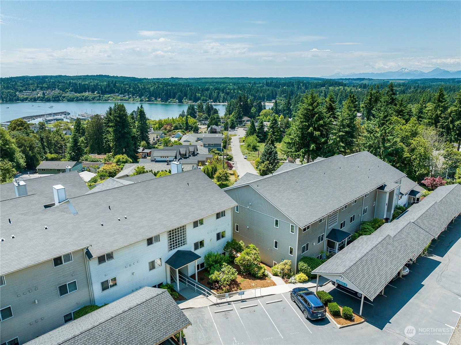 Welcome home! Fantastic, move-in ready, 2 bedroom, view condo in "downtown" Kingston awaits. This ground floor, end-unit has lovely outlooks from main living space boasting partial views of Apple Tree Cove, Olympic Mts, and expansive & territorial views of mature evergreen trees. Spacious & bright LR w/a wall of south facing windows overlooking patio makes this the perfect place to hang out. Enjoy the propane fireplace which is paid by HOA. Primary bdrm offers large walk-in closet that connects to Jack/Jill style bathroom. For those who want a condo, but still want to garden, this is it -garden box outside the LR gives you that space! With downtown Kingston nearby, shops/eateries + high speed ferry to Seattle makes this an ideal location.
