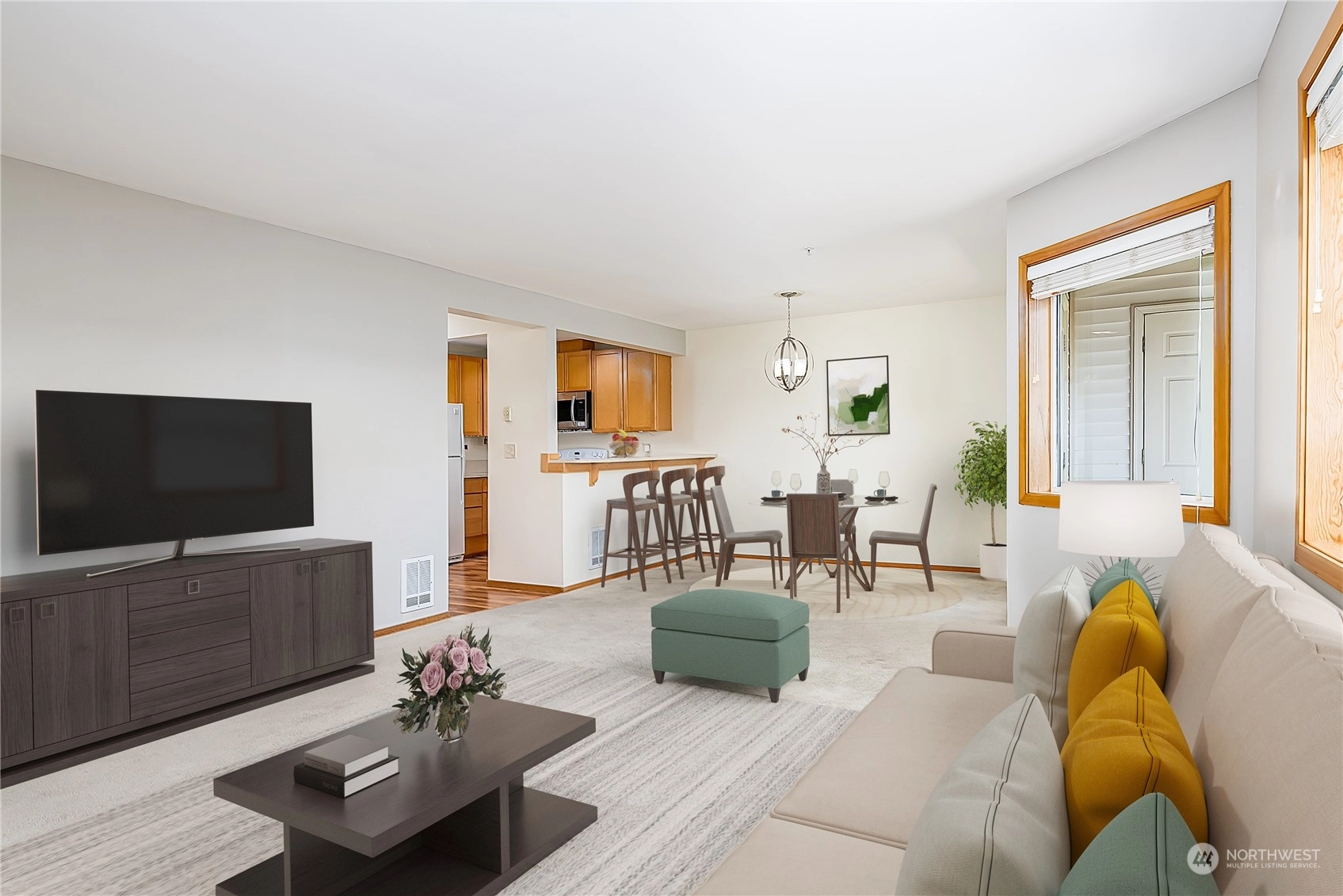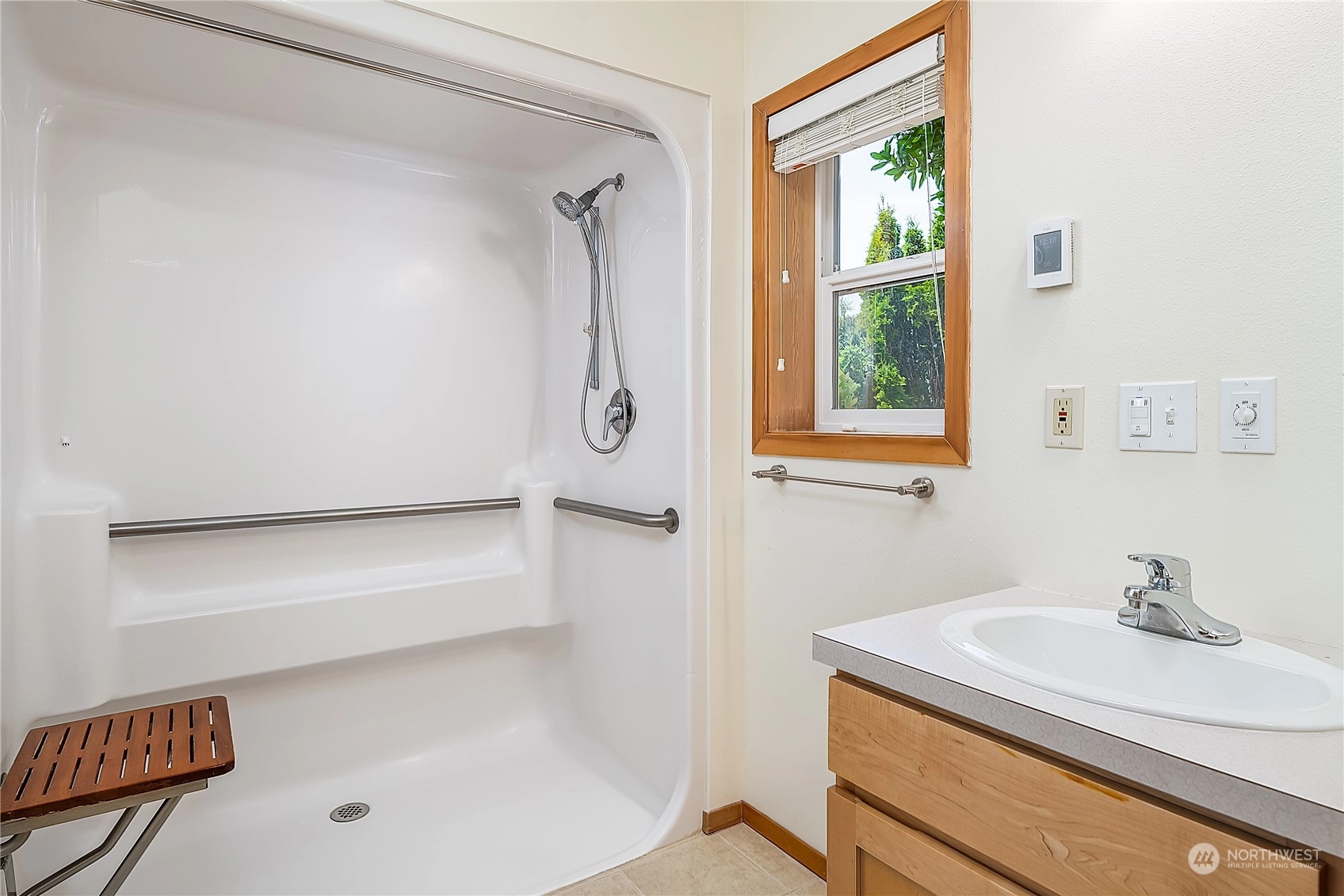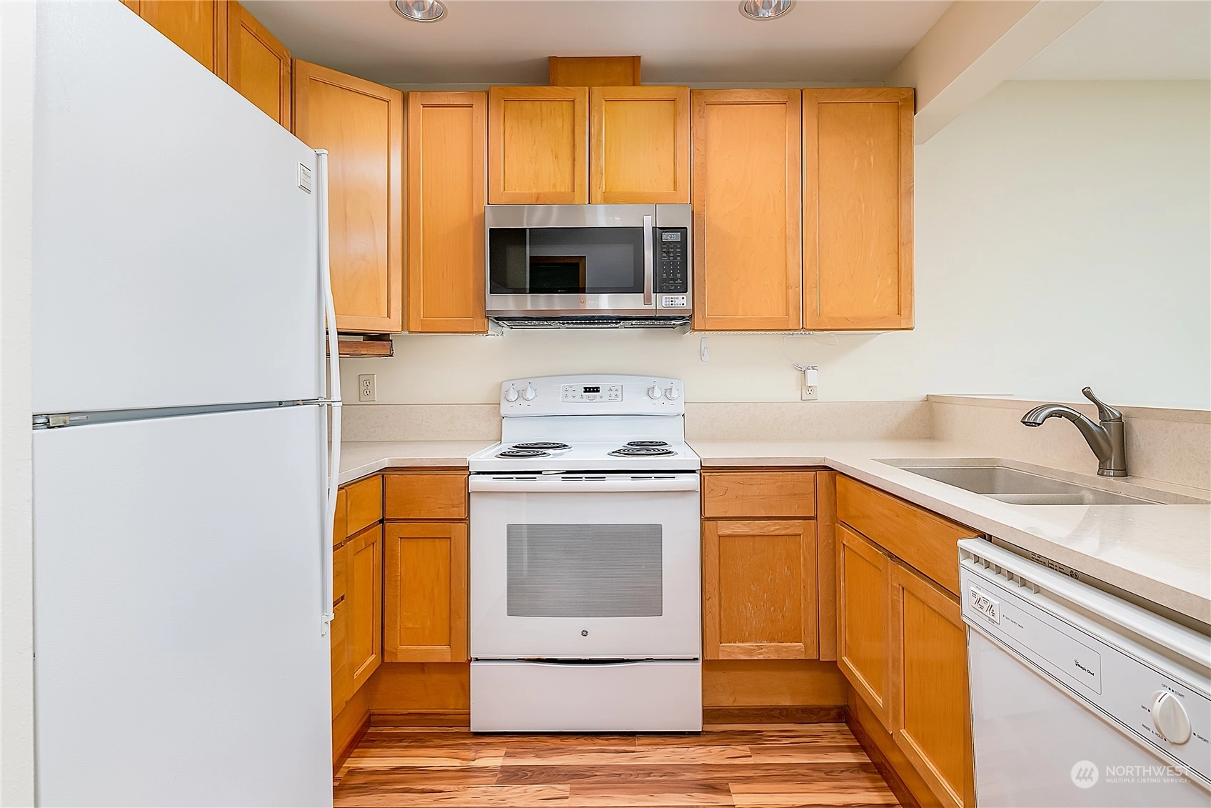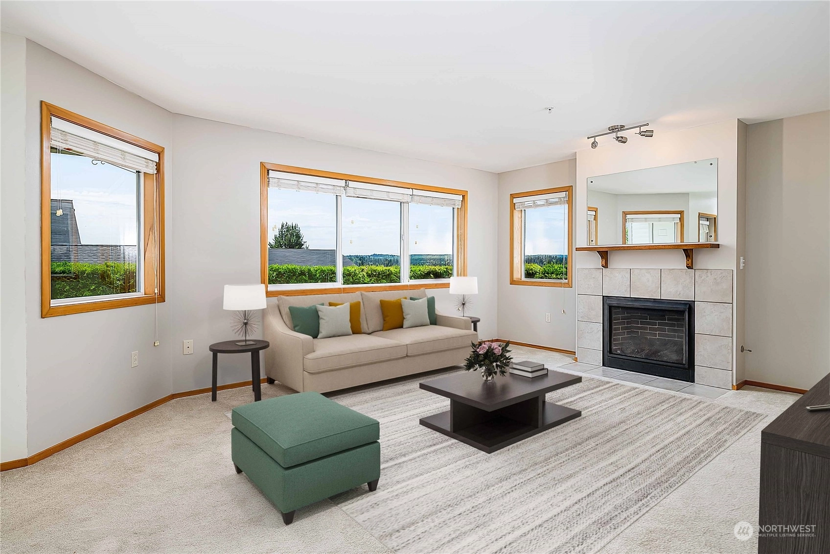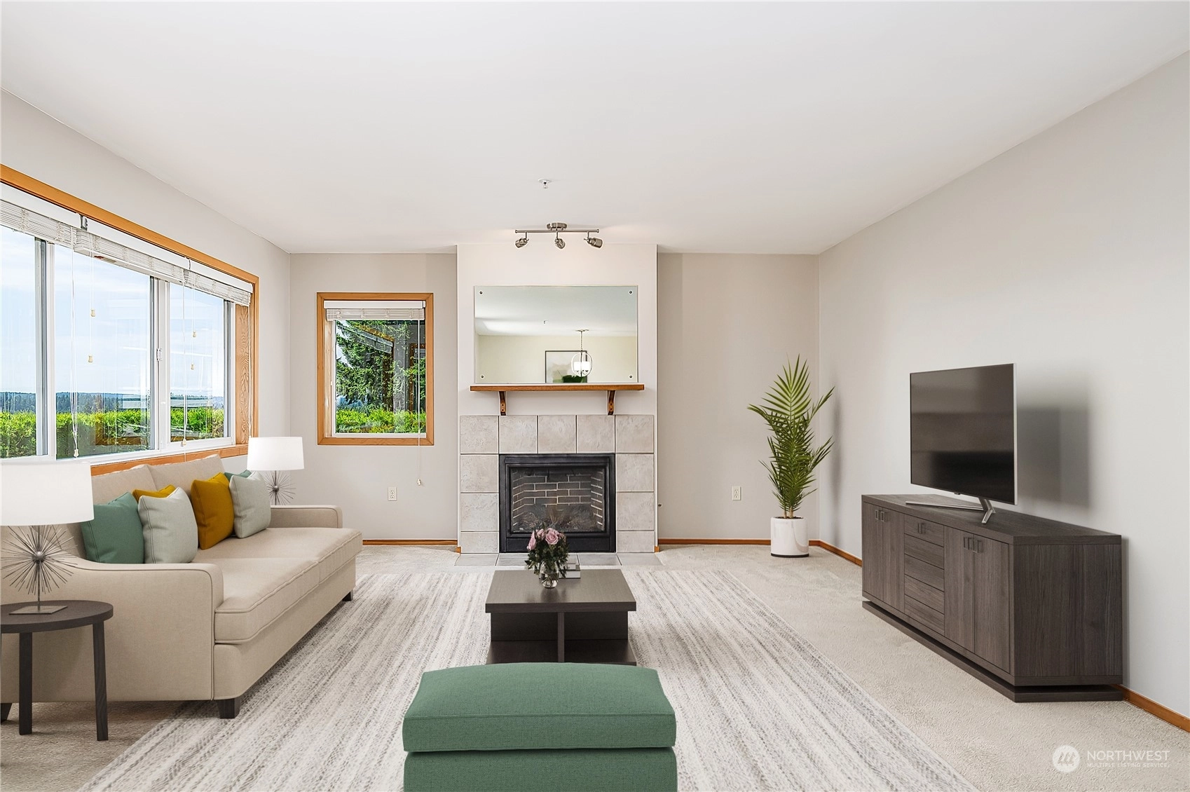 Welcome home! Fantastic, move-in ready, 2 bedroom, view condo in "downtown" Kingston awaits. This ground floor, end-unit has lovely outlooks from main living space boasting partial views of Apple Tree Cove, Olympic Mts, and expansive & territorial views of mature evergreen trees. Spacious & bright LR w/a wall of south facing windows overlooking patio makes this the perfect place to hang out. Enjoy the propane fireplace which is paid by HOA. Primary bdrm offers large walk-in closet that connects to Jack/Jill style bathroom. For those who want a condo, but still want to garden, this is it -garden box outside the LR gives you that space! With downtown Kingston nearby, shops/eateries + high speed ferry to Seattle makes this an ideal location.