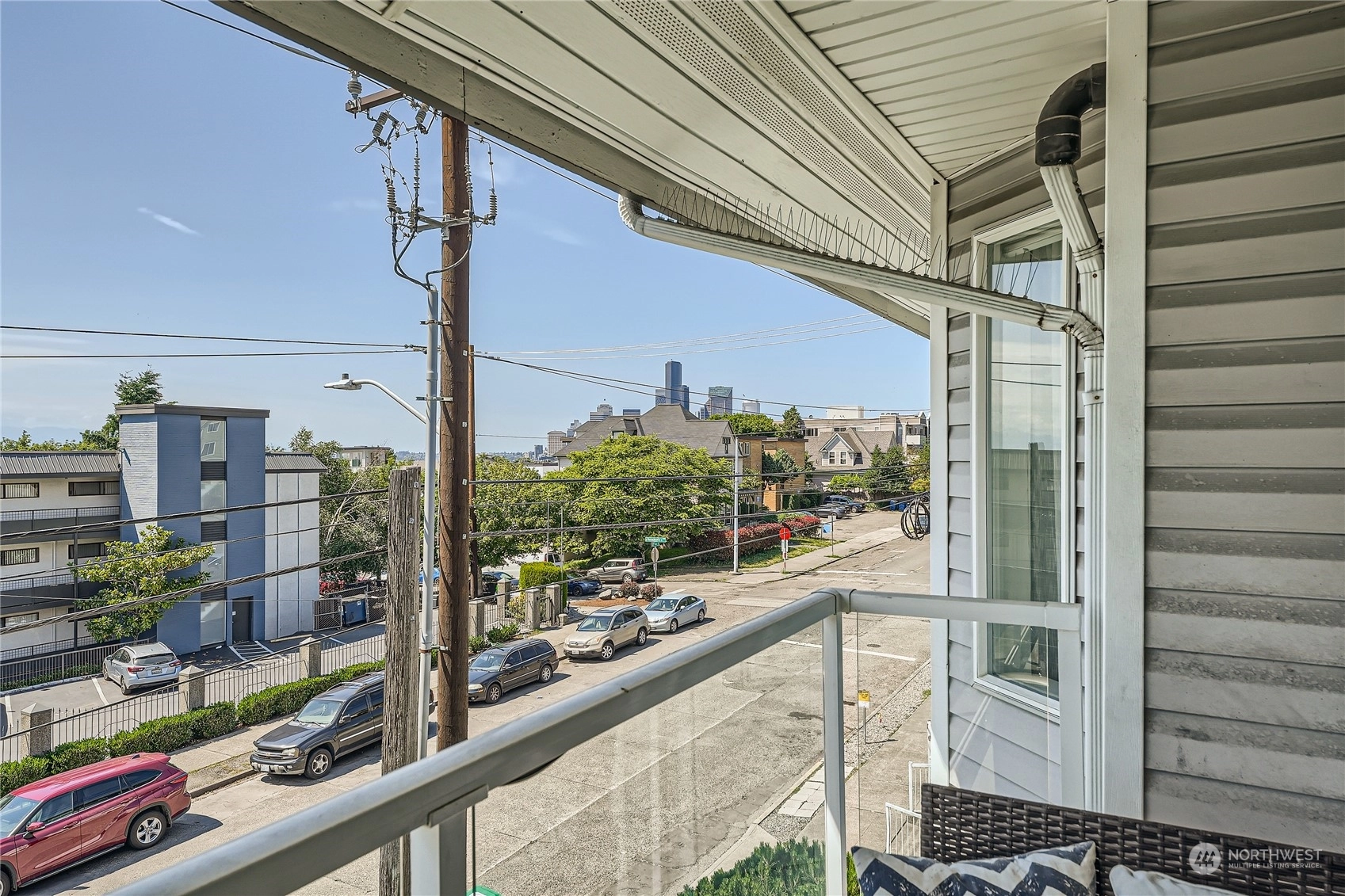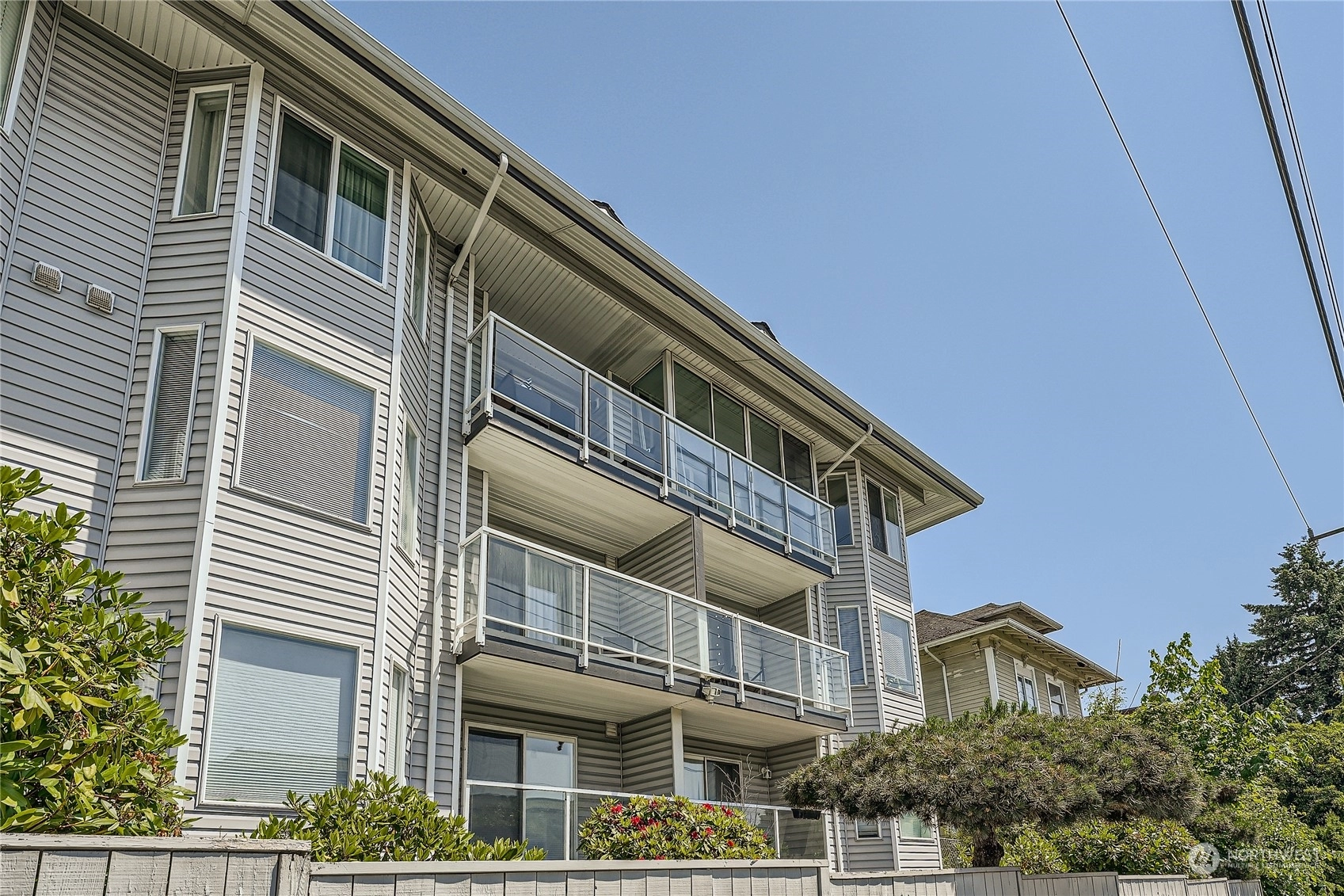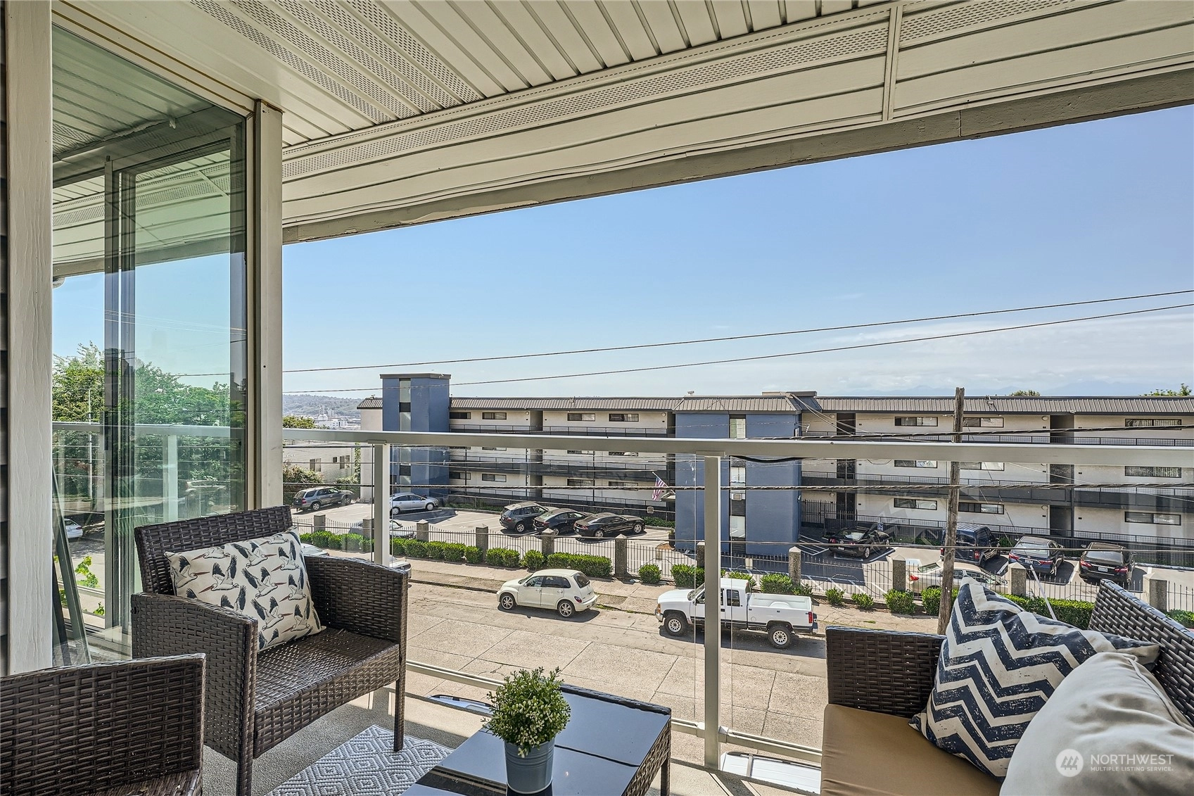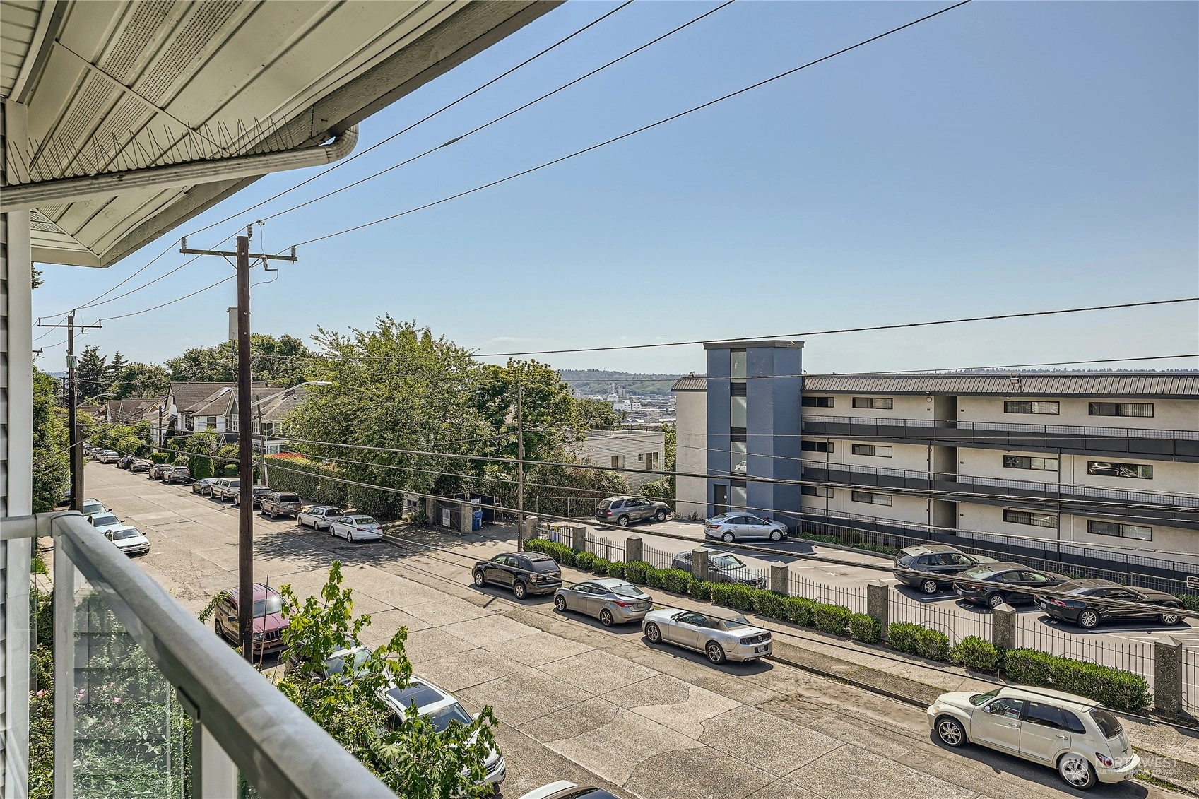 Large natural light filled top floor corner unit with westerly views of City, Olympics & Territorial. Nice size spaces thru-out. Primary bedroom with 3/4 bath & access to deck. Den/Office could easily be another bedroom if needed or TV room. Spacious living/dining area includes gas fireplace. Full size side by side washer dryer, sprinkler system & two view decks (one can be enclosed). Full bath has jetted tub. Two large car garage spaces covered & secure a big plus. Quick easy access all within 5/10 minutes via bus route 36 or 60 (at the corner) to downtown Seattle, international district, stadiums, first & capitol hill plus freeway to all points. Rare to find a unit with this amount of square feet in this price range. Worth a look.