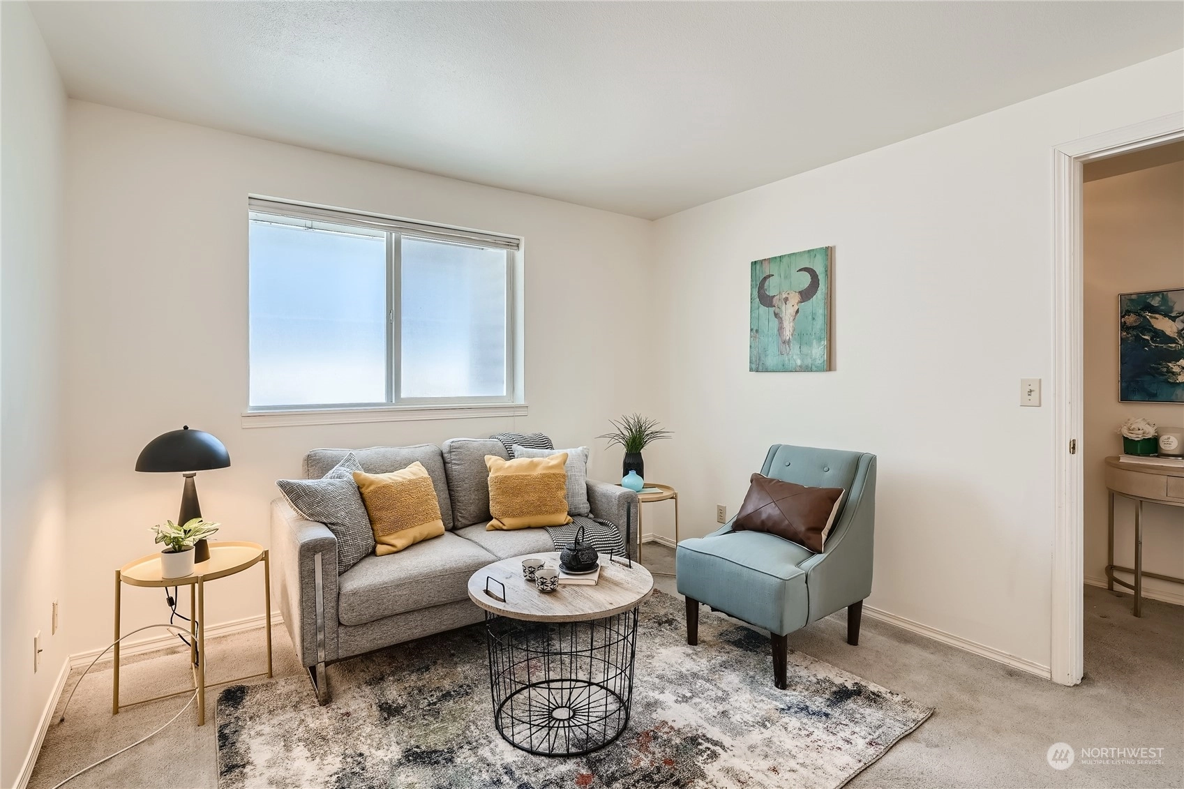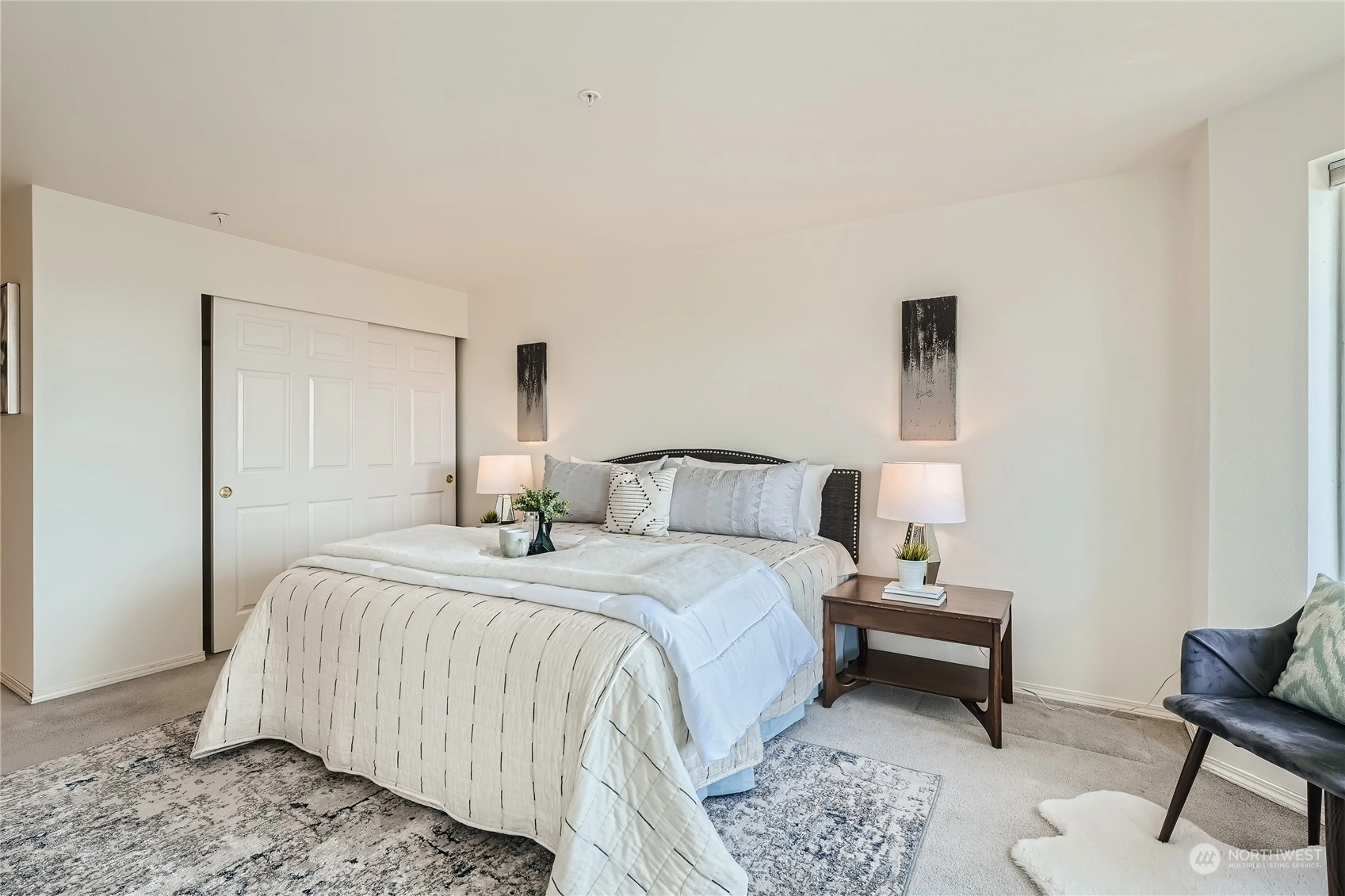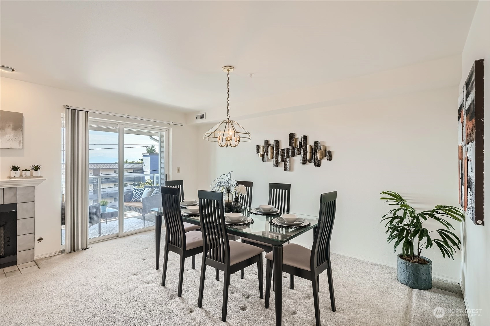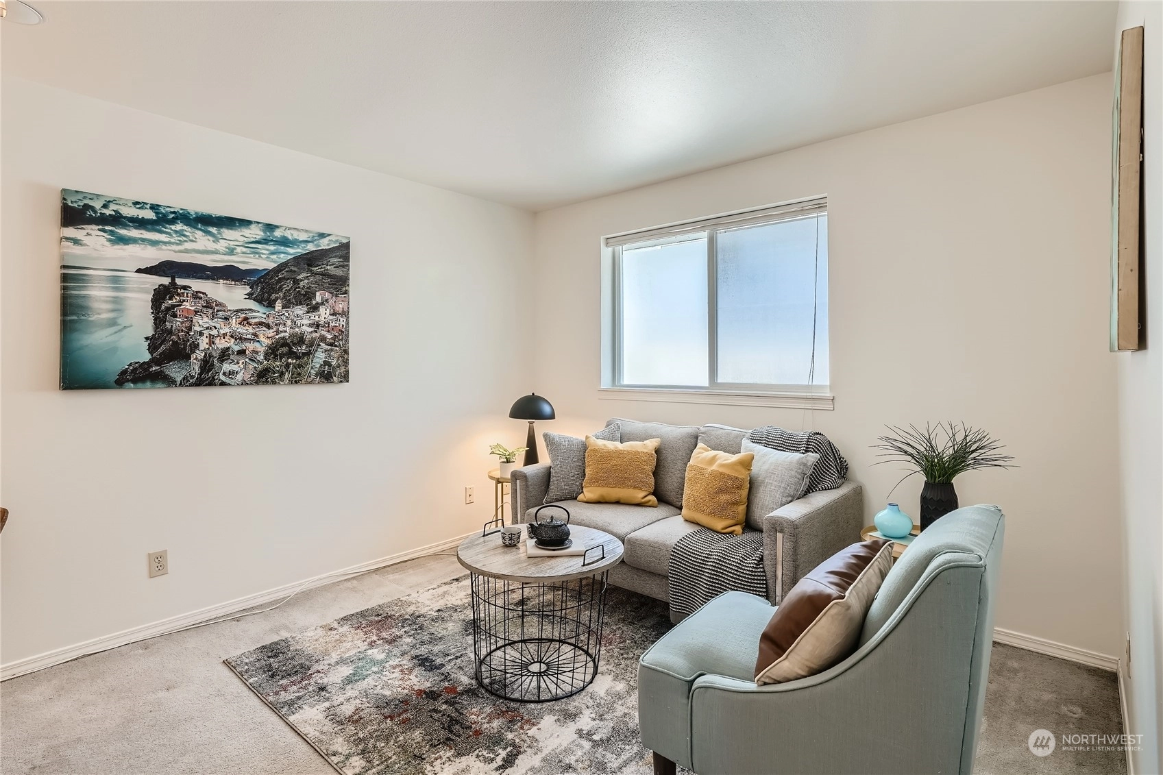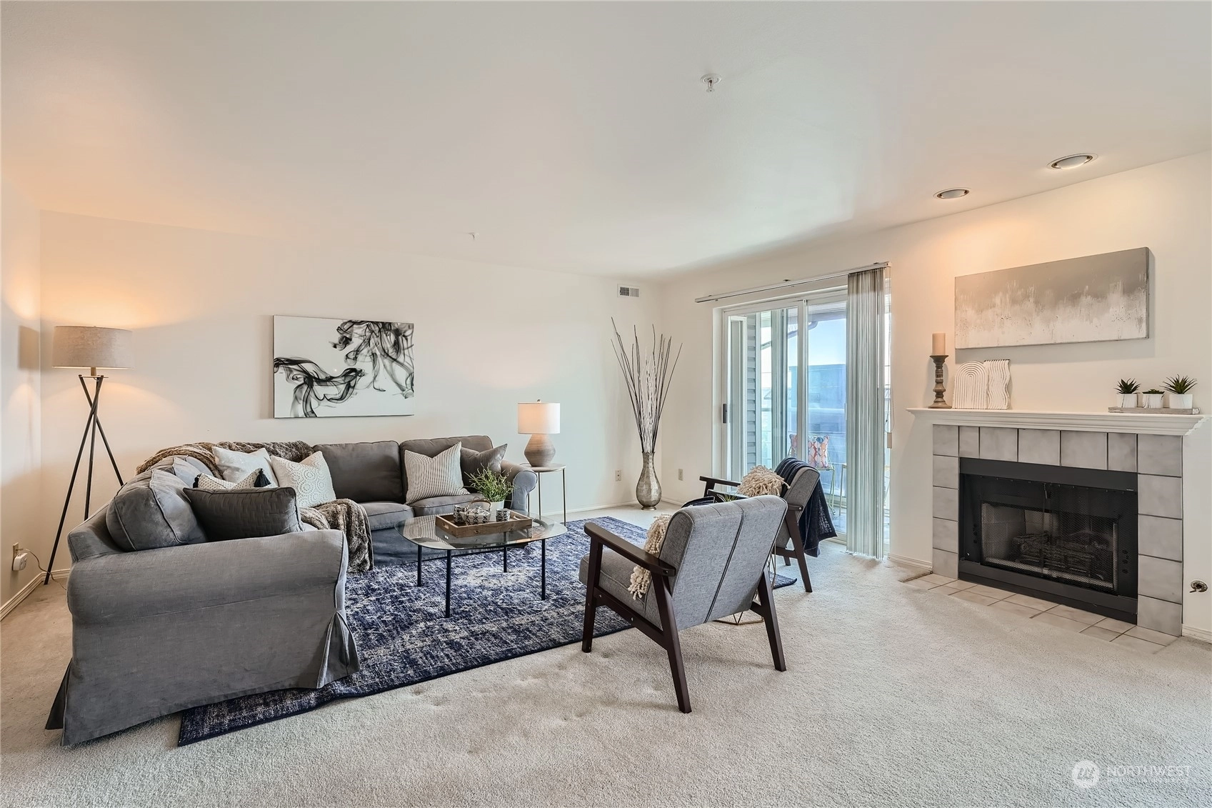 Large natural light filled top floor corner unit with westerly views of City, Olympics & Territorial. Nice size spaces thru-out. Primary bedroom with 3/4 bath & access to deck. Den/Office could easily be another bedroom if needed or TV room. Spacious living/dining area includes gas fireplace. Full size side by side washer dryer, sprinkler system & two view decks (one can be enclosed). Full bath has jetted tub. Two large car garage spaces covered & secure a big plus. Quick easy access all within 5/10 minutes via bus route 36 or 60 (at the corner) to downtown Seattle, international district, stadiums, first & capitol hill plus freeway to all points. Rare to find a unit with this amount of square feet in this price range. Worth a look.