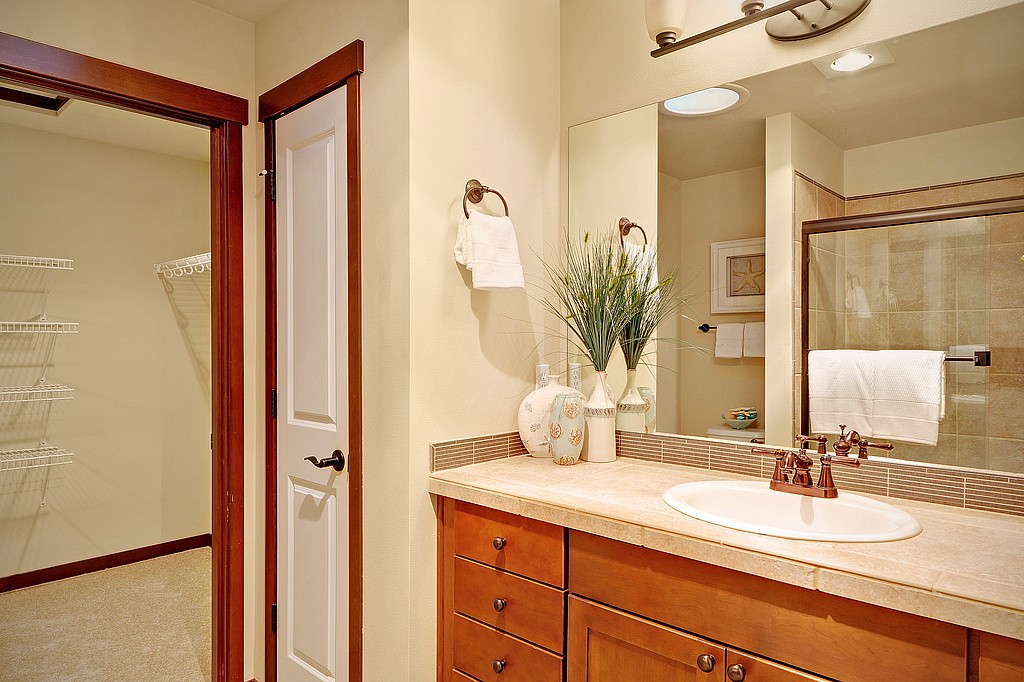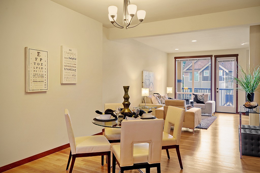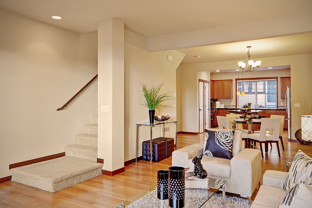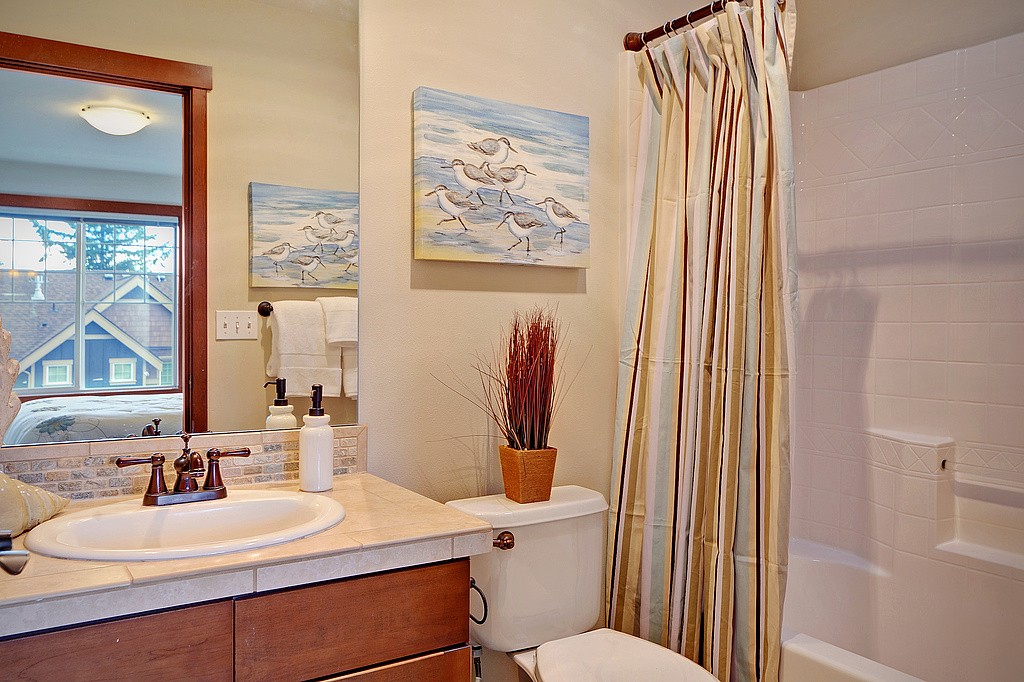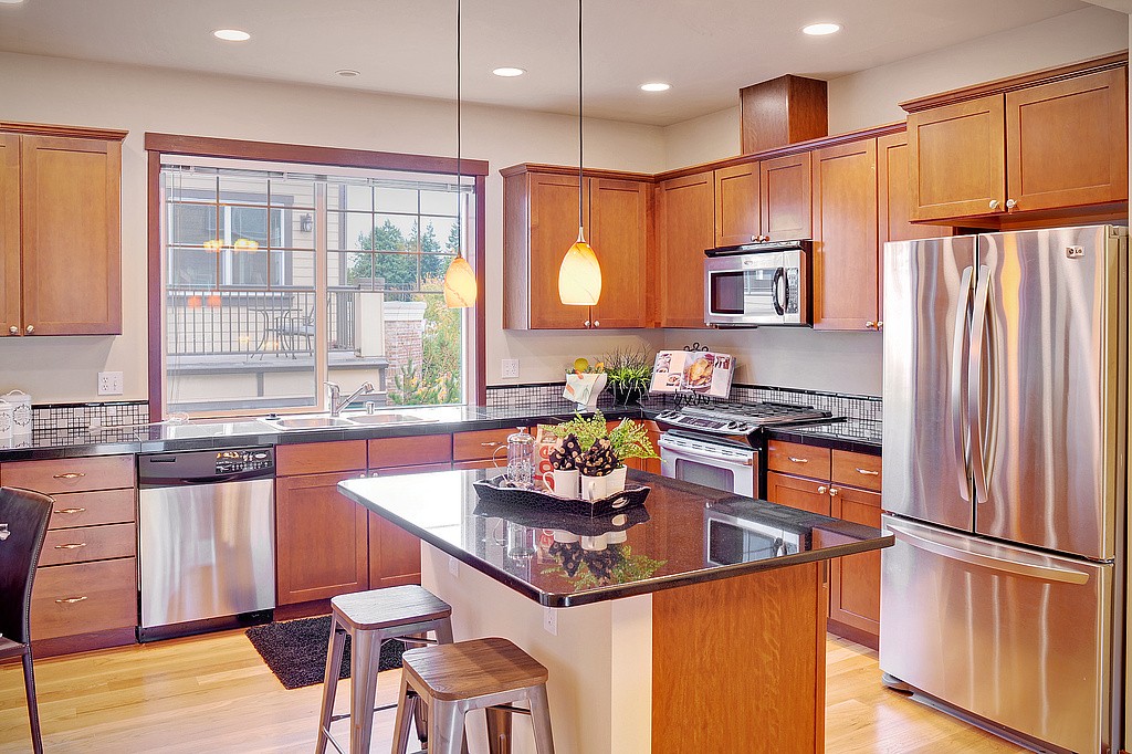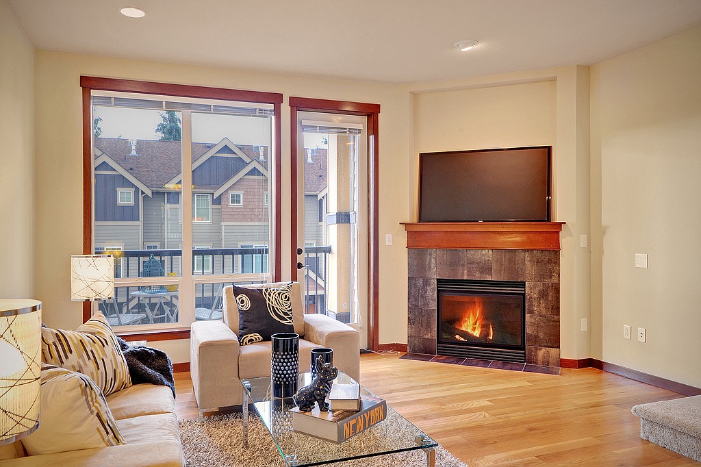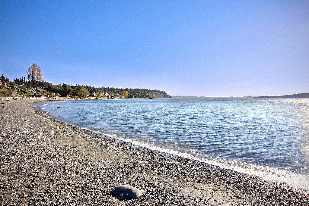 WIDE OPEN SPACES! Thoughtfully finished two bedroom w/ granite countertops, solid hardwoods, and SS appliances. GRAND KITCHEN WITH ISLAND. Living/Dining areas w/ high ceilings, vaulted bedrooms. Gas cooking, gas fireplace, Security System, W/D included. Deck on main level. Add'l room/den/office. Deeded rights to The Cove; a private beach park on Puget Sound w/ boat launch, trails, ponds, tennis courts, and swimming club.