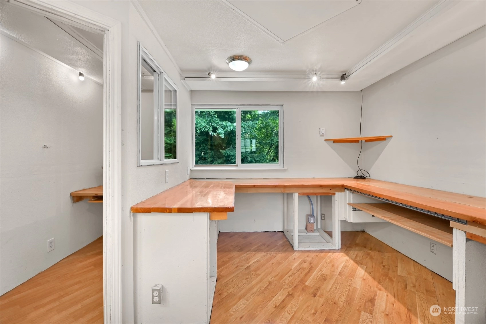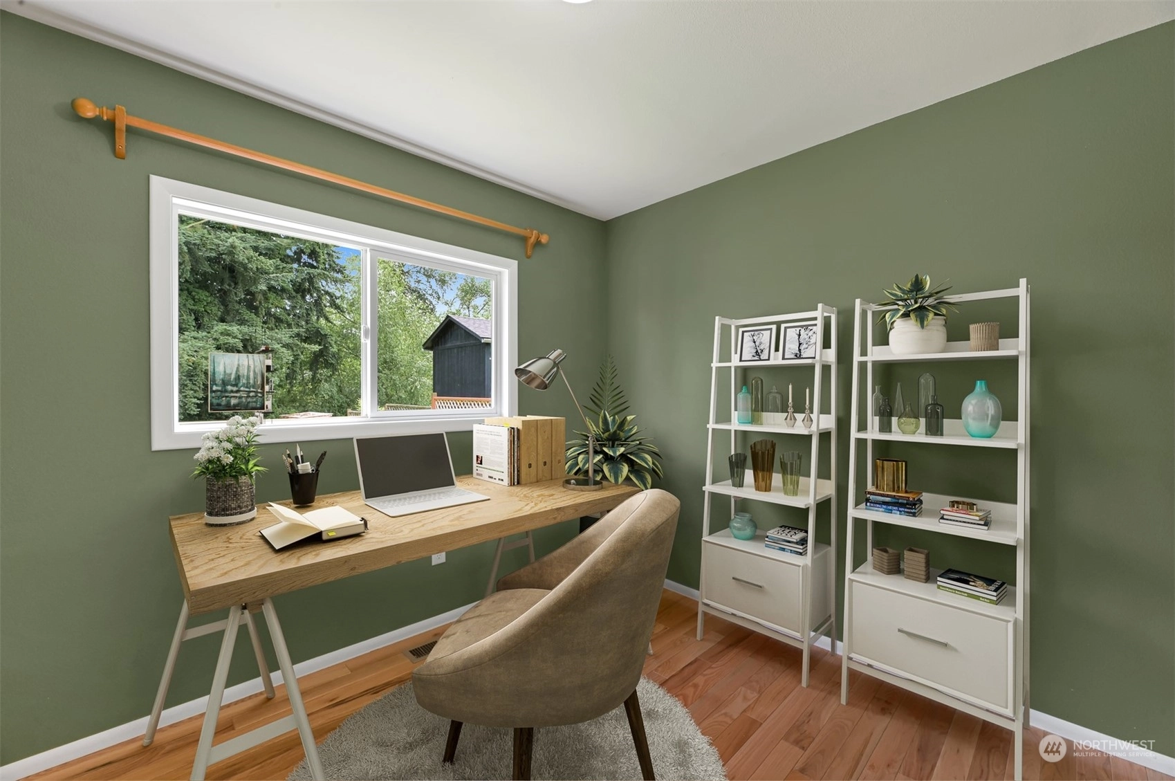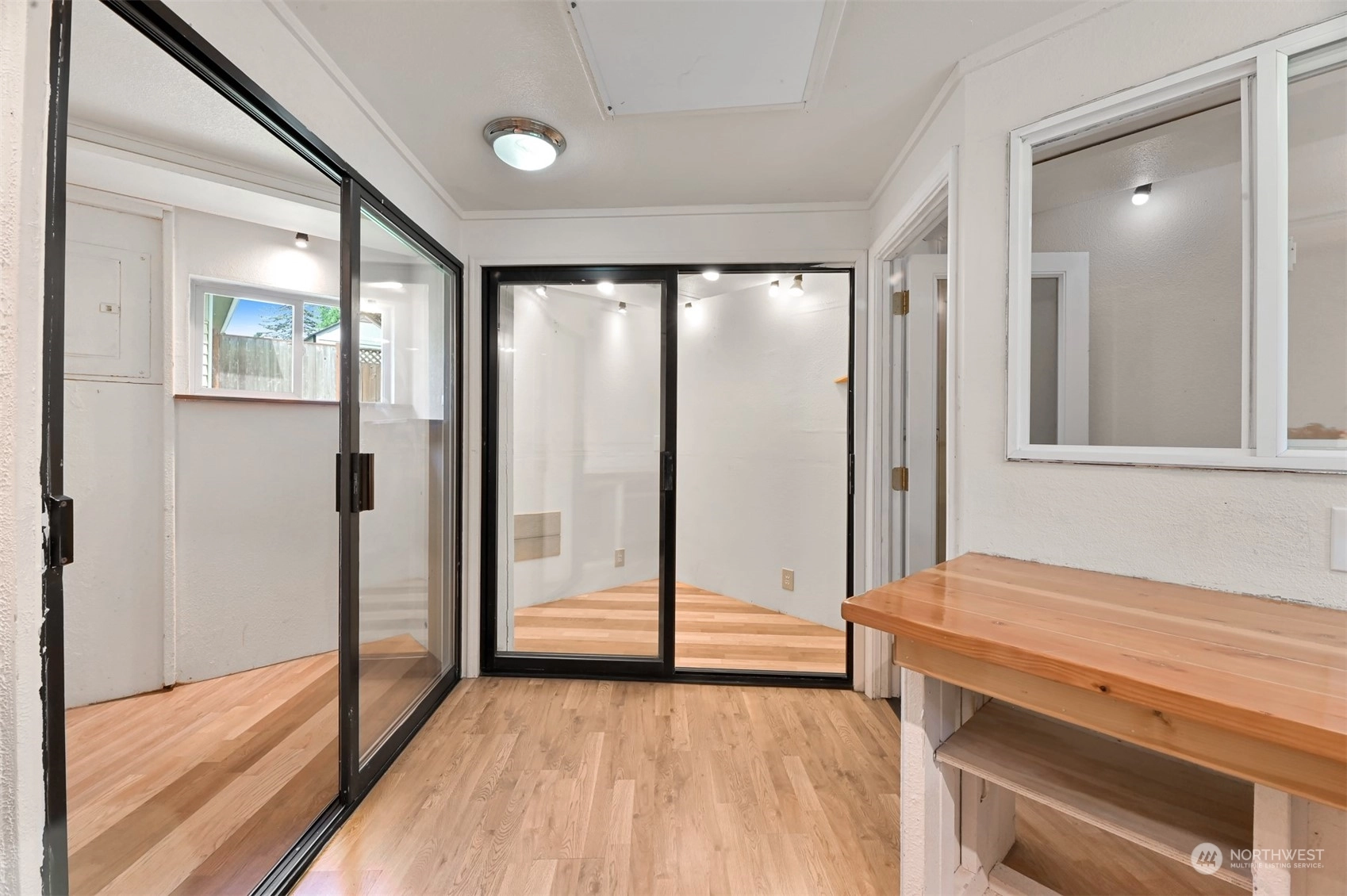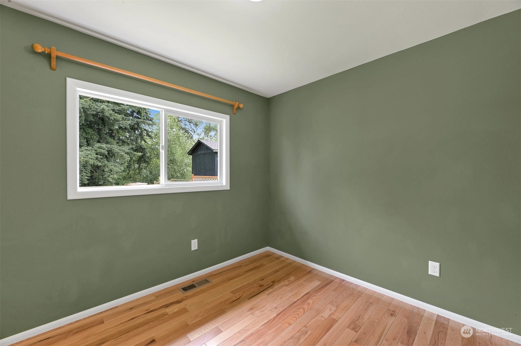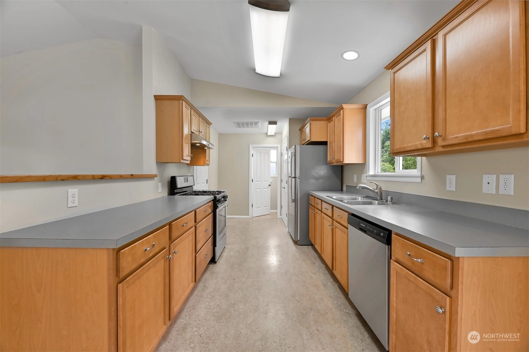 Centrally located Burlington rambler close to parks, schools & downtown! Whole home was completely remodeled in 2014 - roof, flooring, walls, mechanicals - newer everything! The home feels large w/ vaulted ceilings & engineered hardwood floors throughout. The open layout combination of living & dining room, kitchen opens up the heart of the home. Kitchen has plenty of cabinet storage, pantry, SS appliances, gas stovetop, w/ adjacent 1/2 bath & garage access. Washer/Dryer hookups in garage. Wet areas have low mntc Marmoleum flooring. Down the hall are 2 bedrooms w/ spacious closets+remodeled whole hallway bathrm. Surprise detached artist/music studio/multipurpose space in backyard! Home backs up to small creek & nature! Come & see this home!