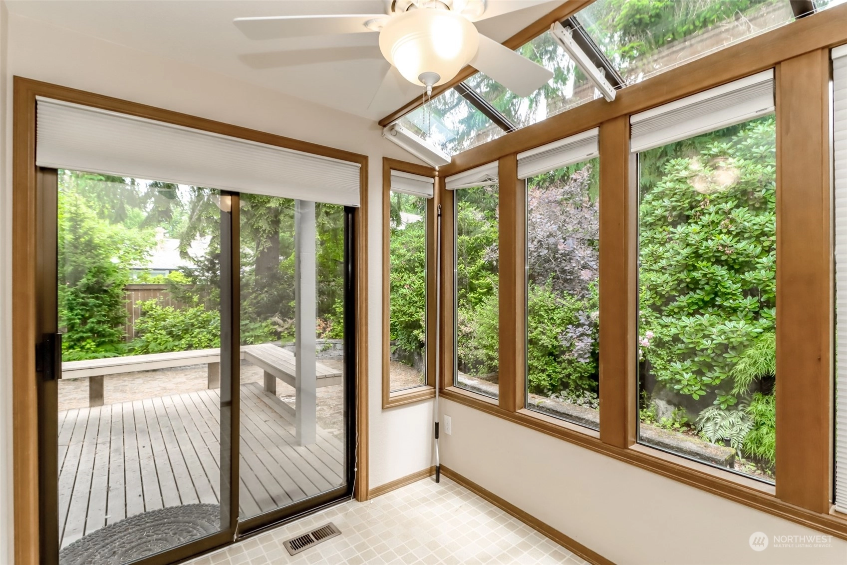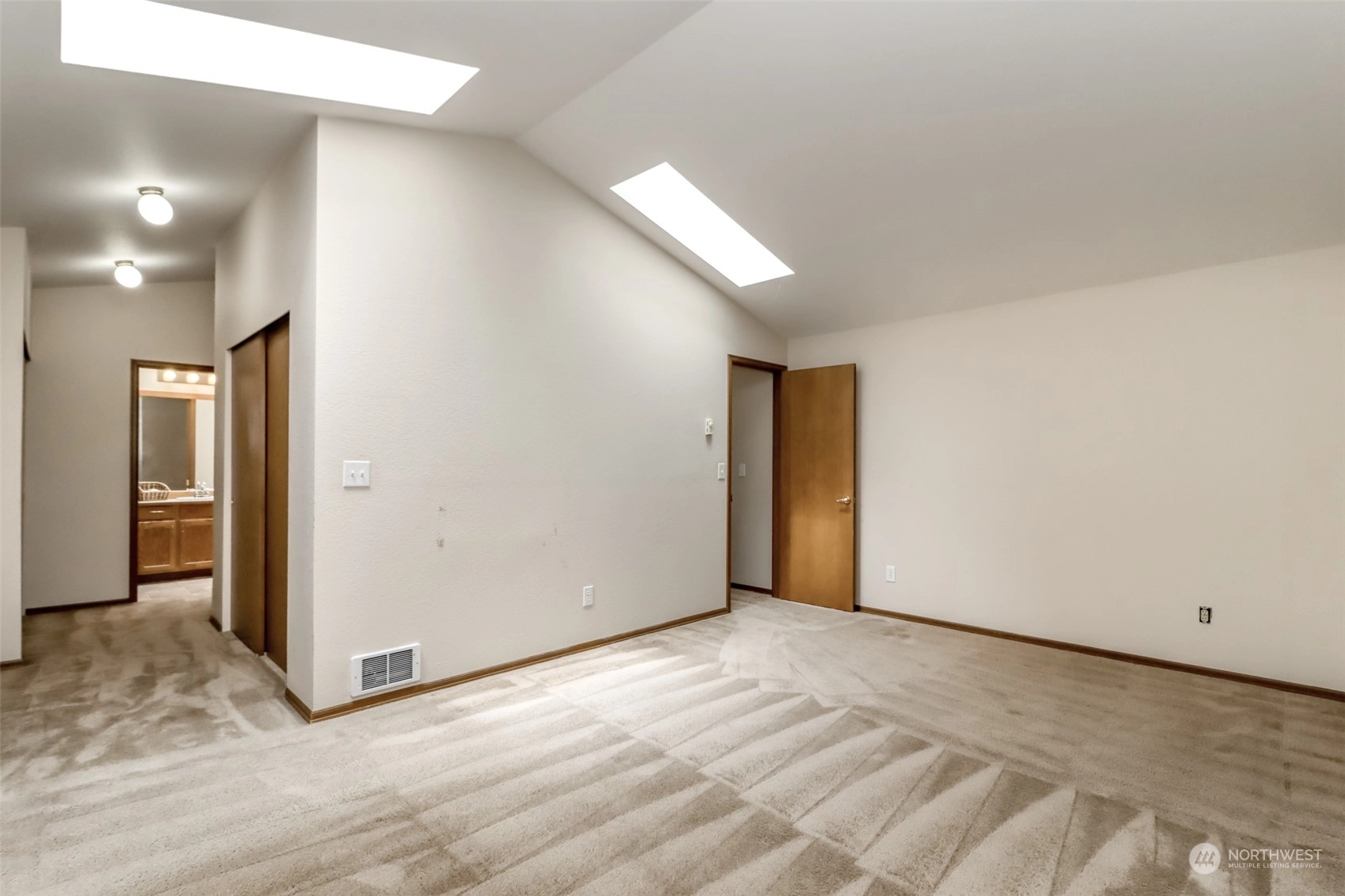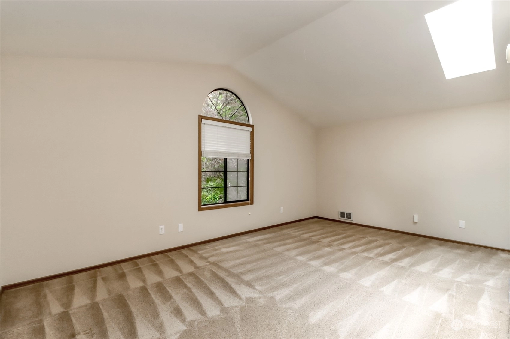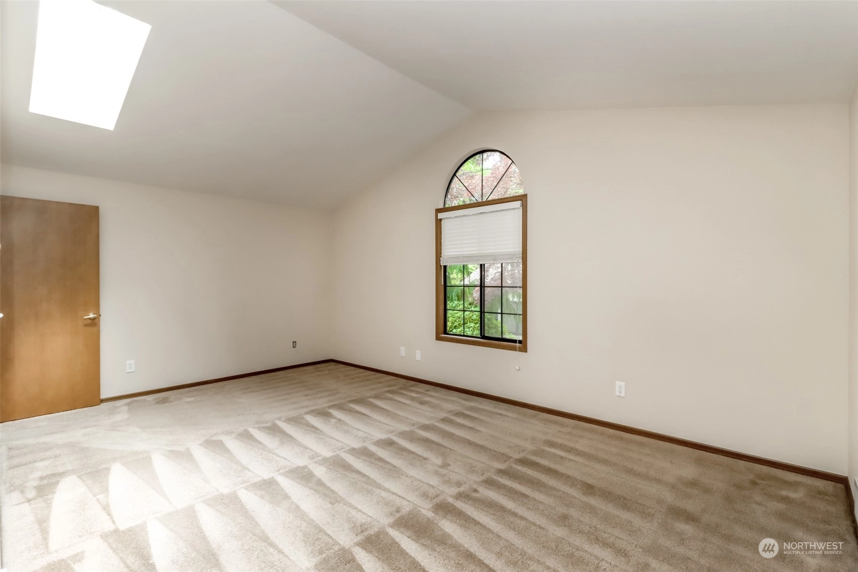 Spacious townhouse w/ private courtyard setting. Surrounded by peace & tranquility yet close to every thing the Mill Creek community has to offer. Located in the desirable Trillium Court complex, Two primary bedrooms one up and one on the main floor. Extra finished room off the upper primary bedroom. Den/office on the main floor with built-in bookshelves .Open & bright living room w/ vaulted ceilings & lots of windows to let in the light also a fireplace .Large kitchen with sun room to enjoy your morning coffee, glass doors opening to the deck and beautiful private garden, nice size two car garage.