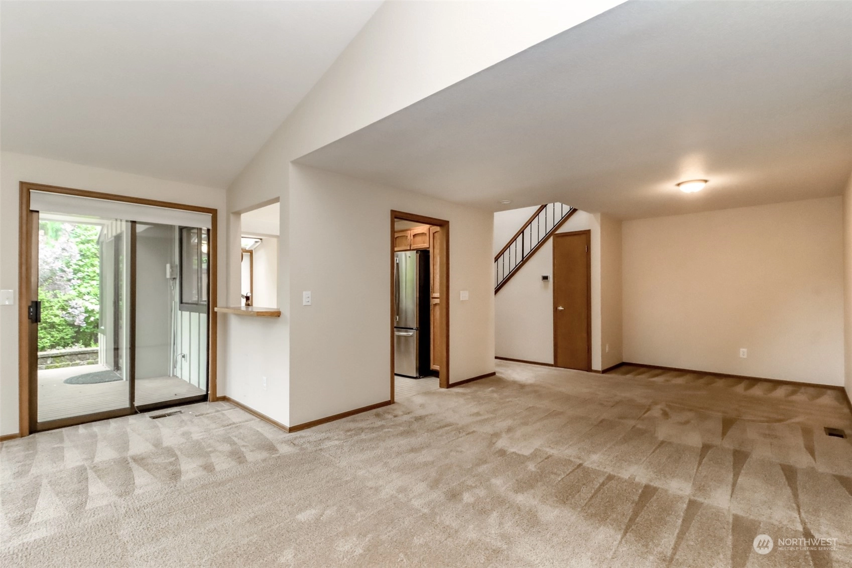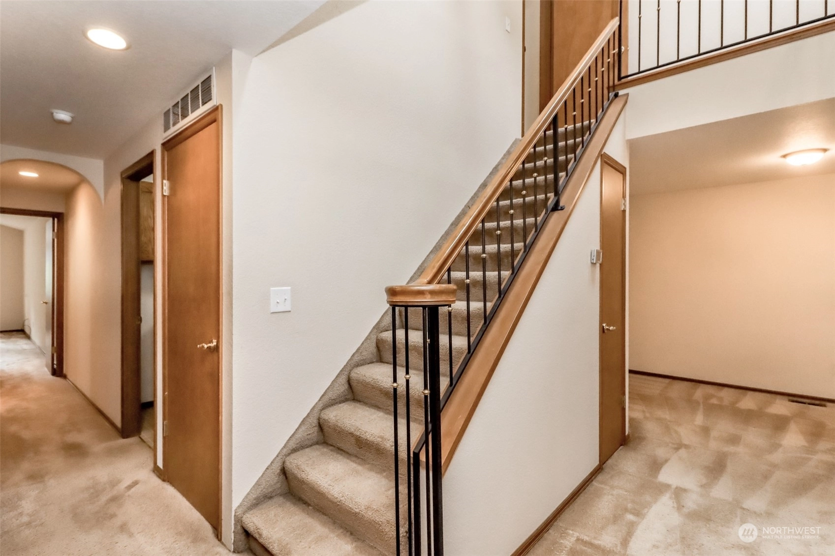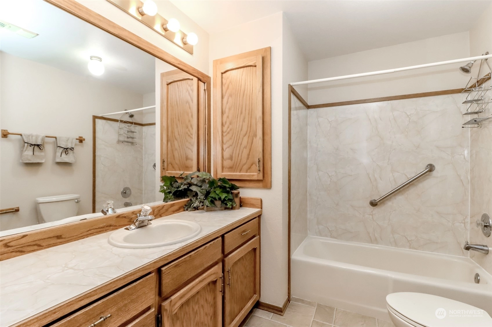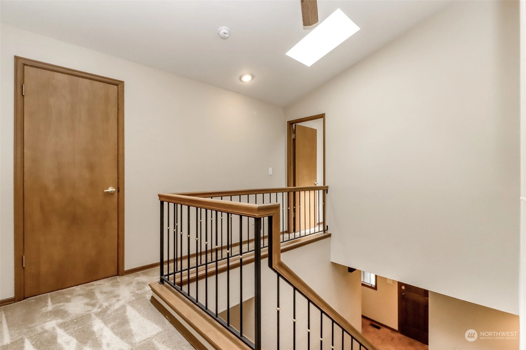 Spacious townhouse w/ private courtyard setting. Surrounded by peace & tranquility yet close to every thing the Mill Creek community has to offer. Located in the desirable Trillium Court complex, Two primary bedrooms one up and one on the main floor. Extra finished room off the upper primary bedroom. Den/office on the main floor with built-in bookshelves .Open & bright living room w/ vaulted ceilings & lots of windows to let in the light also a fireplace .Large kitchen with sun room to enjoy your morning coffee, glass doors opening to the deck and beautiful private garden, nice size two car garage.