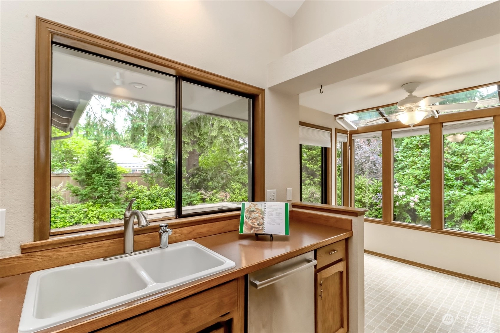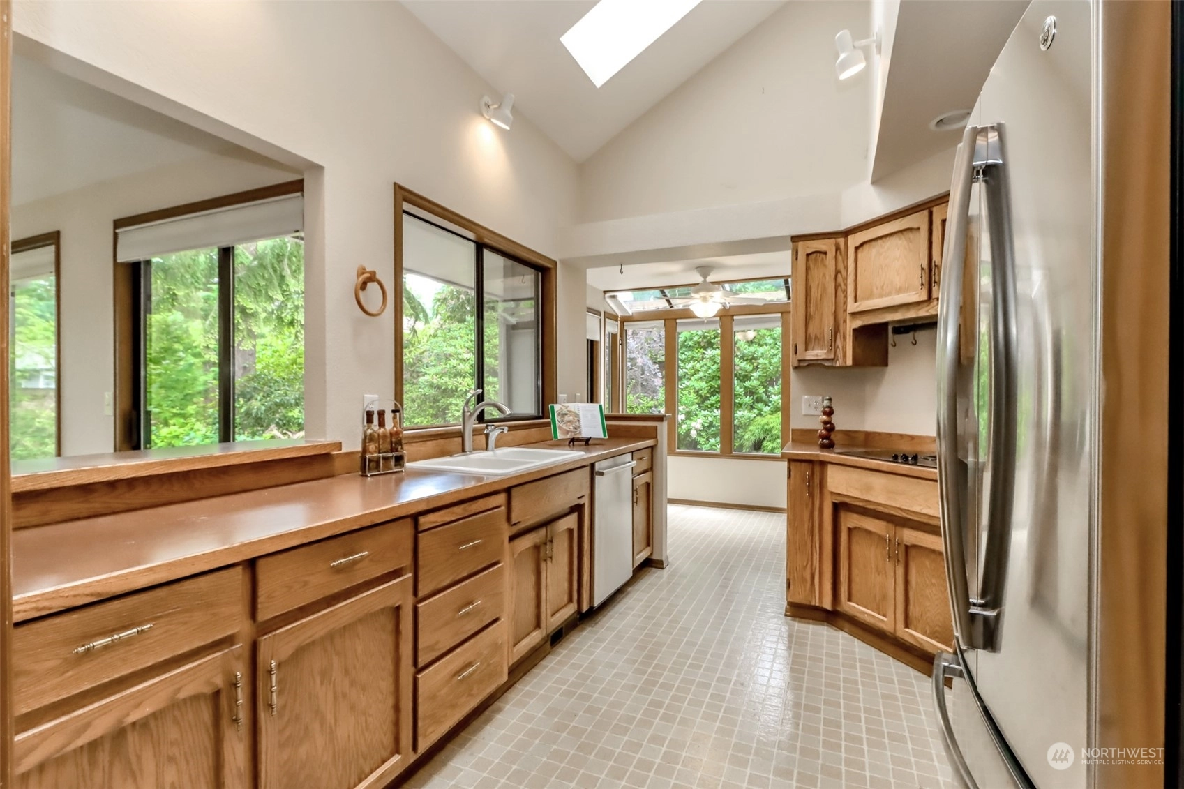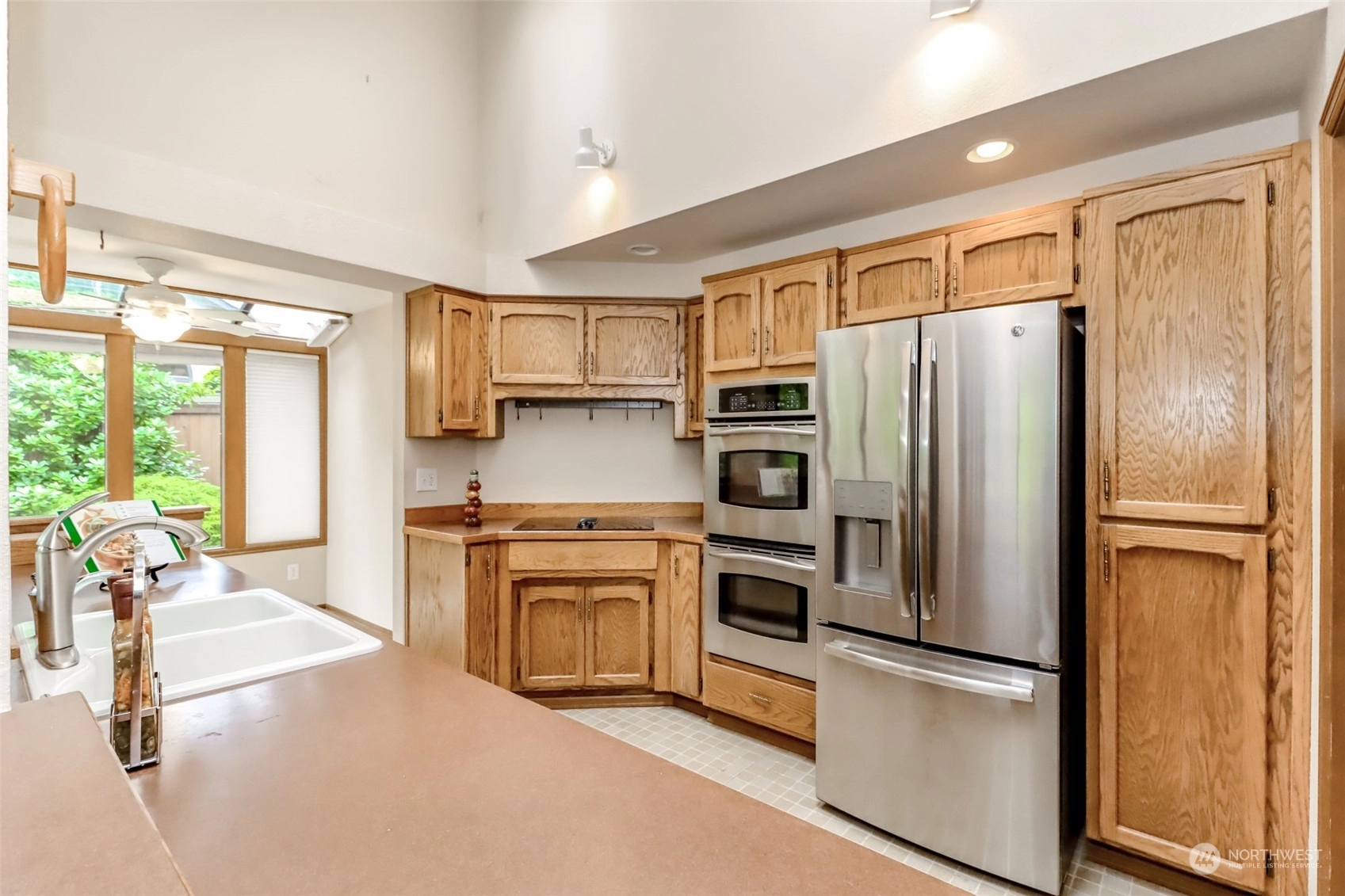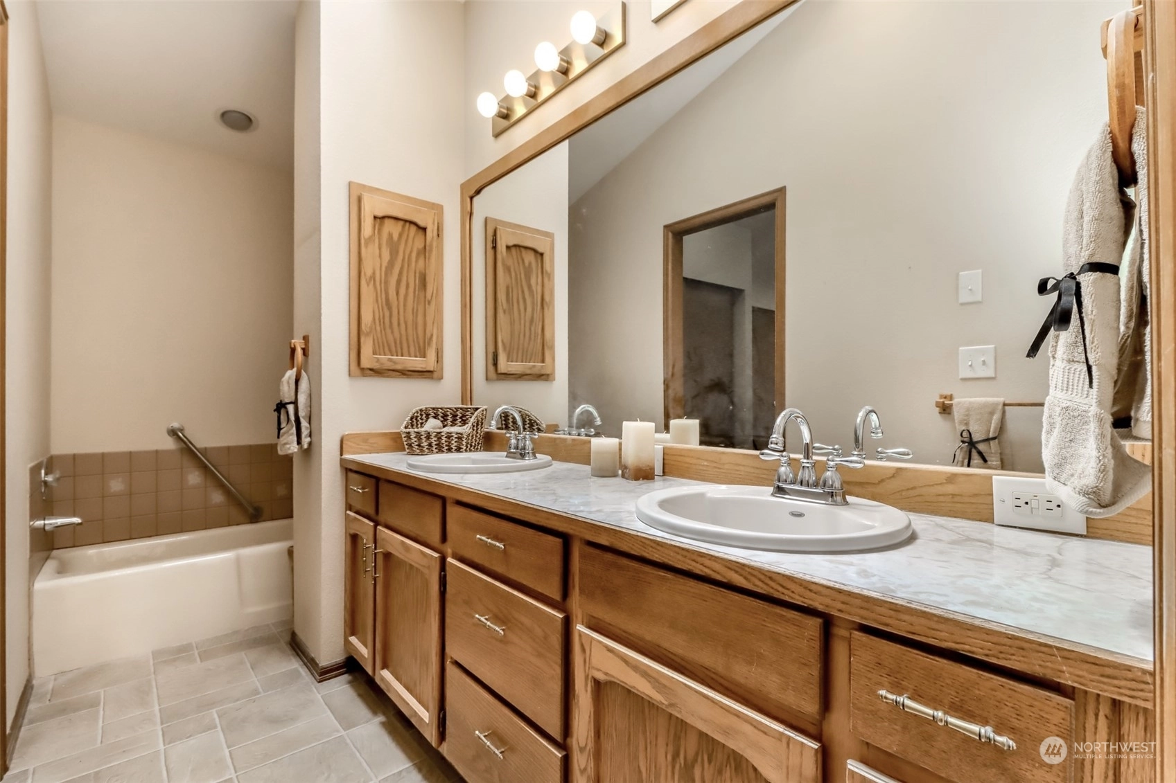 Spacious townhouse w/ private courtyard setting. Surrounded by peace & tranquility yet close to every thing the Mill Creek community has to offer. Located in the desirable Trillium Court complex, Two primary bedrooms one up and one on the main floor. Extra finished room off the upper primary bedroom. Den/office on the main floor with built-in bookshelves .Open & bright living room w/ vaulted ceilings & lots of windows to let in the light also a fireplace .Large kitchen with sun room to enjoy your morning coffee, glass doors opening to the deck and beautiful private garden, nice size two car garage.