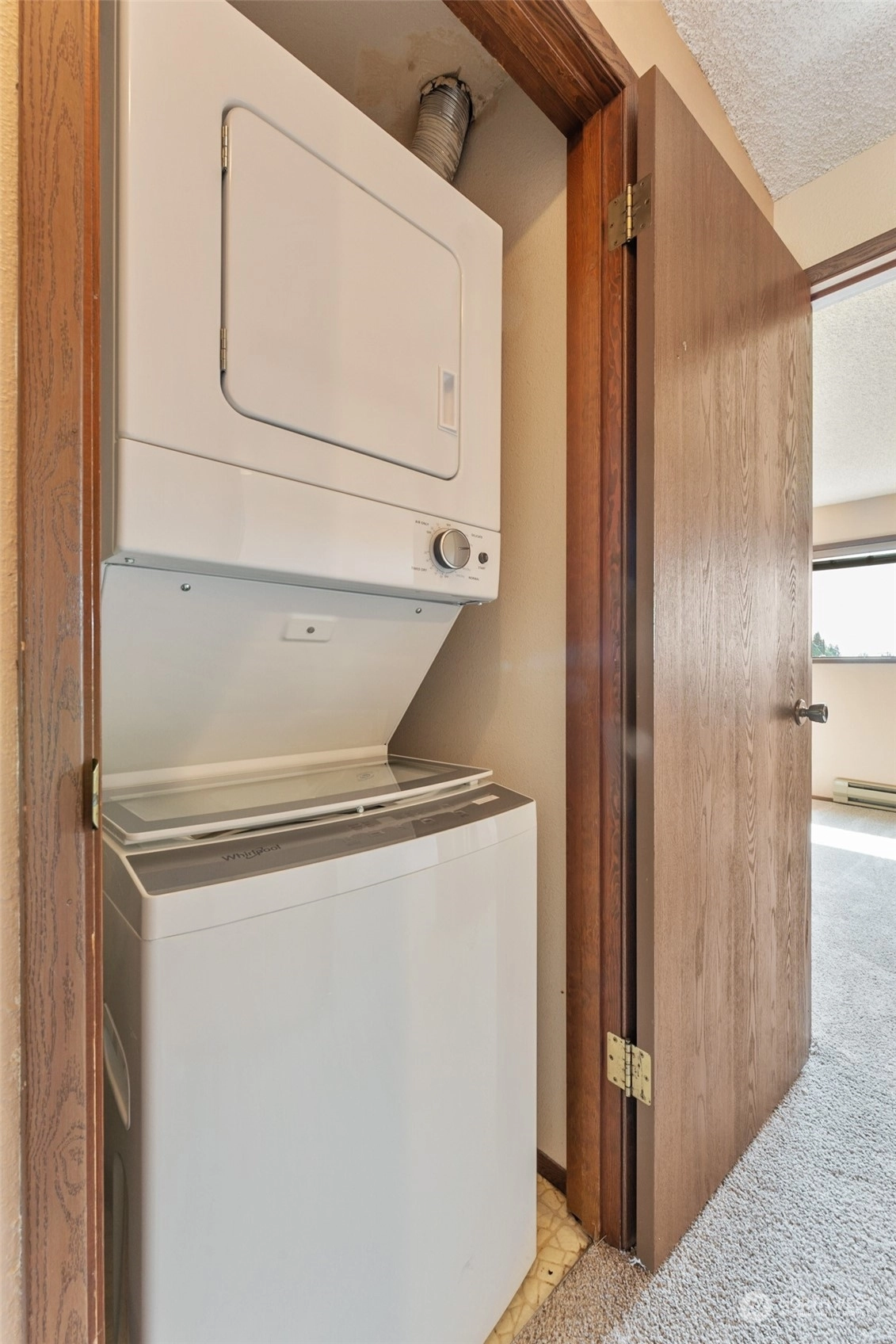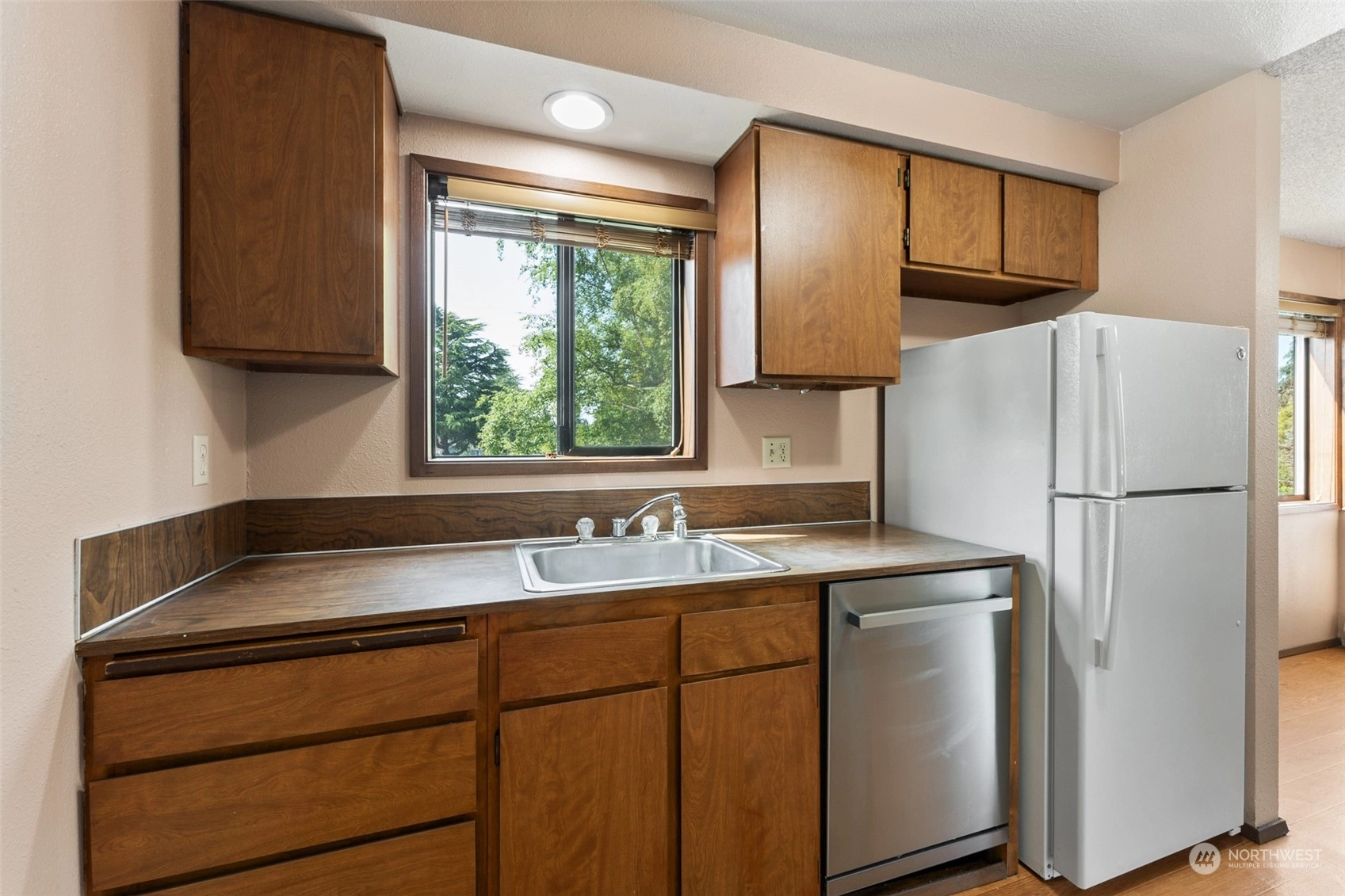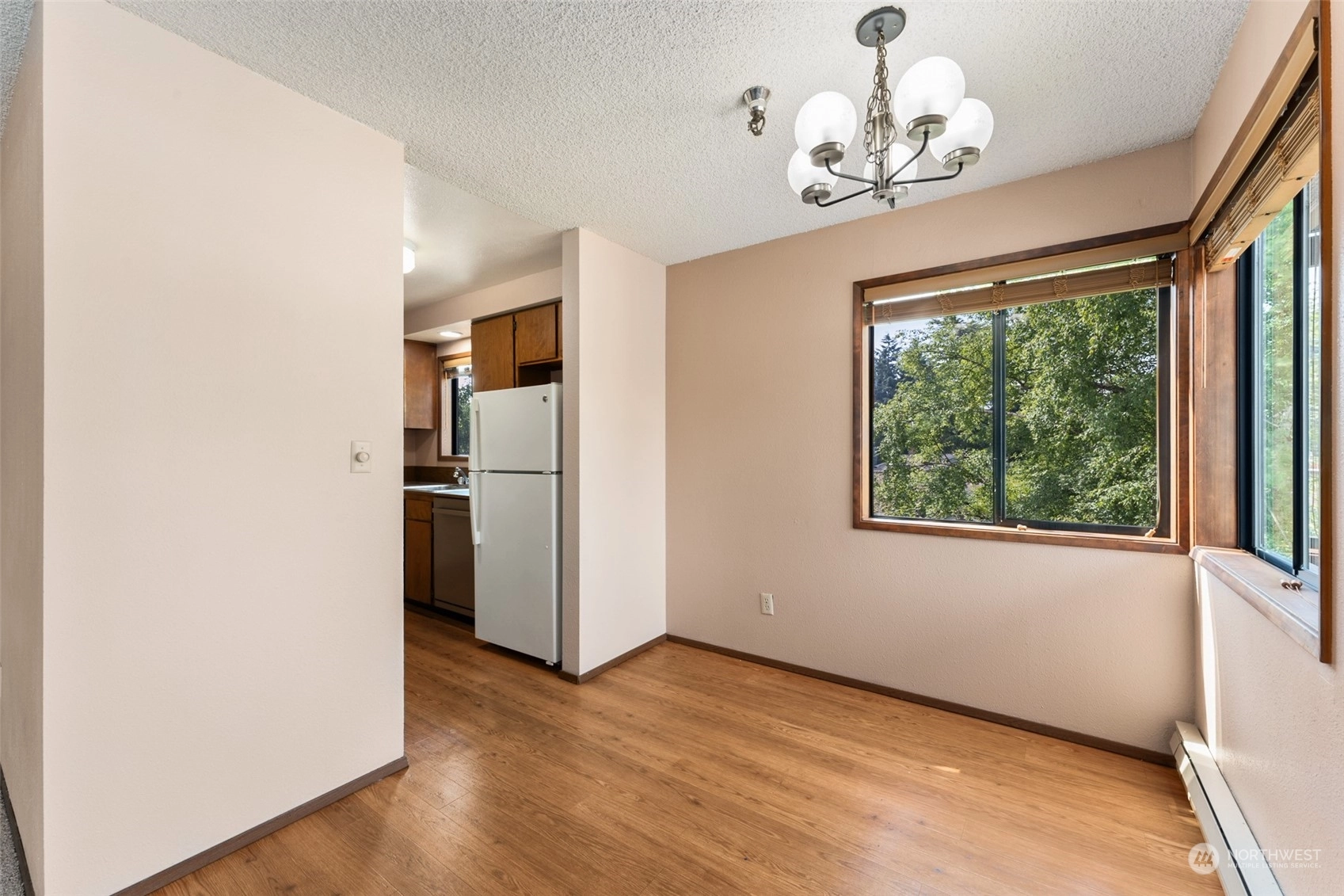 Prime, quiet location 2 bedroom 1.5 bath, top floor condo with peek-a-boo Puget Sound view. New stove, new washer and dryer in unit and new carpet just installed. Spacious living room, wood-burning fireplace, lots of closet space, 1 car covered parking, off deck storage and so much more. Well managed, small 7 unit building, located in the heart of the highly sough after Seahurst neighborhood. Walking distance to restaurants, bakeries, St. Francis private school, coffee & shops in charming Olde' Burien. Easy commute to Seattle or Boeing. Conveniently located to beaches, trails, freeways, transit, and light rail. Hurry and make an appointment today.