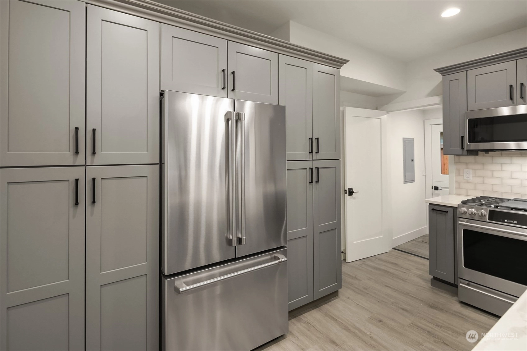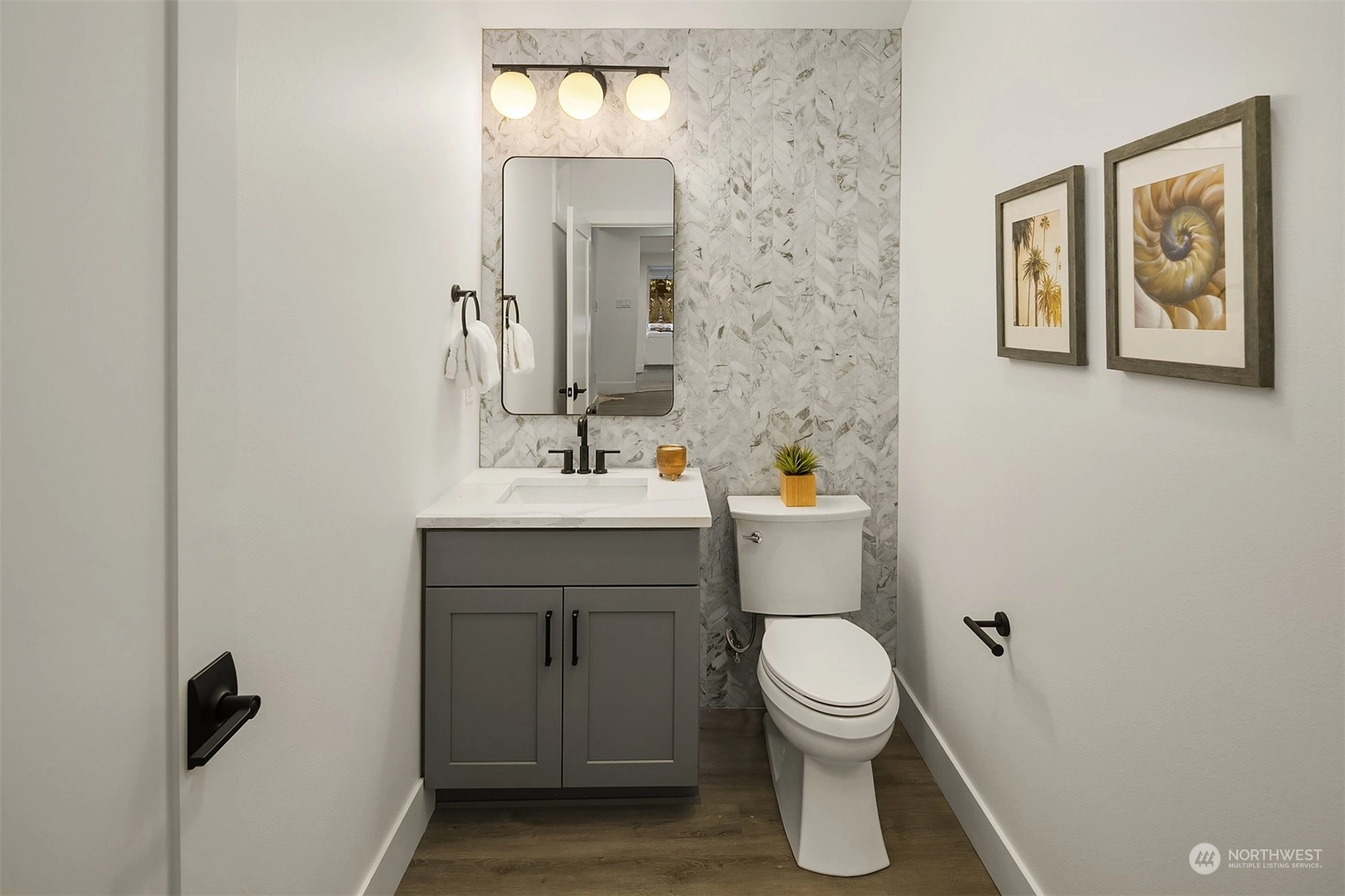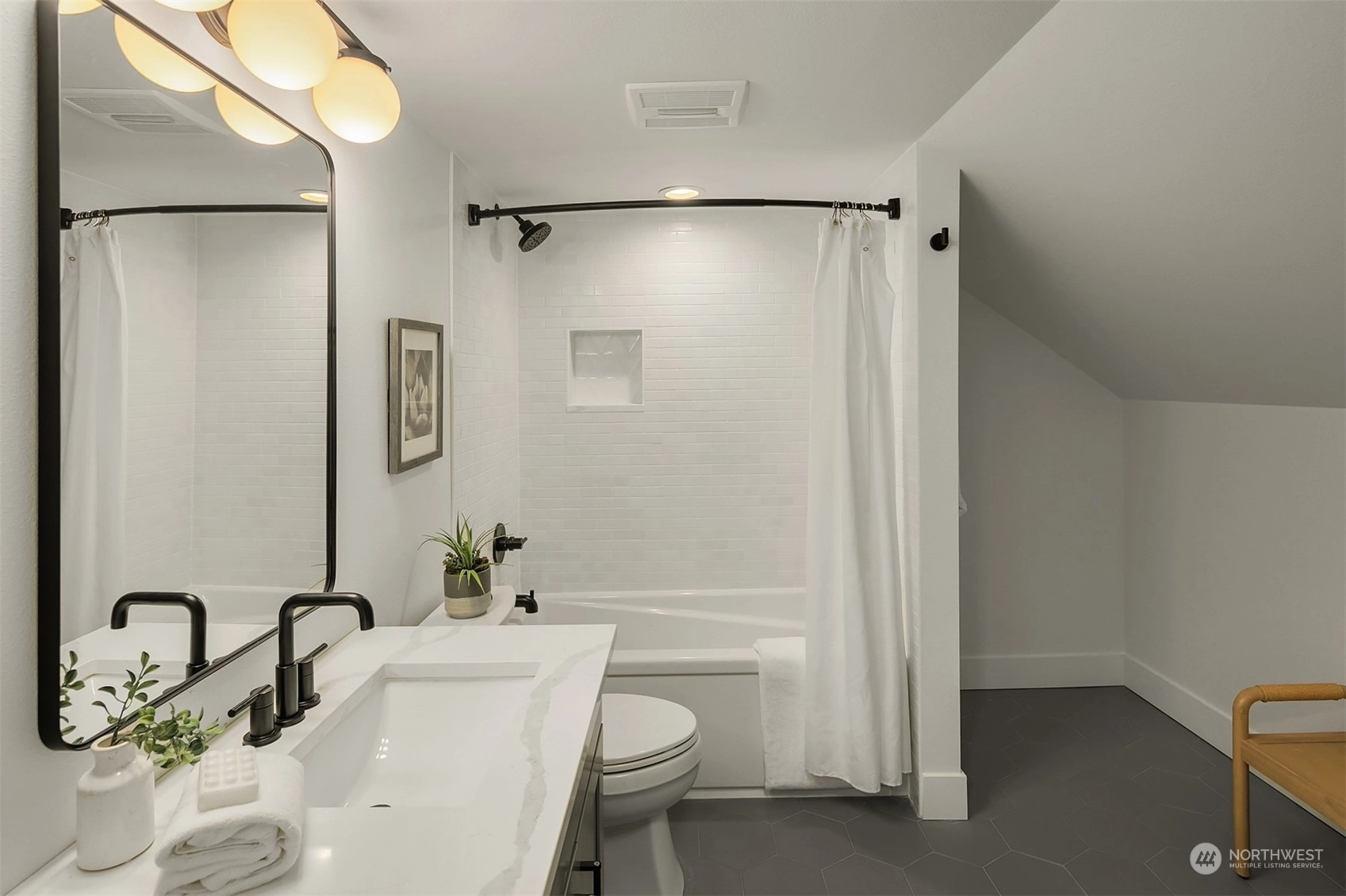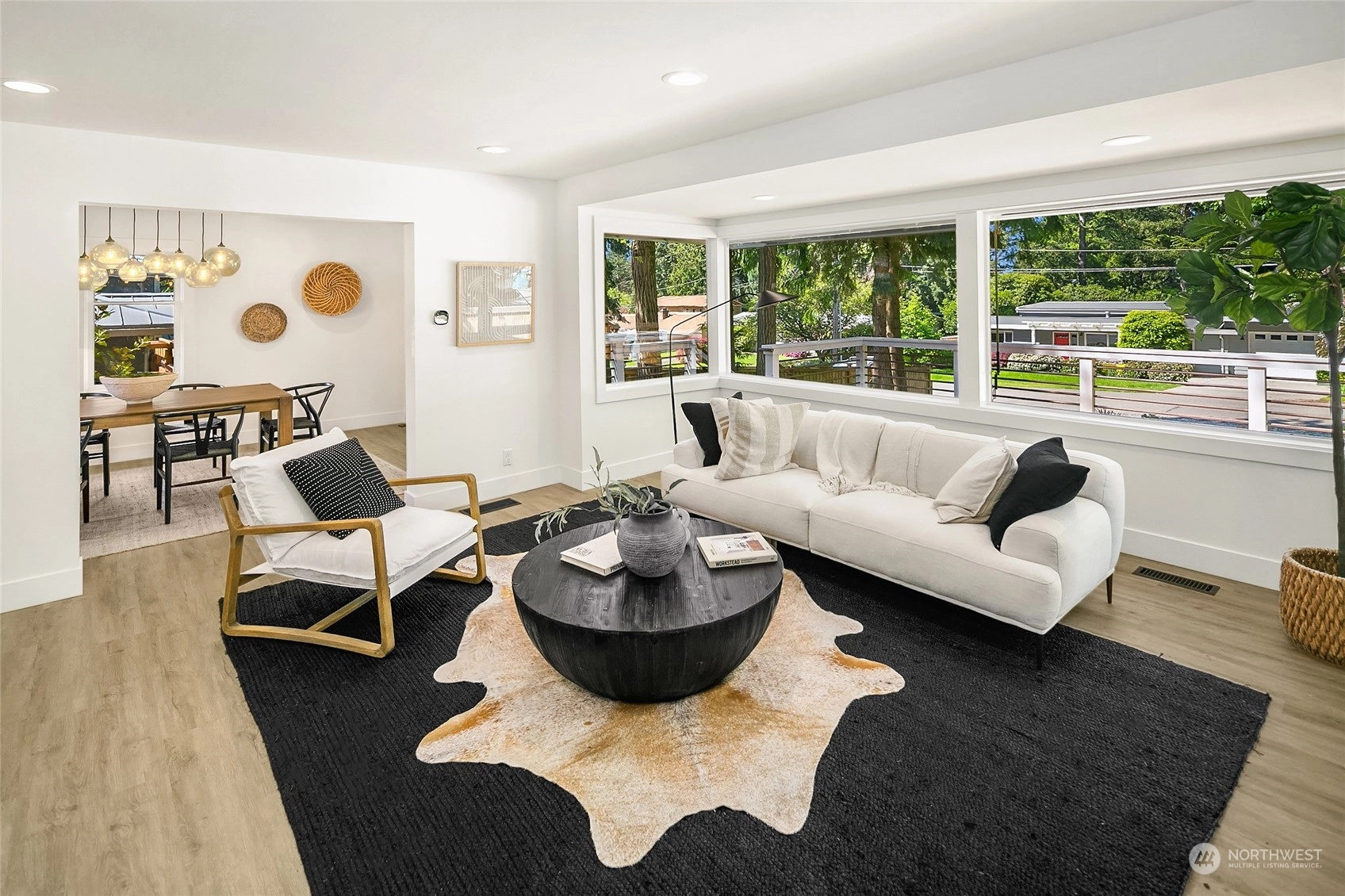 Professionally Remodeled Craftsman Single-Family Home in Quiet Forbes Creek Community & Lake WA School District. Minutes to DT Kirkland & Juanita Beach. Wall-to-wall windows offer ample natural light in spacious yet cozy living rm w gas fireplace. Dining rm opens thru french doors to expansive front deck for entertaining. Farmhouse style kitchen w ALL NEW GE Cafe appliances, cabinets & quartz countertops. Hand-selected fixtures & new tile, carpet & hardwoods thru-out. Upper floor offers full bath w heated floors, 2 bdrms & balcony. All new underground electrical & plumbing, new sewer line, new furnace & water heater. New fence frames beautifully landscaped yard & garden. 400 SF basement for ample storage.