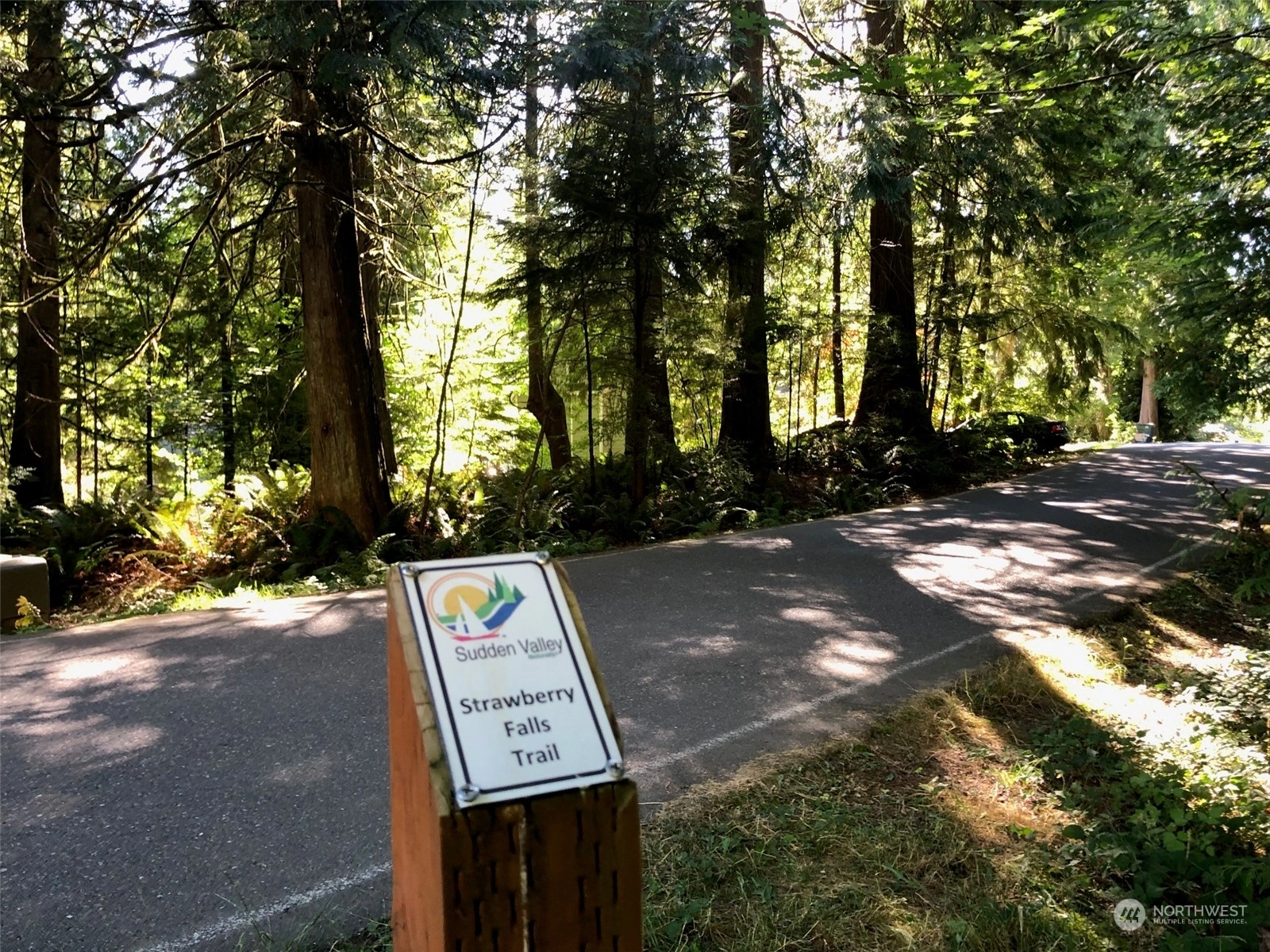 Large, relatively flat property located next to green space in the lakeside and golf course community of Sudden Valley. This property is actually a double lot - with the west 15 feet subdivided off for the benefit of the homeowner on the right. This massive and flat property has views over the green-belt area of Strawberry Falls Trail towards Strawberry Park - one of numerous neighborhood parks located in the Sudden Valley Community. The property has been surveyed, has topography map, and corners are clearly marked. Wonderful spot for a single level home - or any type of home! This property is probably the finest woodland lot that has become available in many years. Critical areas assessment available. Don't delay on this one!