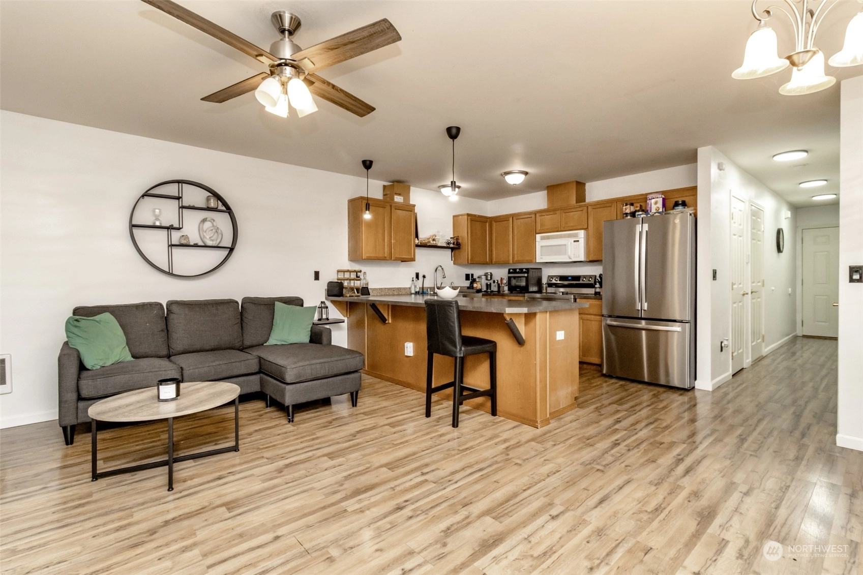 “Harmony” is a charming Condo in the sought after South Hill area of Puyallup and it’s truly a gem! With its desirable floor plan, ample living space, and sleek finishes, it offers a comfortable and stylish lifestyle with the open concept layout. Boasting new light fixtures, new stainless steel kitchen appliances, a walk-in pantry. The large primary suite, with dual sinks and a walk-in closet gives you the convenience and peace you need. With an attached garage, and its low-maintenance yard, this home will definitely treat you right! Close to JBLM, amenities, parks, and great schools, this home is a rare find. Don't miss out on the opportunity to call this Condo yours!