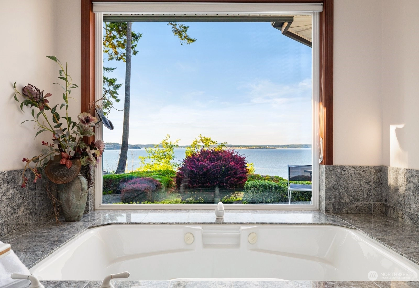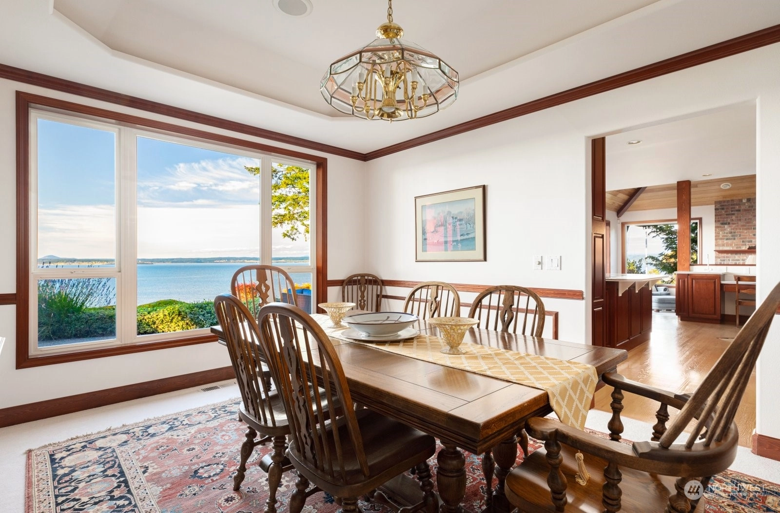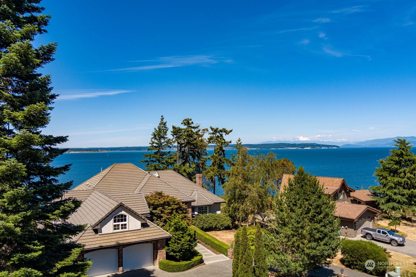 Experience the epitome of Island living in this captivating high bank waterfront home nestled in the highly sought-after Kineth Point neighborhood. Immerse yourself in the grandeur of soaring ceilings & be mesmerized by breathtaking views of Mt. Baker, the Cascade Mountains, Penn Cove, & the twinkling lights of Oak Harbor. Unparalleled craftsmanship is evident in every detail, showcasing an exquisite blend of timeless architecture & modern luxury. Available for the first time, this custom built 4,127sqft home offers an expansive primary suite, two additional bedrooms, private office/den, all designed to maximize comfort & refinement. Discover a lifestyle of luxury, serenity, and convenience in this exceptional waterfront home.