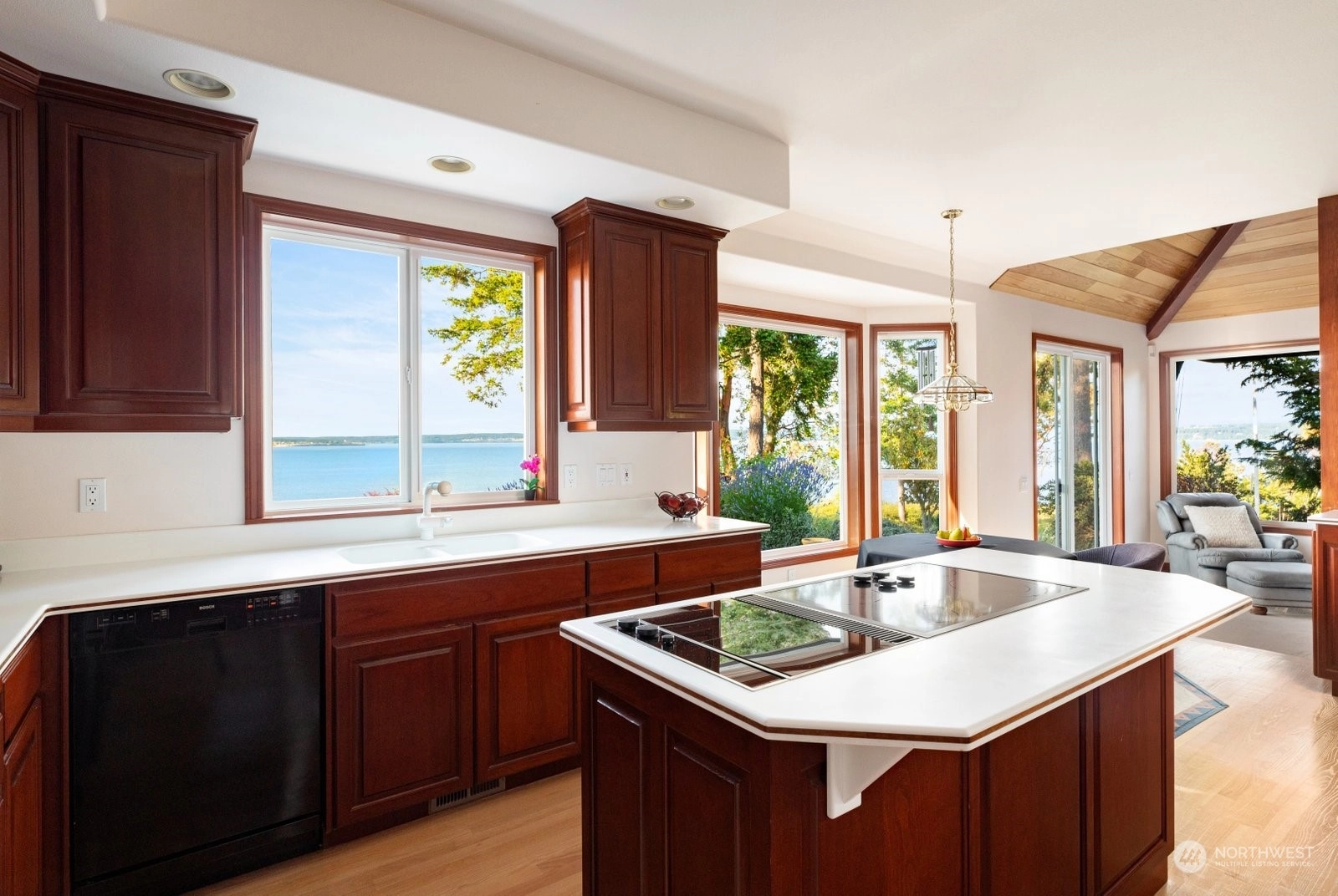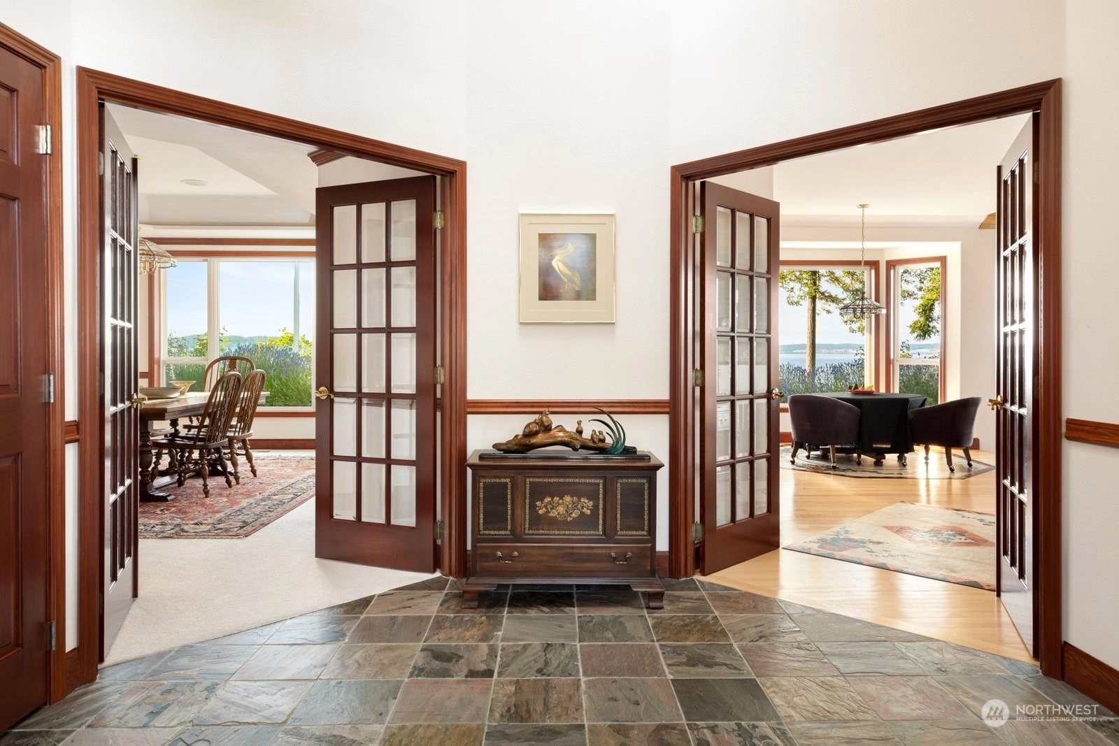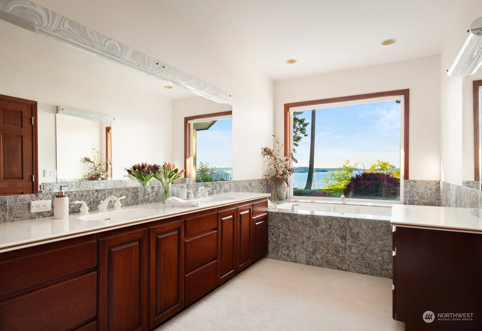 Experience the epitome of Island living in this captivating high bank waterfront home nestled in the highly sought-after Kineth Point neighborhood. Immerse yourself in the grandeur of soaring ceilings & be mesmerized by breathtaking views of Mt. Baker, the Cascade Mountains, Penn Cove, & the twinkling lights of Oak Harbor. Unparalleled craftsmanship is evident in every detail, showcasing an exquisite blend of timeless architecture & modern luxury. Available for the first time, this custom built 4,127sqft home offers an expansive primary suite, two additional bedrooms, private office/den, all designed to maximize comfort & refinement. Discover a lifestyle of luxury, serenity, and convenience in this exceptional waterfront home.