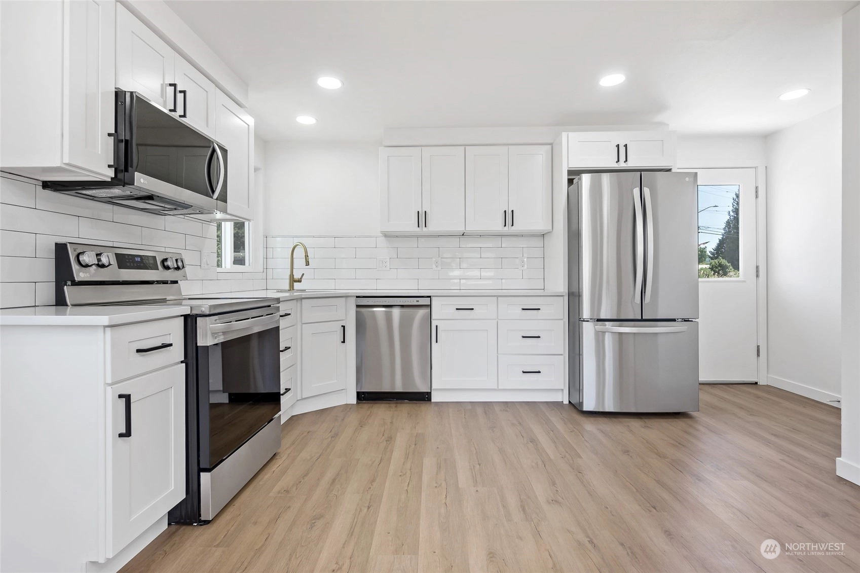 Welcome home! Step into the perfect blend of style and comfort in this newly remodeled home! Embrace the spacious living area with an inviting open concept design, seamlessly connecting the living, dining, and kitchen spaces. Enjoy the luxury of all-new flooring, modern kitchen cabinets, and new appliances. With three bedrooms and a beautiful primary bath, you'll find all the space you need. Rest assured knowing this home boasts a brand new roof, siding, and foundation, offering you worry-free living for years to come. Step outside and walk over to the neighborhoods park that includes 3 different athletic courts. Located in a prime location, the home is minutes away from shopping centers and a freeway. Your dream home awaits.