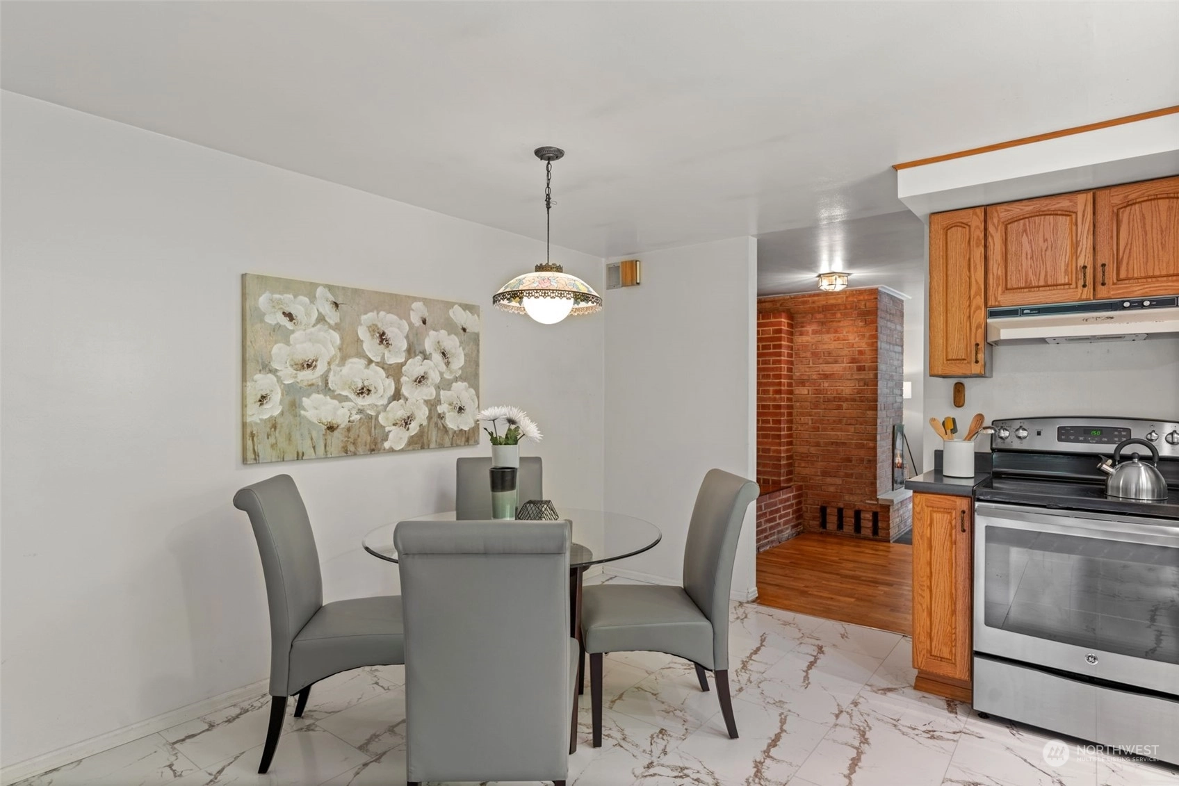 Hardwood Wall to Wall Carpet Dining Room Fireplace